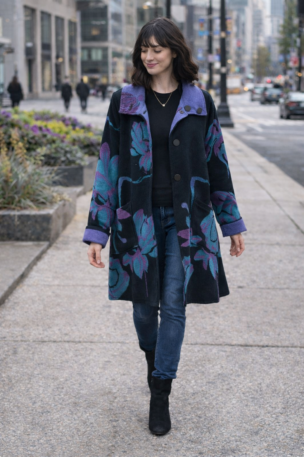 Nous aimons le défi de rendre chaque pièce réversible, créant une niche pour les femmes qui travaillent, voyagent et sont en déplacement. La femme Winding River peut s'habiller sur la course. Elle peut aller travailler avec sa veste d'un côté et la retourner du côté plus habillé pour sortir la même nuit. Certains de nos vestes et accessoires peuvent être portés toute l'année en raison de leur réversibilité. Nos vestes et accessoires sont parfaits pour les femmes qui n'ont parfois pas le temps de magasiner, même si elles le souhaitent !