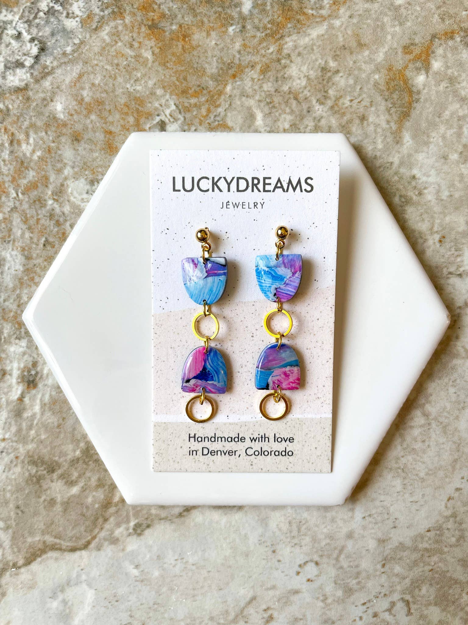 Boucles d'oreilles en pâte polymère faites main LuckyDreams a été lancé en 2020. Toutes les boucles d'oreilles sont fabriquées à la main par Sarah à Denver Colorado. Matériaux : Pâte polymère Résine UV brillant Poteaux en acier inoxydable Poteaux à rotule en acier inoxydable Hameçons en laiton Anneaux de connexion - Laiton