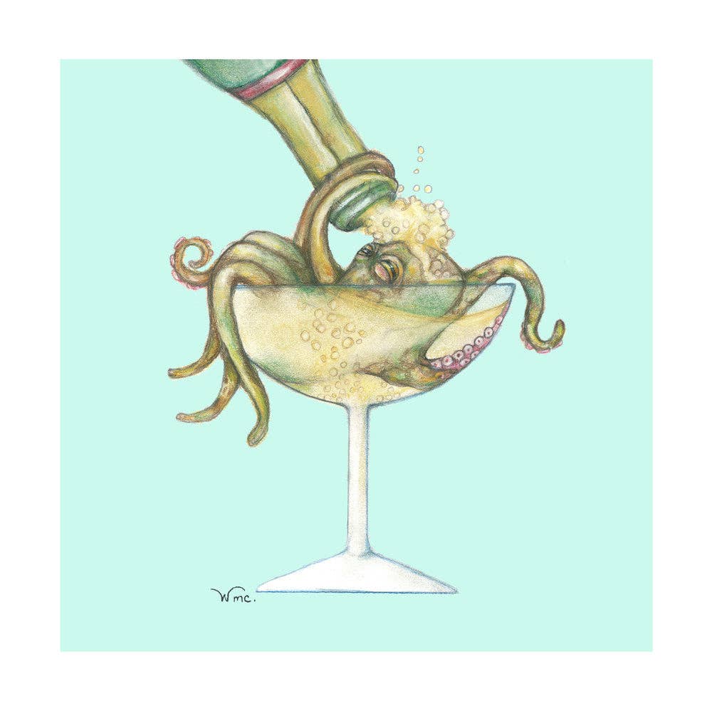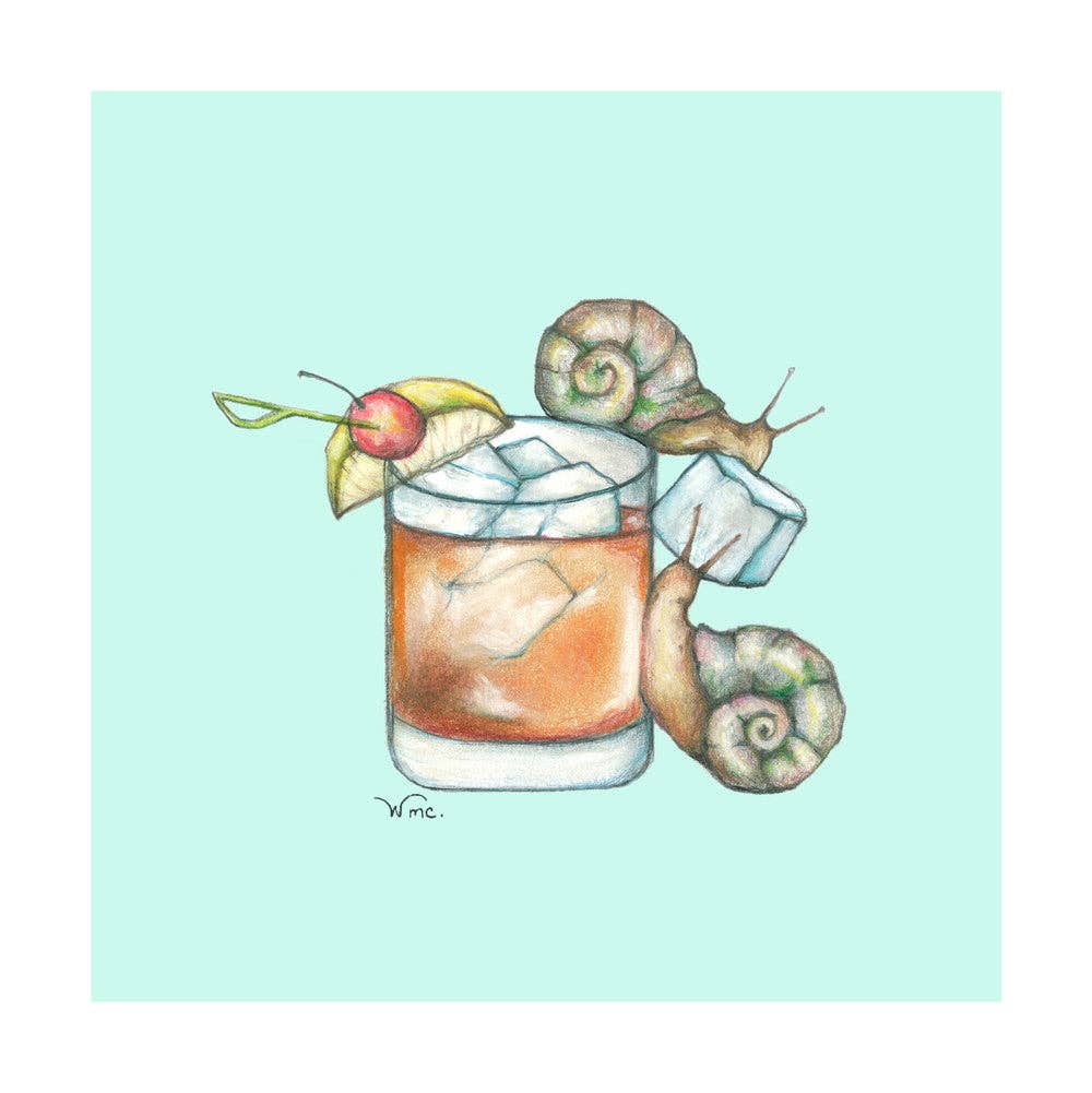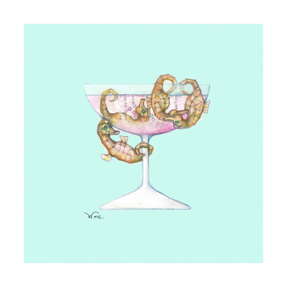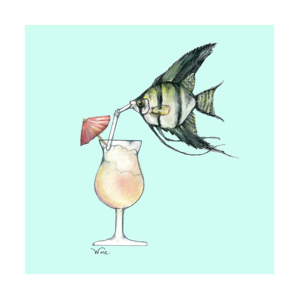 Ma marque, « Oceans of Alcohol », a commencé par un blizzard. Enneigé, cette nuit d'hiver, j'ai commencé à dessiner un délicat poisson-ange en sirotant un daïquiri estival. Ce serait la première des 19 images, réalisées au crayon et au pastel, de créatures marines et de cocktails. La collection est réalisée sur un beau papier aquarelle Hahnemuhle saturé de couleurs. Créé et imprimé ici dans le New Jersey. Bravo !