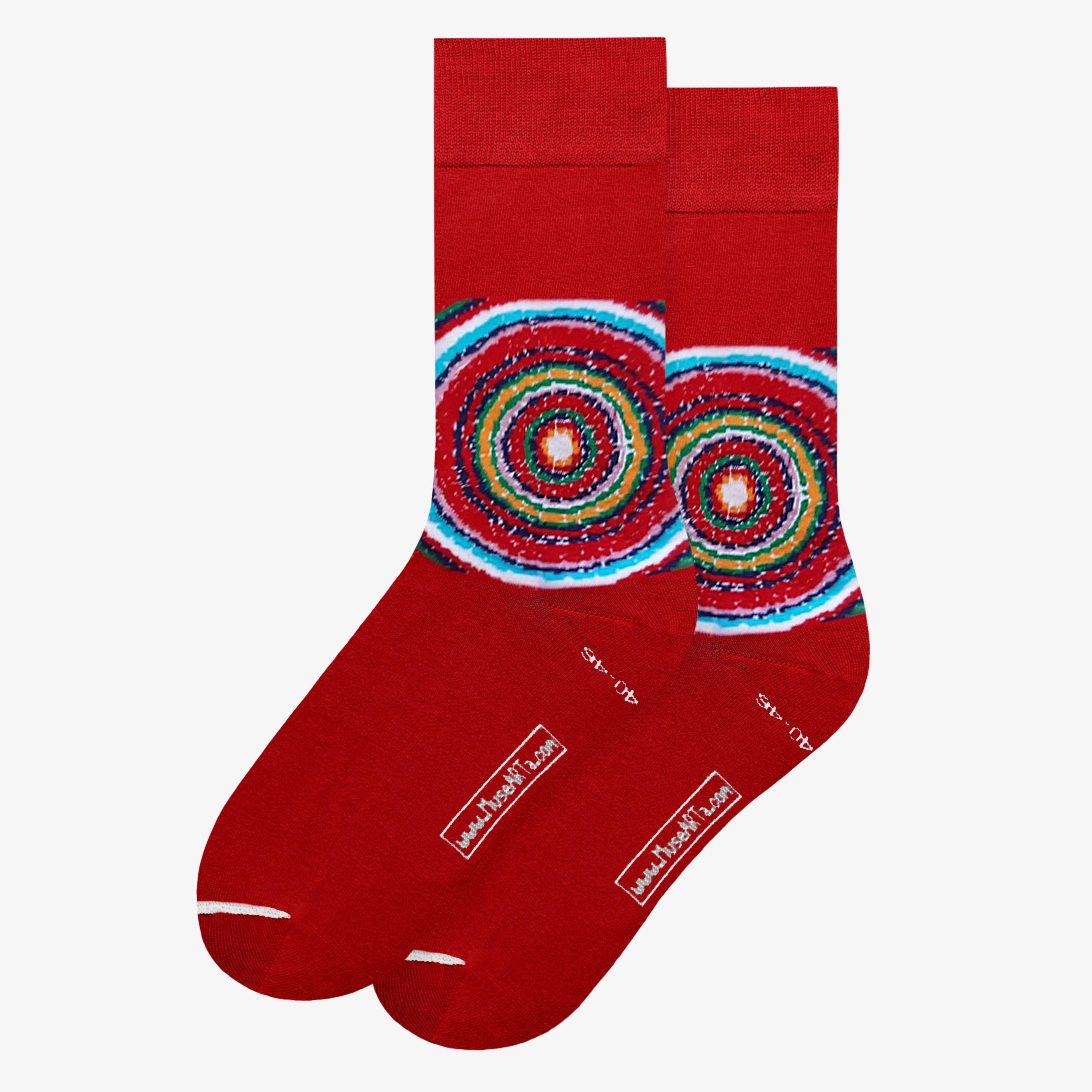De l'art sur des chaussettes ! ART-SOX | MuseArta fait entrer l'art dans votre garde-robe aussi près que possible de la peinture originale. Chez ART-SOX | MuseArta, nous voulons vous faire découvrir des œuvres d'art importantes qui feront partie de votre garde-robe, afin qu'elles fassent partie de votre vie. Cependant, cela doit se faire sans banaliser la valeur de l'art. C'est pourquoi nous nous sommes fixé comme objectif d'obtenir la meilleure qualité possible avec nos produits. Nos produits sont à l'opposé de la fast fashion. Les dessins et les imprimés doivent durer éternellement, tout comme les œuvres d'art qu'ils représentent. En particulier, avec notre ART-SOX | MuseArta, il y en a pour tous les goûts : avec plus de 350 motifs différents, nous représentons des œuvres d'art des époques les plus importantes et des plus grands artistes de tous les temps.