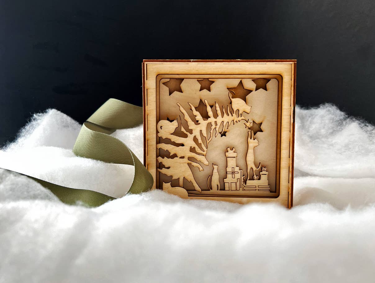 MARCHÉ D'HIVER FAIRE : 60 $ %10 de réduction 160 $ %15 de réduction 260 $ %20 de réduction Bonjour, je suis Casey — les mains et le cœur derrière Squirrel Tacos. Ce qui a commencé il y a plus de dix ans avec une lame de scalpel et une pile de papier est devenu un studio créatif à part entière niché sur la côte Est. Inspiré par les promenades en forêt, le folklore vintage et une touche de fantaisie, je crée des découpes de papier délicatement détaillées et des designs en bois découpés au laser destinés à apporter un peu de merveille dans les espaces du quotidien. Squirrel Tacos en est maintenant à sa 13e année chanceuse, offrant des œuvres d'art en papier encadrées, des cartes de vœux et une ligne croissante de décorations en bois découpées au laser — toutes fabriquées avec soin et un profond amour pour la narration à travers le design. Mon travail a trouvé sa place dans des boutiques indépendantes, des galeries et des boutiques à travers les États-Unis (et au-delà), et a été présenté dans Bride Magazine, Breaker Zine et South Jersey’s Best. Merci beaucoup d'être passé et de soutenir la magie faite main. Cliquez sur "Suivre" pour être le premier à voir les nouveaux designs — j'ajoute de nouvelles œuvres environ 4 à 5 fois par an.