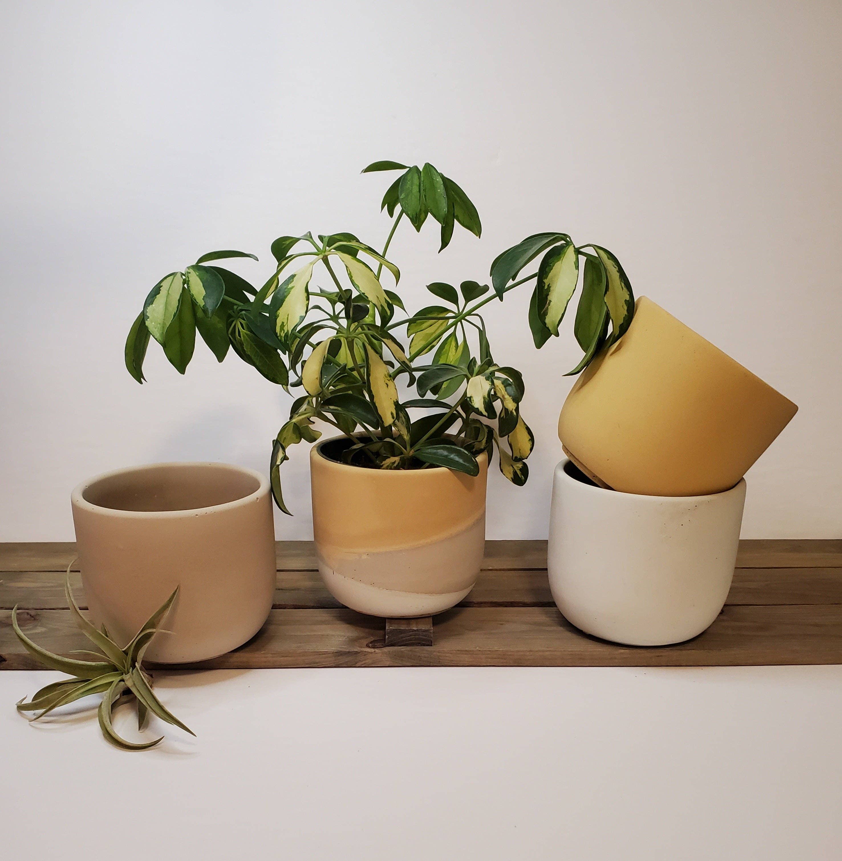Nous acceptons MAINTENANT les précommandes pour nos collections populaires d'automne et de Noël, elles partent rapidement alors n'hésitez pas à rejoindre la liste de précommande ! Plant 'er Here est né du désir de créer des pots de plantes uniques, évoluant vers une gamme de produits croissante de produits en béton coloré faits à la main. Toutes les opérations commerciales, y compris la production, sont réalisées par la propriétaire Vicki Parisian, à Calgary, AB Canada. Habilement fabriquées et alimentées par une passion créative, toutes les pièces sont colorées en interne en mélangeant plusieurs pigments colorés pour créer nos couleurs de marque personnalisées. Suivi d'un ponçage à la main et de détails dorés, toutes les pièces sont finies avec un scellant résistant à l'eau qui ajoute une finition satinée. Plant 'er Here s'efforce d'offrir des articles ménagers en béton faits à la main, abordables, fonctionnels et de haute qualité, en utilisant une production en petites séries.
