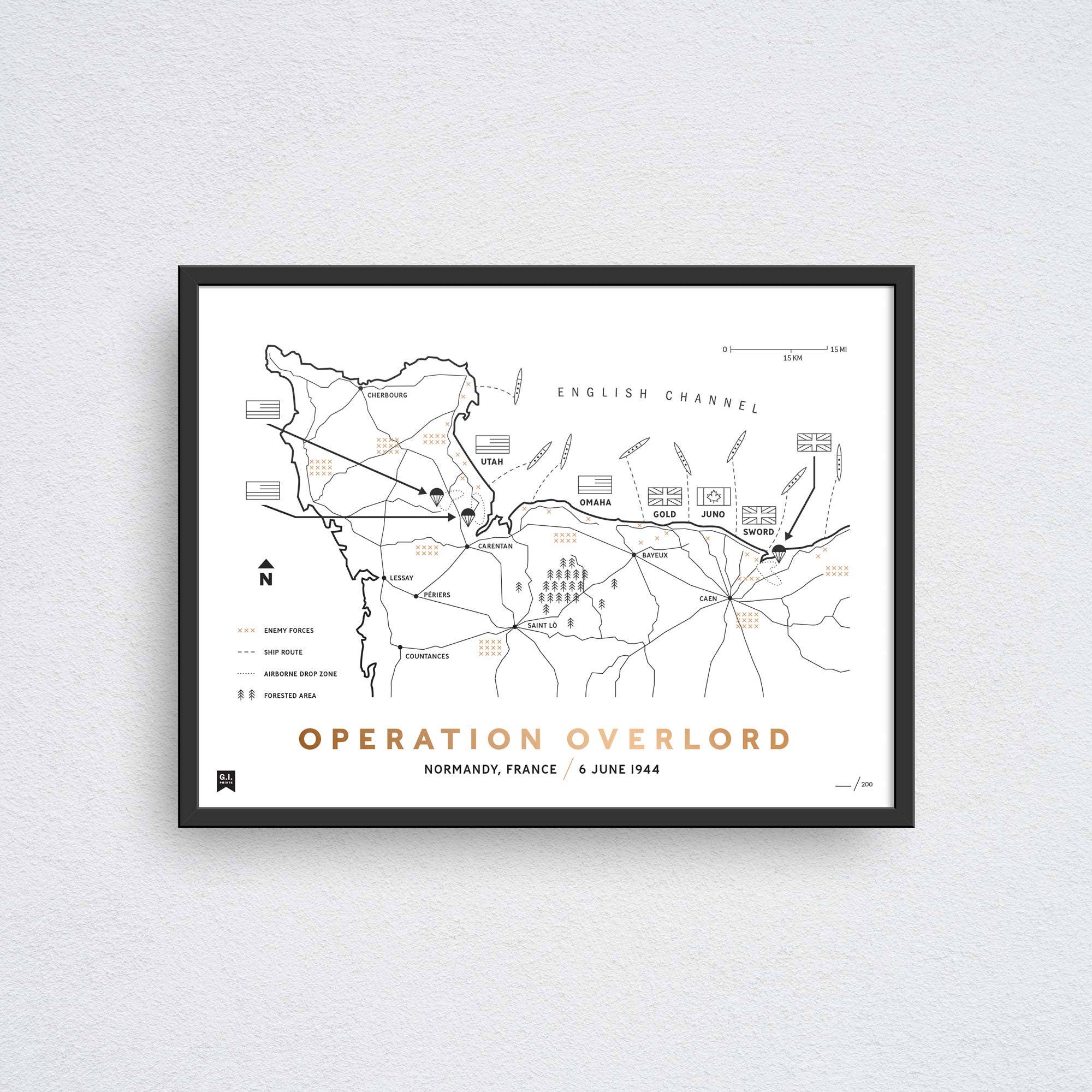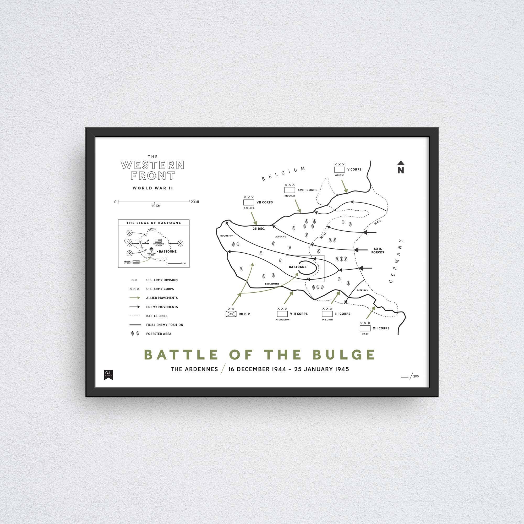 La Government Issue Prints Co., ou « G.I. Prints », fabrique les meilleures cartes militaires et estampes d'archives du monde. Chacun de nos produits raconte une histoire et tous vous aident à honorer l'héritage militaire de votre famille. Tous nos produits sont fabriqués à la main aux États-Unis selon les normes de sérigraphie et de typographie les plus strictes et conviennent à l'encadrement et à la transmission aux générations futures. Nous avons été fondés par une famille de militaires américains lorsqu'ils ont découvert qu'ils ne pouvaient pas trouver d'art et d'accessoires militaires bien faits et de conception classique pour leurs propres maisons et bureaux. En tant qu'anciens combattants et militaires eux-mêmes, ils voulaient exposer des œuvres d'art de première qualité qui leur rappelleraient le service et les sacrifices de leurs parents, grands-parents et autres membres de leur famille. Chez G.I. Prints, nous sommes des soldats et des historiens ; nous sommes des combattants et des vétérans ; nous sommes des designers et des artistes. Les histoires et l'héritage guerrier de nos grandes batailles et le patrimoine et la tradition remplis de fierté de notre nation et de ses militaires méritent d'être préservés et perpétués pour les générations futures, et nous sommes profondément honorés de remplir cette mission grâce à notre travail ici à G.I. Prints.