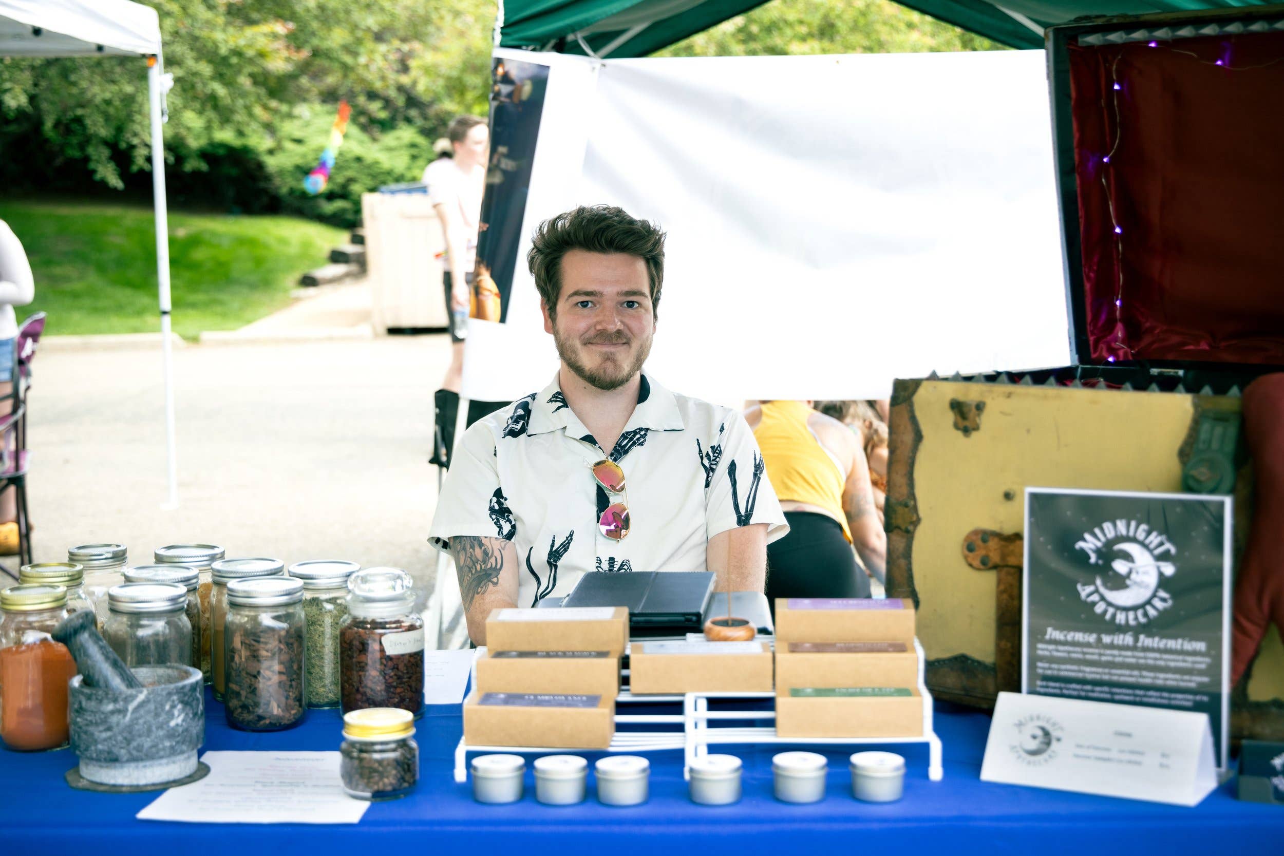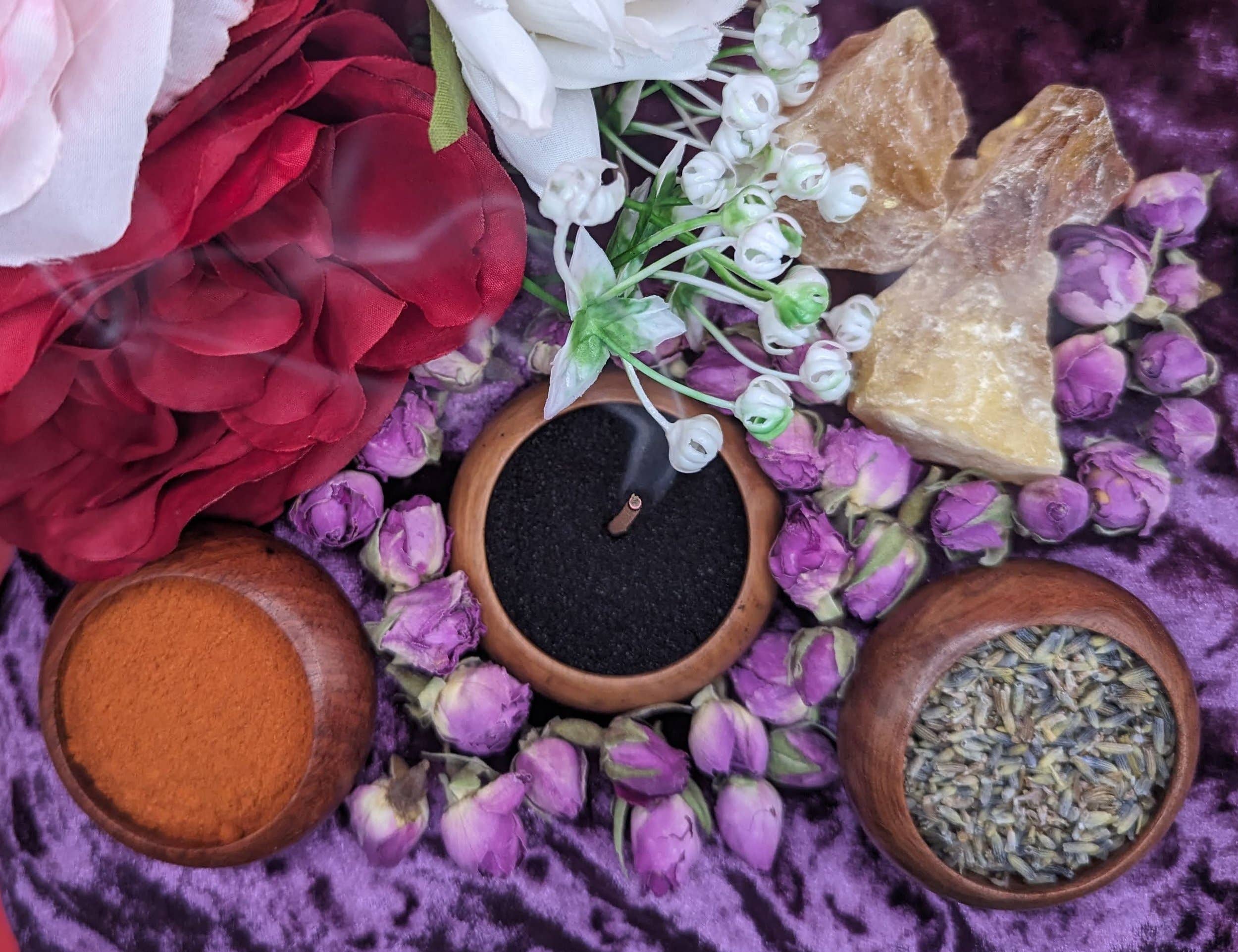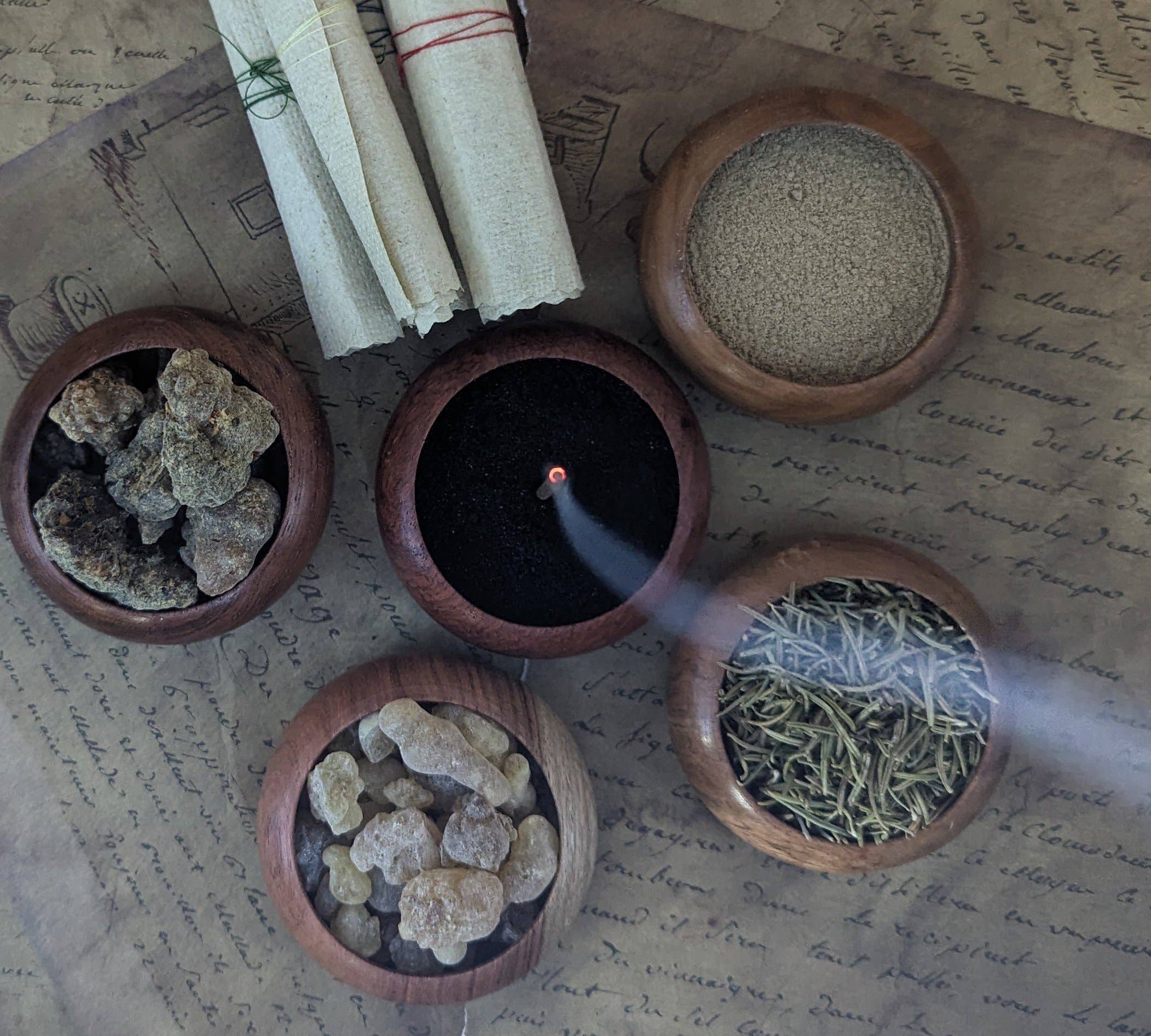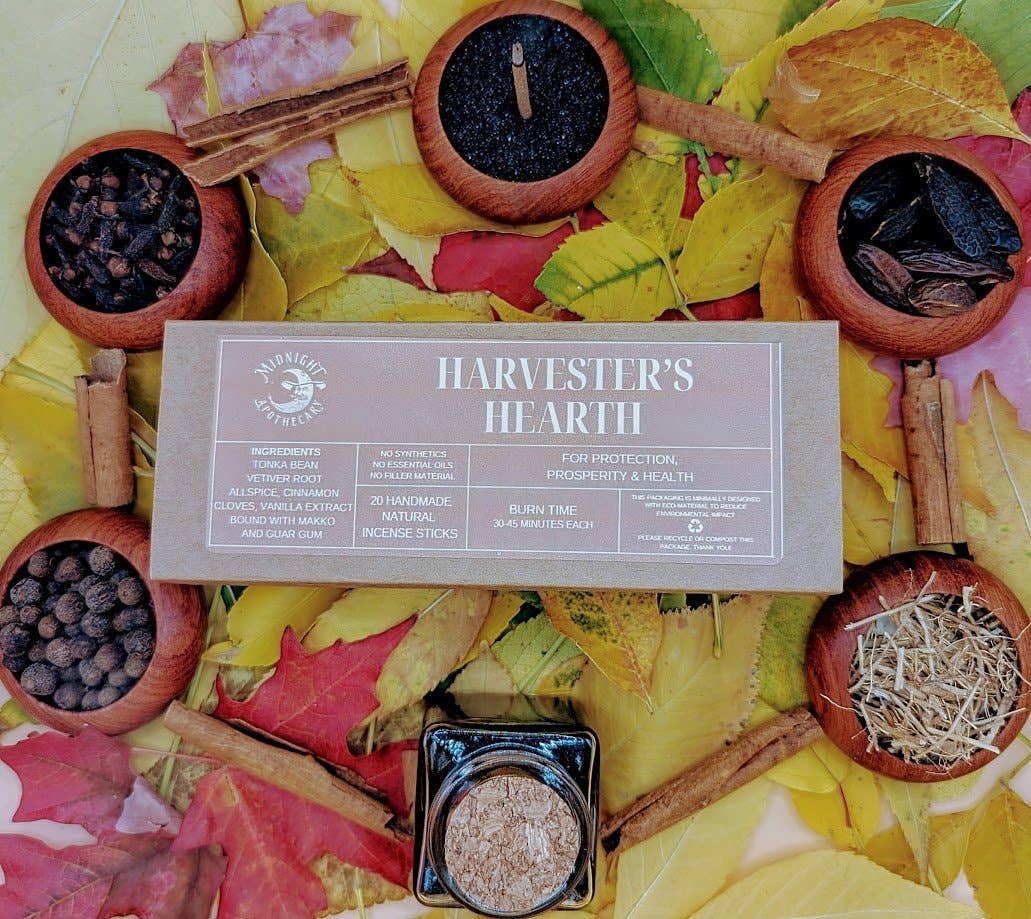 L'encens peut être un outil puissant pour aider dans les pratiques spirituelles, le yoga, le travail de sortilèges, ou simplement un moyen de changer l'atmosphère d'une pièce. Malheureusement, l'encens a une mauvaise réputation en raison des odeurs persistantes et désagréables et des effets secondaires néfastes pour la santé causés par la présence de matériaux synthétiques non combustibles dans les bâtonnets. The Midnight Apothecary a été fondée pour offrir de l'encens naturel à faible fumée à ceux qui souhaitent perpétuer la tradition séculaire de l'encens de manière plus sûre. Notre encens est fabriqué selon la méthode traditionnelle de création de bâtonnets de joss, qui est de l'encens composé à 100 % de matériaux botaniques sans noyau interne en bambou. Nous utilisons uniquement des herbes, des fleurs, des résines, des bois et des gommes dans notre encens, provenant de fournisseurs réputés et éthiques. Chaque mélange est créé avec des intentions magiques spécifiques qui reflètent les propriétés des ingrédients utilisés. The Midnight Apothecary vous invite à explorer notre boutique et à apprécier l'encens tel qu'il était censé être vécu.
