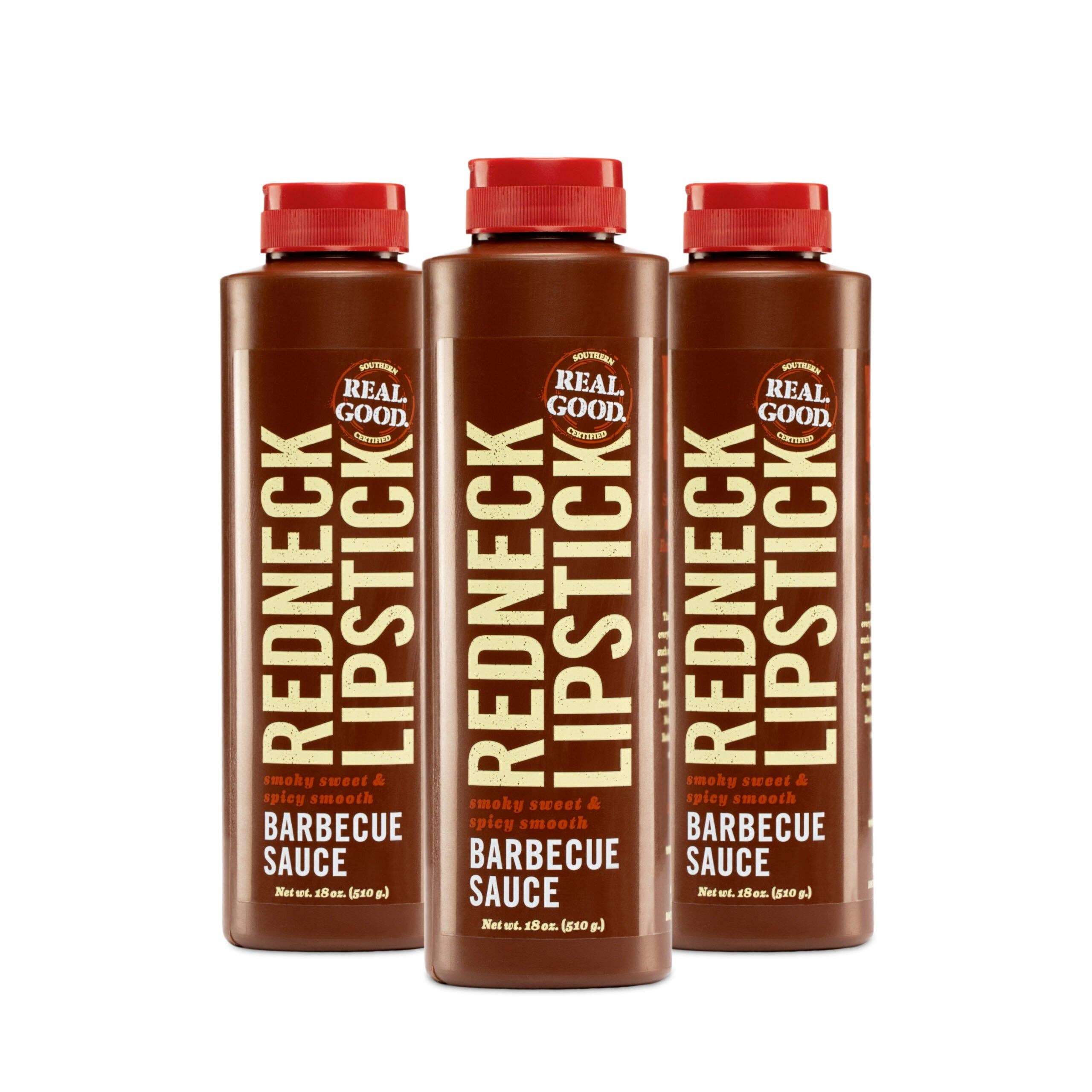 Le barbecue n'est certainement pas un plat à manger avec un couteau et une fourchette. Et plus c'est bon, plus c'est salissant. Nous avons créé Redneck Lipstick pour inspirer les plus désordonnés. C'est un magnifique mélange des meilleures régions de barbecue d'Amérique. Parfaitement équilibré, il ne domine jamais la viande. Et tellement distinctif que tout ce sur quoi vous le mettez devient instantanément du barbecue. Alors procurez-vous une bouteille de Redneck Lipstick — nous garantissons qu'elle laissera aussi sa marque sur vous.