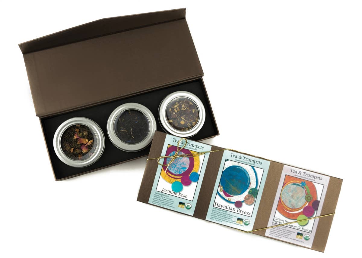 Salut ! Je suis Mark, le créateur de Tea and Trumpets, et je voulais vous donner un bref aperçu de notre entreprise. Après avoir passé quelques années dans l'industrie pharmaceutique, je me suis rendu compte qu'il manquait quelque chose à mon travail. Bien que l'industrie me traitait bien, je voulais créer ma propre entreprise qui, d'une manière ou d'une autre, ajouterait à la vie des gens. L'une des choses que j'apprécie vraiment dans ma journée, c'est de boire du thé. Pour moi, il y a quelque chose d'irremplaçable dans une tasse de thé. J'ai également trouvé intriguant les usages sanitaires et médicinaux du thé. En cherchant du thé en feuilles à Santa Rosa, j'ai constaté que mes options étaient limitées. J'ai eu envie de vivre une expérience interactive de sélection de thé dans le choix du thé. J'ai décidé de créer une entreprise de thé qui propose une sélection de qualité, un excellent service client et, surtout, qui soit accueillante et non intimidante. Je crois que le choix du thé en feuilles doit être amusant et interactif.