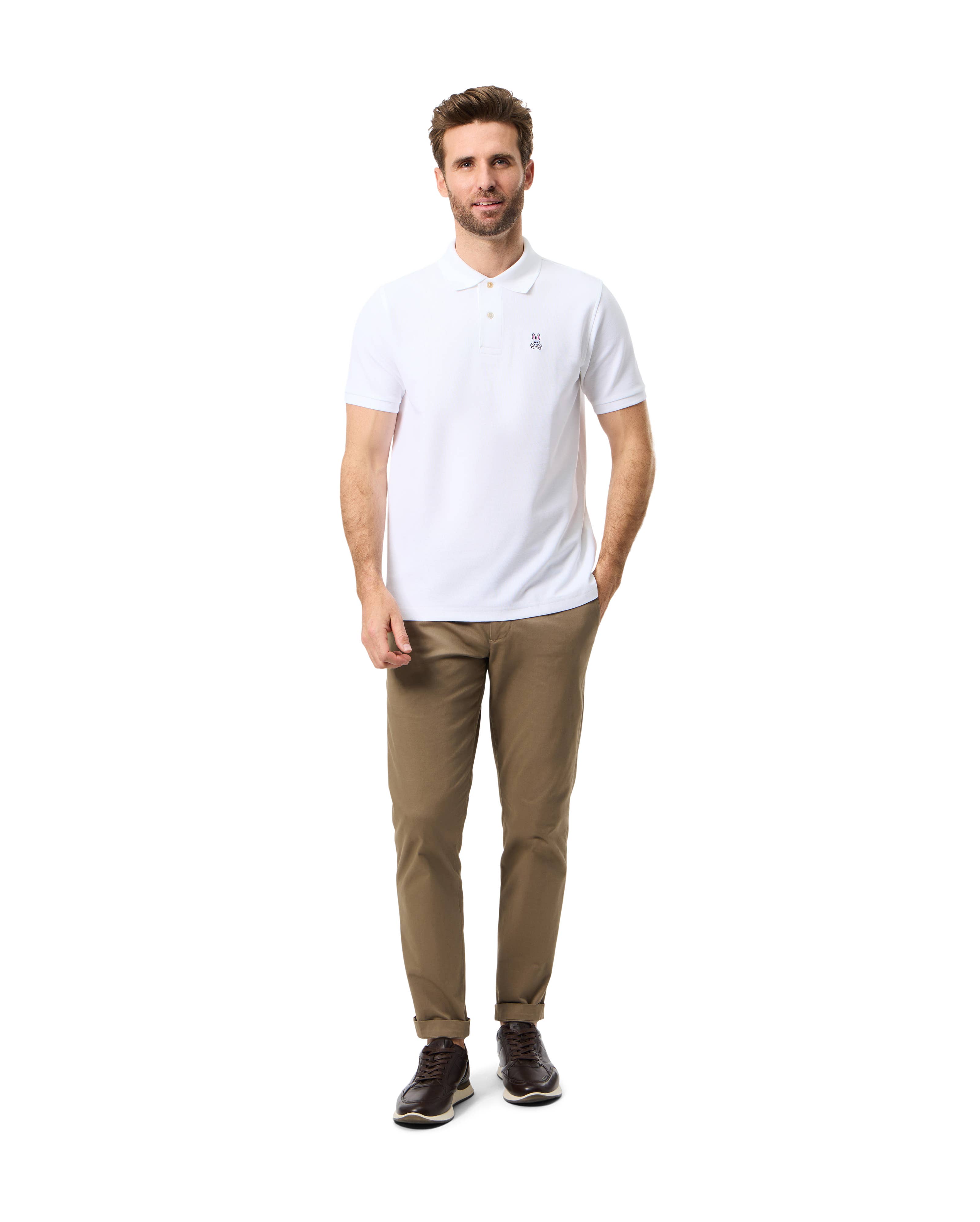 NAISSANCE DU LAPIN Psycho Bunny a été fondé en 2005 avec la vision de créer une ligne de vêtements qui combine le sportswear américain classique avec une touche moderne. Cela a résonné avec un large éventail de clients à la recherche de quelque chose à la fois classique et non conventionnel. NOUS N'AVONS PAS ENCORE FINI Difficile à croire, mais à l'origine PB était entièrement consacré aux cravates—oui, les gens portaient des cravates—mais la vision globale était de créer une marque qui défie les normes conventionnelles de la masculinité et de l'accomplissement humain avec un côté rebelle. PRÉSENTATION DU STANDARD AUDACIEUX Nous avons entrepris de créer quelque chose qui capturerait enfin l'essence même de Psycho Bunny. Une idée qui élèverait la marque et deviendrait absolument inspirante. Nous avons travaillé nuits, week-ends, étés, 25/7, oui 25/7, nous n'avons pas dormi, mangé, pris de douche, ou expiré jusqu'à ce que nous le trouvions. Et nous l'avons fait. Ça s'appelle le Standard Audacieux. Et croyez-le, ce n'est en rien standard.