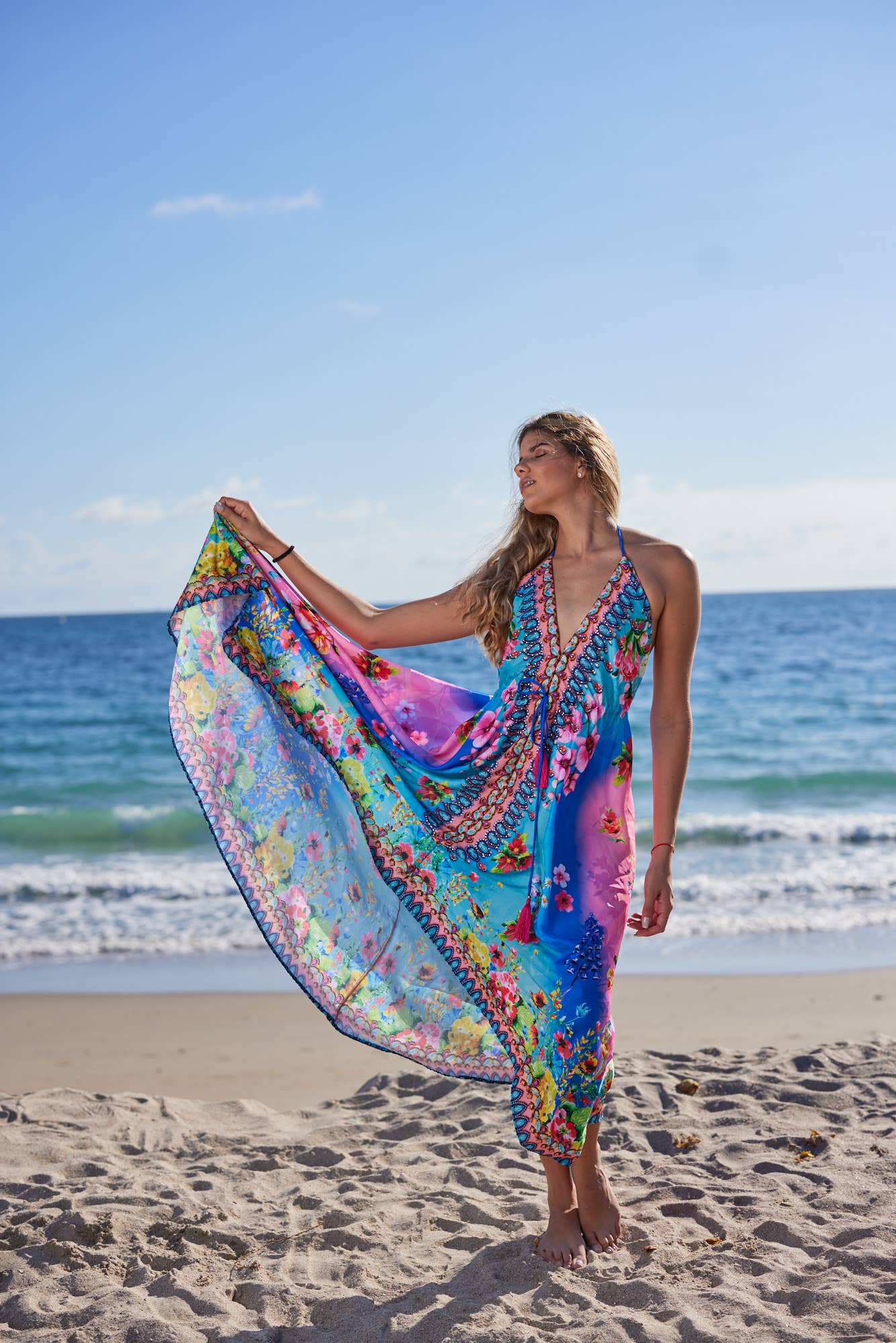 Les vêtements de Ranee sont plus qu'un vêtement de villégiature, ils racontent une histoire, ils font une déclaration, ils s'inspirent de différentes cultures et sont quelque chose que chaque femme aimerait posséder. Ranee's est créé par une femme, pour toutes les femmes qui rêvent de voler sur des nuages, sans aucune corde, et qui désirent être magnifiques chaque jour et partout. Les imprimés de Ranee sont conçus par le designer de Miami Kiran Khiyani, et appartiennent exclusivement à Ranee, car vous ne trouverez pas nos imprimés chez aucun autre grossiste. Kiran aime les imprimés audacieux et les couleurs exotiques. L'art du design consiste à combiner à la fois des imprimés et des couleurs sur de beaux tissus, ainsi qu'un style parfait et des détails complexes. Chaque pièce est fabriquée à la main avec plusieurs heures de travail investies dans chaque pièce, découpée et semée individuellement, et des embellissements complexes rendent notre pièce unique en son genre. Les vêtements de Ranee sont parfaits pour les événements sociaux, la plage, les croisières ou les vacances. C'est une robe que vous n'oublierez jamais d'emporter.