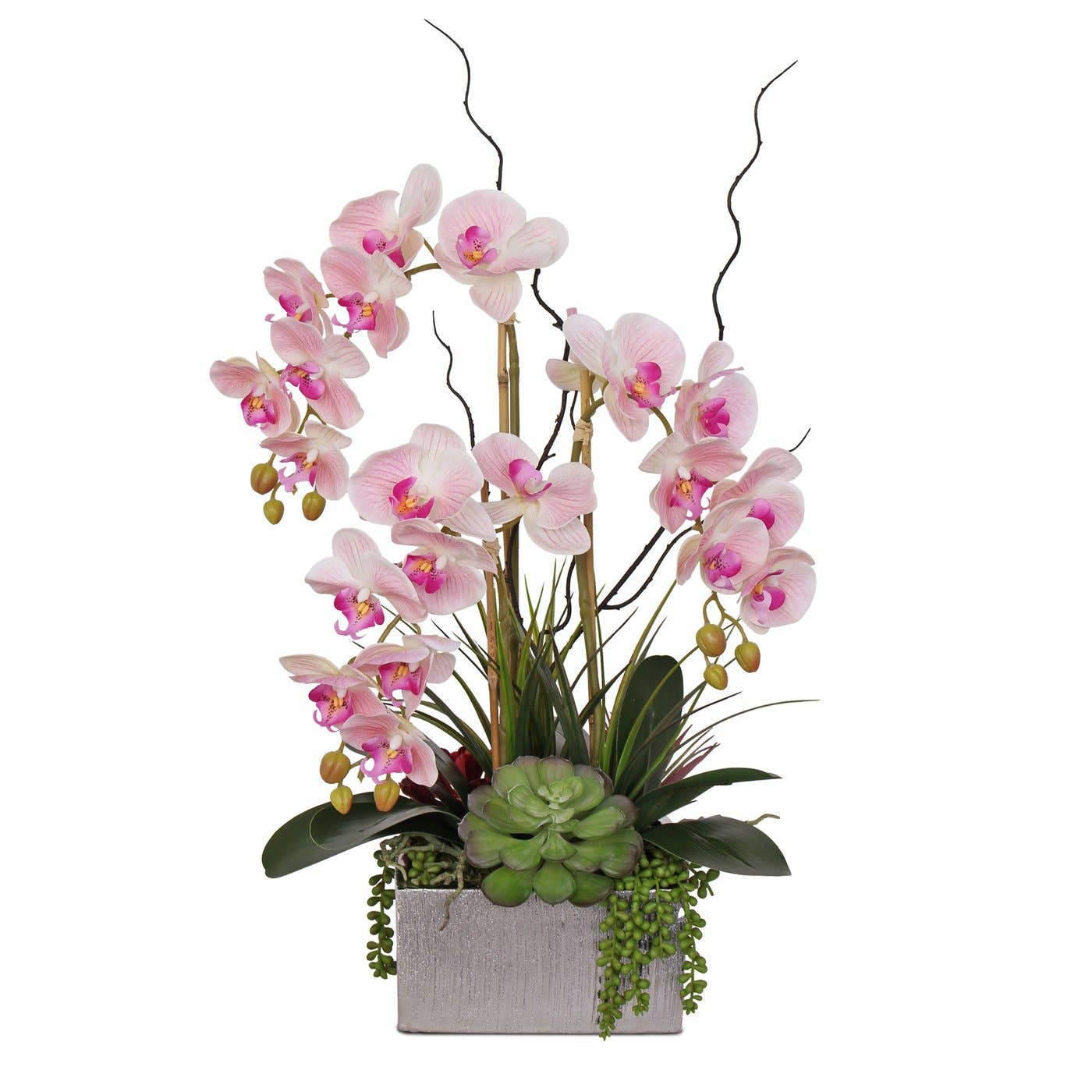 Fondée en 1985, JENNY SILKS s'est toujours efforcée de fournir des produits floraux en soie de la plus haute qualité et des accessoires à diverses industries et clients, y compris le design d'intérieur, le commerce, la vente au détail, l'hôtellerie, le résidentiel et la mise en scène. Avec plus de 40 ans d'expérience, nous sommes devenus un leader de confiance dans l'industrie, construisant une clientèle fidèle dans le monde entier. Chacune de nos compositions est méticuleusement fabriquée à la main aux États-Unis, reflétant notre engagement à offrir des fleurs en soie botaniques de créateur haut de gamme, des plantes en soie réalistes, des arbres artificiels et des feuillages d'apparence naturelle, des compositions à effet d'eau et d'autres accessoires décoratifs.
