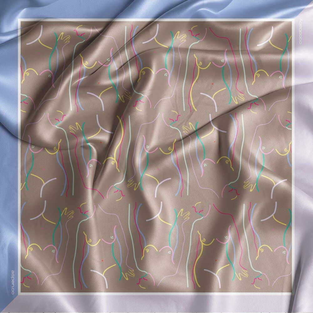 Cocobaby est une marque qui aime les femmes dont le but premier est de célébrer le féminin. Créée par Nicola Clarke, née en Afrique du Sud, a grandi avec trois sœurs et deux mères, Nicola a toujours été complètement enchantée par la forme féminine. Chaque foulard en soie Cocobaby est un hommage illustré à la main aux femmes, transformant l'art en beaux vêtements. Portez votre cocobaby comme un couvre-chef, une écharpe, un masque, attachez-le sur votre sac à main, utilisez-le comme un sarong ou même comme une ceinture. C'est réalisable aussi. Quelle que soit la façon dont vous choisissez de le coiffer, faites-en votre pièce de déclaration. Détails : - Coupe surdimensionnée : 35 po x 35 » Ourlet roulé à la main - 100% Sergé de Soie - Nettoyage à sec uniquement - Toute la saison