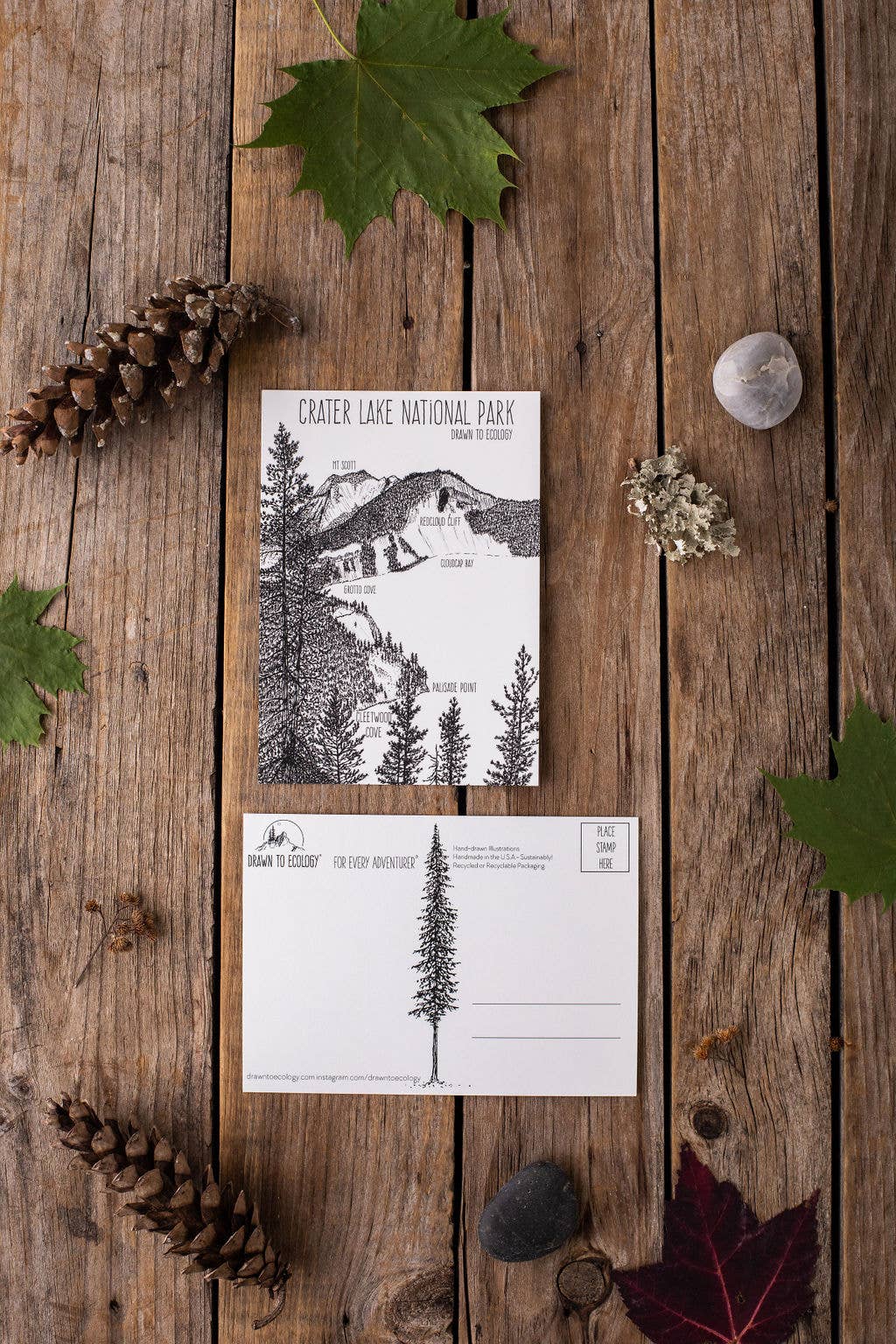 En associant un œil critique et des connaissances scientifiques à la fantaisie artistique pour créer des pièces qui inspirent, éduquent et font sourire les gens. Drawn to Ecology prend en charge et protège notre planète tout en vous fournissant des illustrations naturelles dessinées à la main sur des produits durables, fabriqués en Nouvelle-Angleterre et aux États-Unis. Découvrez des produits dans le parc national de Crater Lake, le parc national volcanique de Lassen, le parc national des Glaciers, les parcs d'État de Californie, plusieurs boutiques à travers le pays et de nombreux centres d'éducation à la nature. Comment Drawn to Ecology est-il durable ? Tous nos produits sont fabriqués aux États-Unis Cartes typographiques : MA, papier sans acide et sans javel, impression durable Cartes postales : papier durable et impression RI Autocollants : CO Sacs réutilisables : NH par une entreprise détenue et exploitée par des femmes
