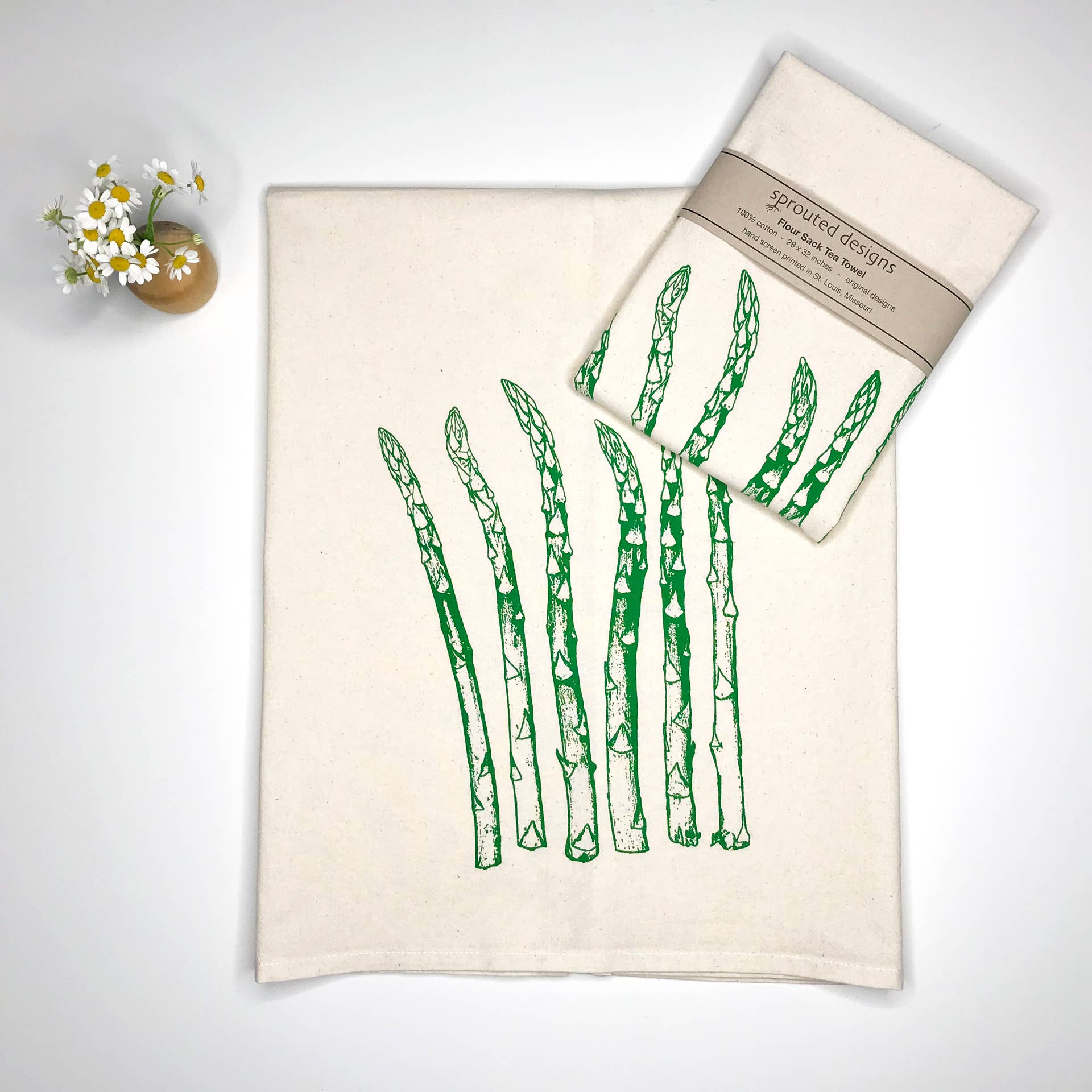 Sprouted Designs a commencé comme passe-temps pour Amanda Gray-Swain et est depuis devenu un emploi à temps plein pour elle-même et son mari, Andrew James. Sprouted Designs crée de l'art fonctionnel qui peut être utilisé quotidiennement. Des motifs originaux sérigraphiés à la main sont disponibles sur les serviettes et serviettes de sac à farine. Tous les produits sont imprimés à la main par Amanda et Andrew dans leur atelier à Saint-Louis Missouri. • Le sac de farine de coton non blanchi 100 % naturel a un tissage plus serré et une sensation plus robuste • Laver et sécher en machine. L'impression ne se délavera jamais • Ourlet sur les 4 côtés • Les serviettes mesurent environ 27 « de large sur 32 » • Les serviettes sont d'environ 19 pouces carrés • Boucle de suspension cousue dans le coin des serviettes • Imprimé avec des encres à base d'eau respectueuses de l'environnement • Sans peluches ! Parfait pour sécher la verrerie ou la vaisselle • Les ébauches de produits sont disponibles aux États-Unis. • Chaque serviette est imprimée individuellement à la main, ce qui peut entraîner des variations mineures