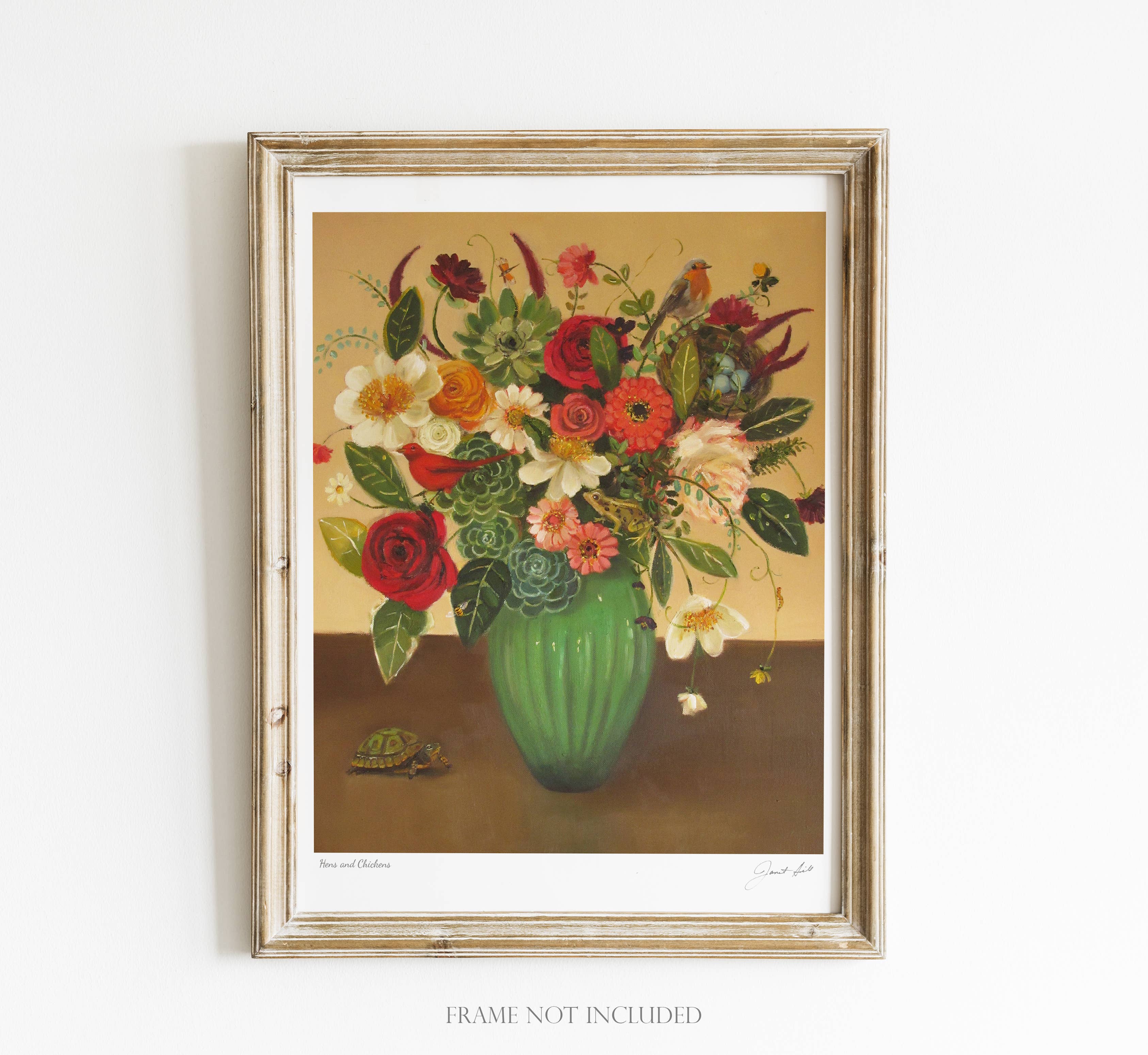 Le travail de Janet est à la fois élégant, mais fantaisiste, souvent avec un récit sous-jacent qui capte instantanément l'imagination. Son style de peinture évoque la nostalgie, la beauté intemporelle, le mystère, l'humour et le confort. Sa collection comprend des estampes d'art, des cartes et des articles de papeterie.