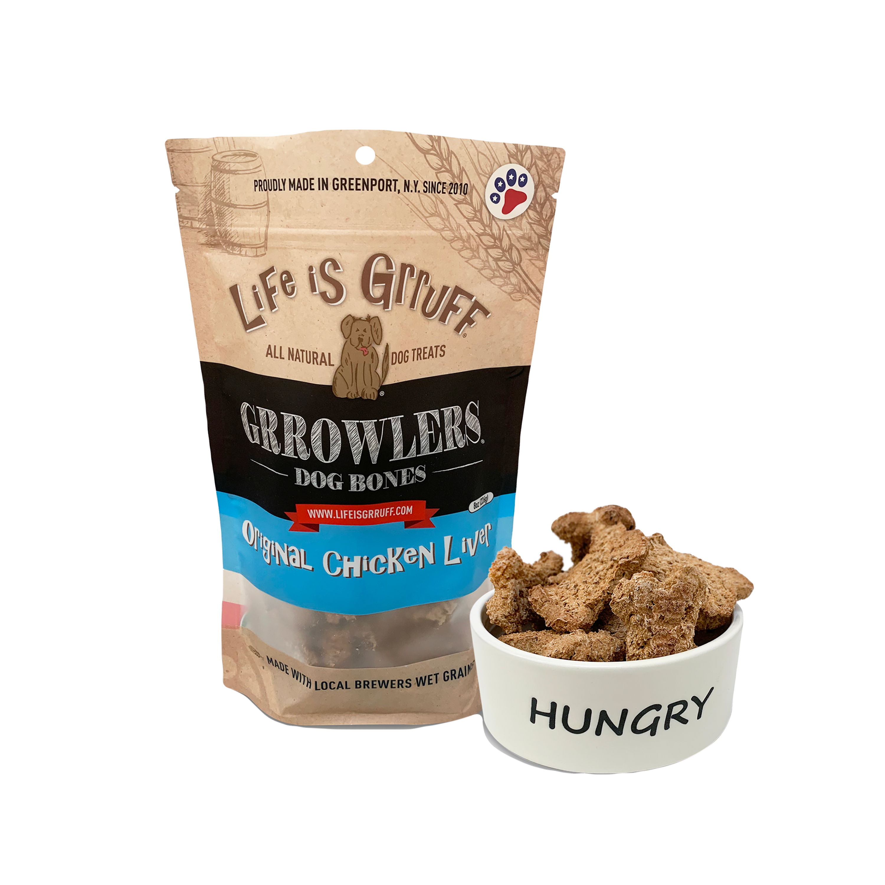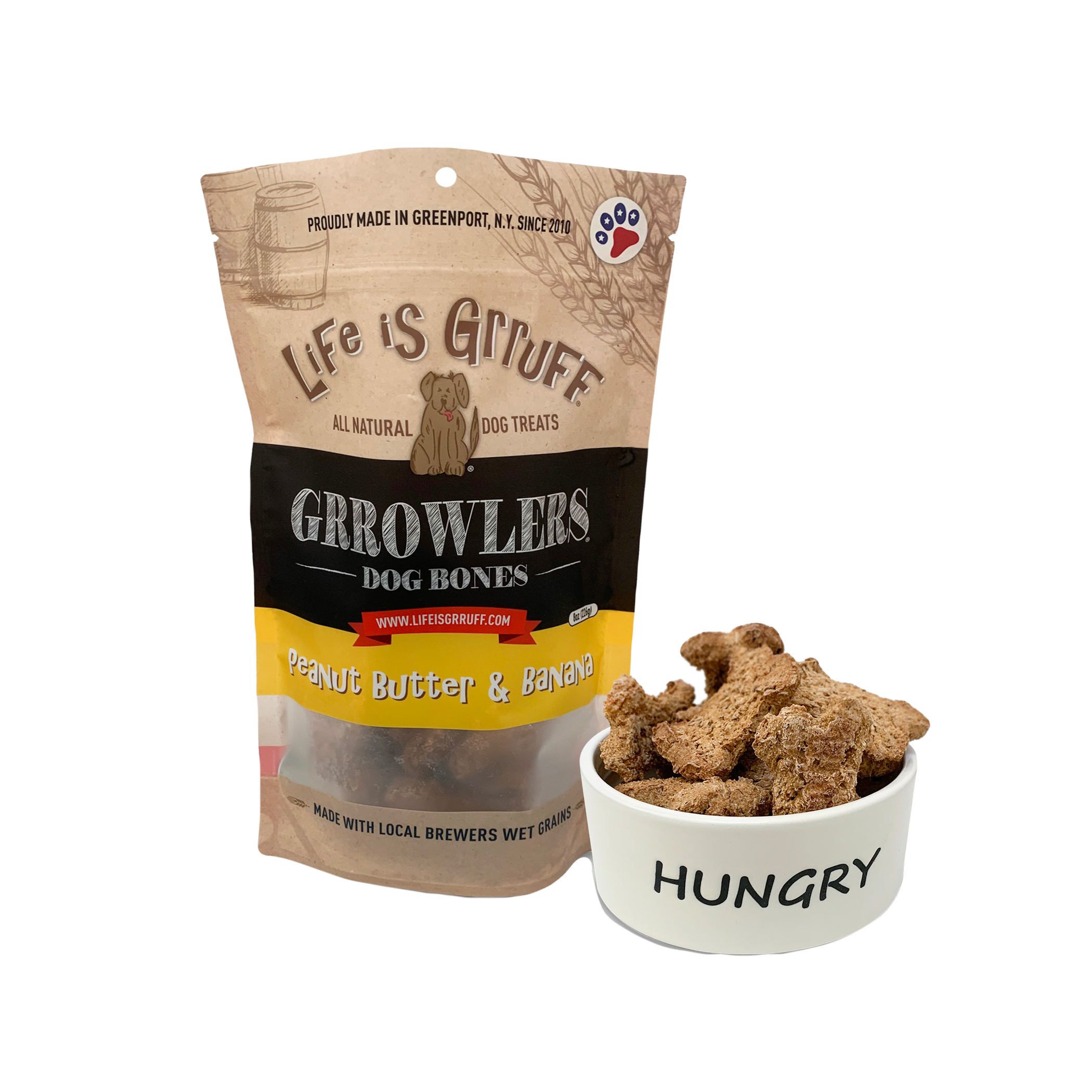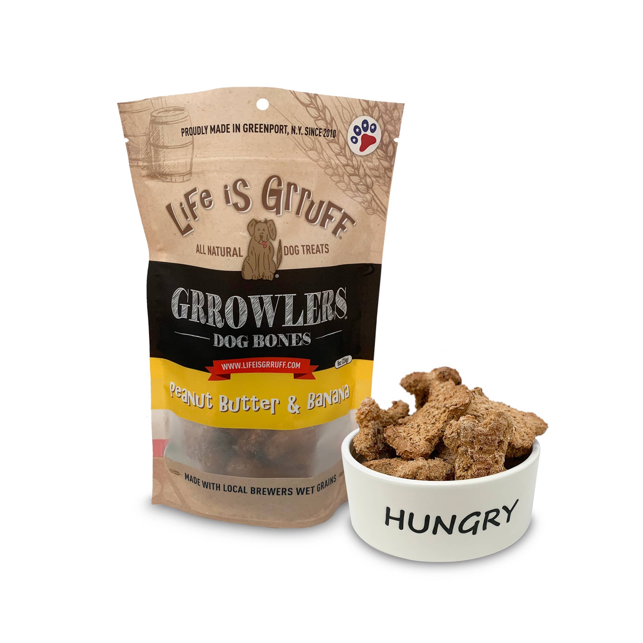 Nous aimons les chiens, entretenons de bonnes amitiés et croyons qu'il est important de réaliser des rêves ! Nos clients apprécient le fait que nos produits soient tous des friandises pour chiens naturelles, durables et saines. Life is Grruff est né pour redonner à tous les chiens dont les familles aiment offrir des friandises saines à leur chiot préféré mais qui n'ont pas le temps de préparer les meilleures friandises pour chiens possibles. Life is Grruff vous facilite la tâche ! Les friandises Life is Grruff sont toutes des friandises naturelles pour chiens cuites à Long Island, dans l'État de New York. Toutes nos friandises sont créées avec soin et testées pour garantir de première main que votre chiot les adorera. Notre boulangerie travaille avec notre brasserie locale depuis 7 ans pour transformer ses drêches en délicieuses friandises saines pour chiens. Nous travaillons actuellement avec 6 brasseries et une distillerie, ce qui nous permet de préserver plus de 74 tonnes de céréales des déchets à ce jour. Ces friandises sont plus riches en fibres et en protéines que les friandises fabriquées uniquement avec de la farine de blé. La fabrication de friandises pour chiens à base de céréales épuisées peut réduire le nombre de calories de 7 %, augmenter la teneur en protéines de 50 % et doubler la teneur en fibres lorsque vous remplacez la farine de blé.