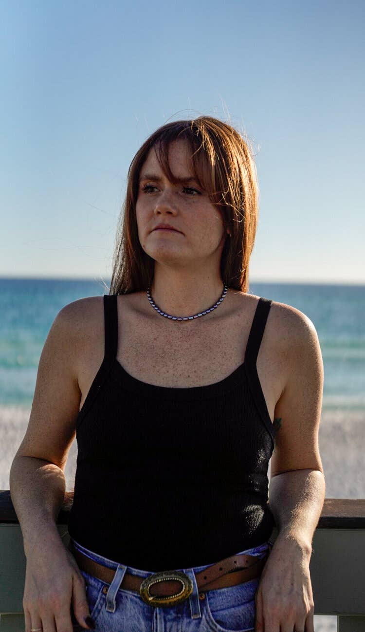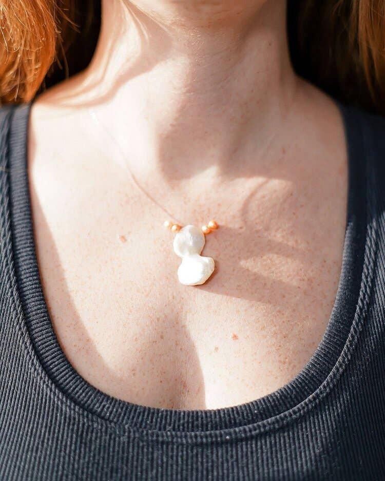 BONJOUR, JE M'APPELLE HANA. JE SUIS LA SIRÈNE QUI A FABRIQUÉ TES PIERRES PRÉCIEUSES. J'AI TOUJOURS ÉTÉ QUALIFIÉE DE SIRÈNE À CAUSE DE MES LONGS CHEVEUX ROUX ET DE MON AMOUR DE L'EAU. MON HISTOIRE COMMENCE EN 2016 LORSQUE J'AI COMMENCÉ À PÊCHER SUR LA CÔTE DU GOLFE. J'AVAIS UN COLLIER DE PERLES EN CUIR QUI S'ÉTAIT CASSÉ, ALORS J'AI ATTACHÉ LA PERLE AUTOUR DE MON COU AVEC UNE LIGNE DE PÊCHE. À PARTIR DE LÀ, J'AI SOIGNEUSEMENT PERFECTIONNÉ MON ART POUR CRÉER UN COLLIER QUI RÉSISTE À L'EAU, À L'USURE QUOTIDIENNE ET QUI SEMBLE FLOTTER SUR VOTRE COU. MON OBJECTIF ÉTAIT DE FABRIQUER UN COLLIER QUI NE SE BRISERAIT PAS. J'APPELLE CES PIERRES PRÉCIEUSES DES « PERLES D'EAU DOUCE FLOTTANTES ». MermadeGems : pierres précieuses de la mer fabriquées par une sirène locale.