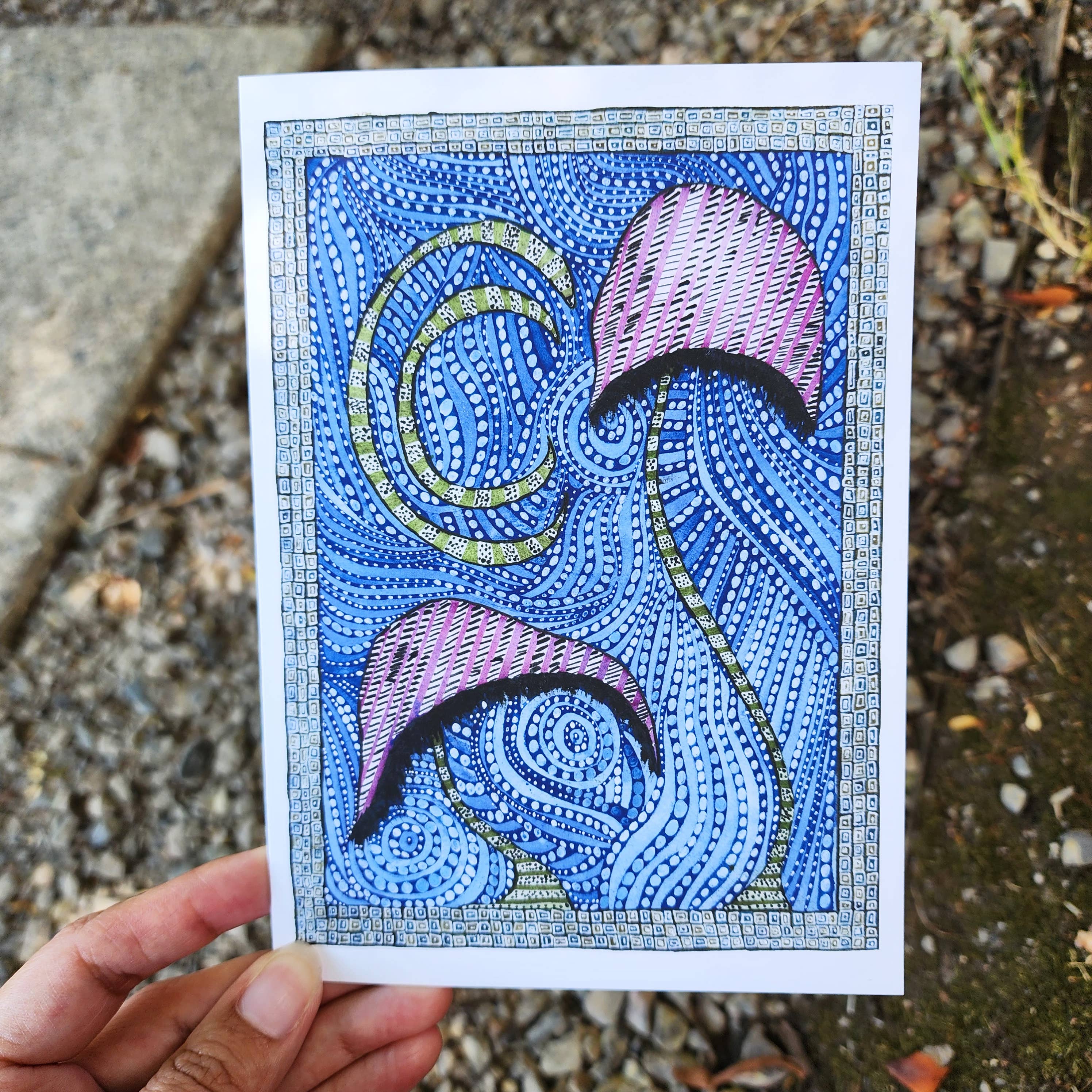 Bonjour ! Je m'appelle Mariah Roelfs, je suis née, j'ai grandi et je vis actuellement à Portland, dans l'Oregon, avec 3 chats que j'ai secourus dans mon refuge pour animaux local. J'ai acheté mon premier pinceau à l'âge de 5 ans. J'ai créé WaterDamnages en janvier 2019. Depuis la création de WaterDamnages, j'ai réussi à me faire une place sur Instagram. J'ai participé à plus de 50 marchés artisanaux locaux et je suis maintenant très heureuse et honorée de travailler avec des détaillants indépendants pour partager mes articles les plus vendus avec leurs clients adorés. Mes tirages d'archives et mes cartes de vœux sont numérisés et imprimés dans mon studio à domicile et sont créés avec des pigments de qualité professionnelle et du papier d'archivage. Je suis très actif sur Instagram, vous pouvez me trouver sur : WaterDamnages et par e-mail à : WaterDamnages@Gmail.com