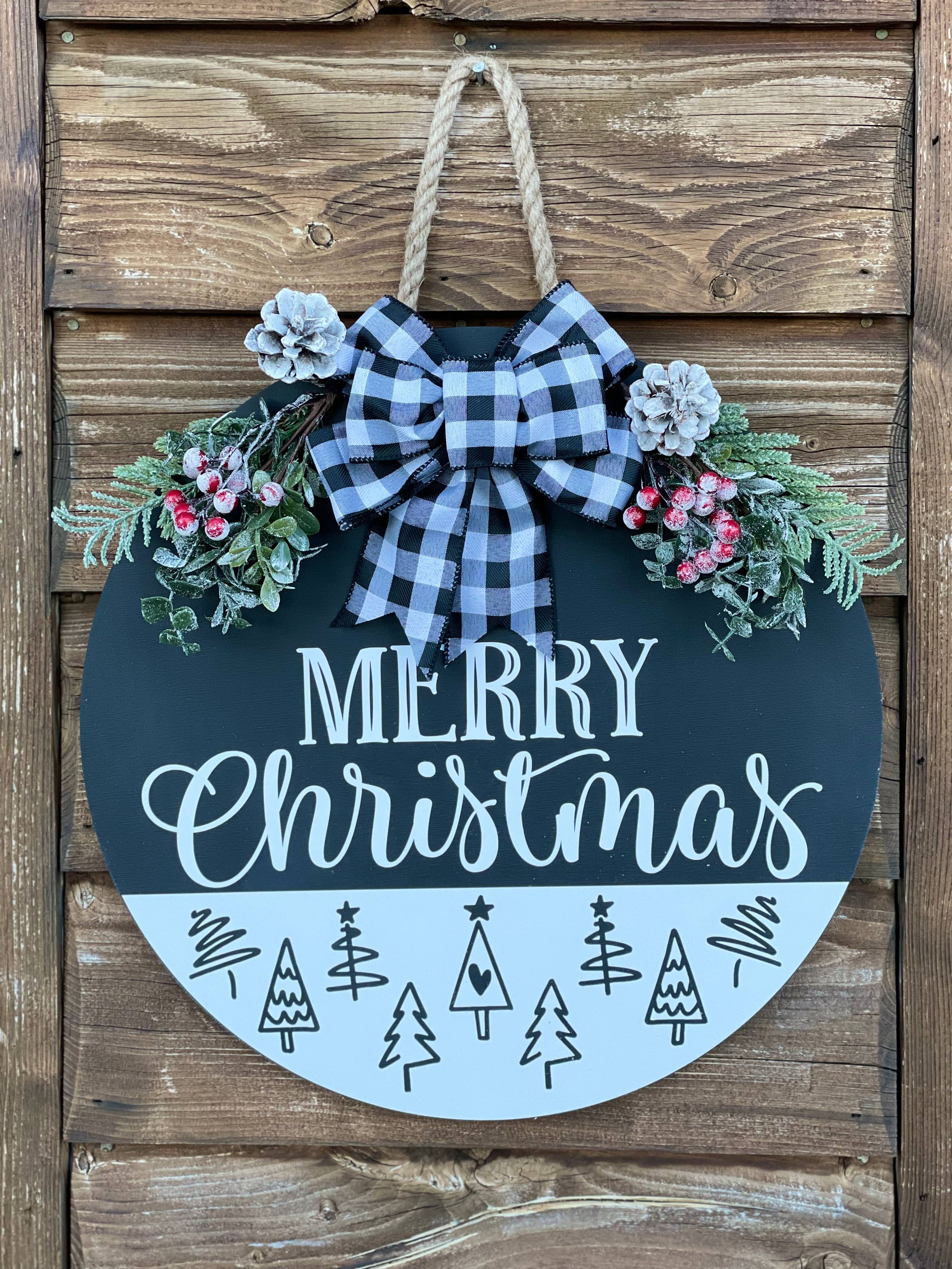 Emily, la créatrice derrière Makery de Mama E a toujours été créatrice, mais après qu'un cadeau d'anniversaire a été offert et partagé sur Facebook, une entreprise est née. Nous avons apprécié la croissance de notre petite entreprise et nous aimons toujours le défi de croître davantage. Les commandes personnalisées sont les pièces préférées d'Emily. Le mari d'Emily coupe, sable et peint tous les cercles. Elle ajoute ensuite la touche finale des dictons en vinyle, des arcs et de la verdure. Toutes les pièces sont sélectionnées à la main et ajoutées à chaque support de porte avant d'être emballées et envoyées à VOUS !