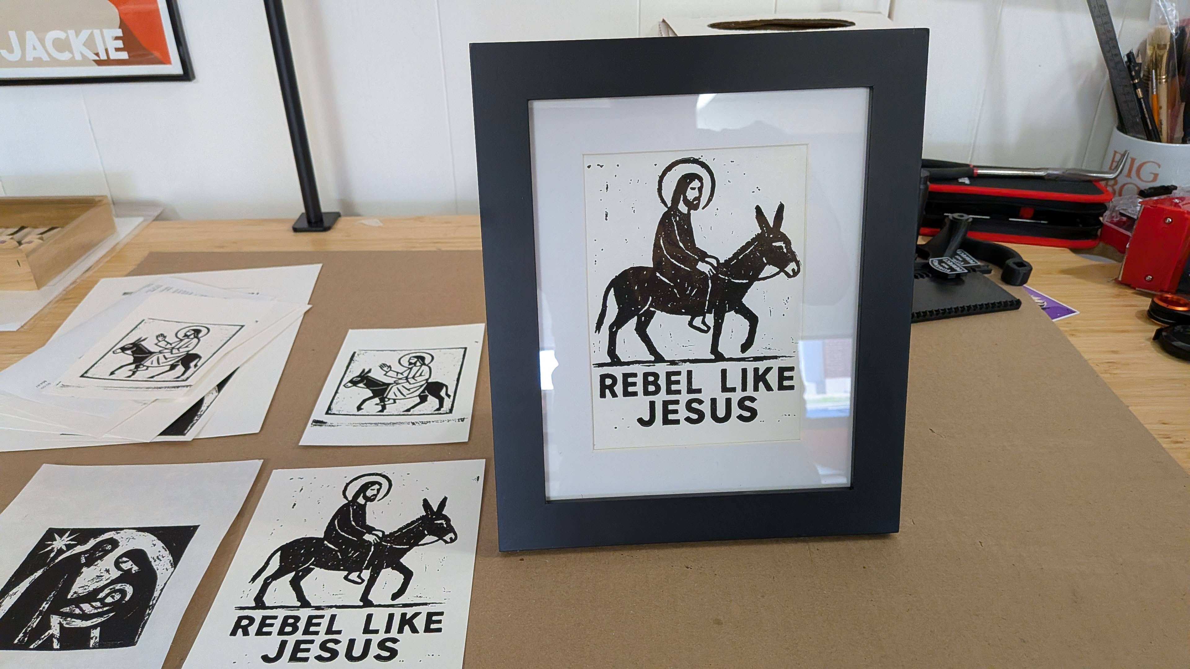 Everbound Press est une petite constellation d'artistes rassemblés autour du foyer lumineux de l'impression. Dans un monde prompt à oublier, nous choisissons le rythme lent et régulier de l'encre rencontrant le papier—l'ancienne alchimie de la pression, du pigment et de l'intention. Notre travail est un engagement envers la mémoire, une promesse que les histoires et les figures qui nous ont façonnés ne disparaîtront pas dans le bruit d'une époque agitée. Au centre de notre atelier se dresse notre précieuse presse Miles Nervine Galley des années 1870, une survivante en fonte dont le poids porte un siècle et demi de mains humaines, d'espoirs et de marques. Son grincement et son cliquetis sont pour nous une musique, un rappel que l'art est fait par des corps—par le souffle, par la sueur, par le toucher. Lorsque nous tirons une impression de son lit, nous rejoignons une lignée plus ancienne que l'électricité, plus ancienne que les caméras et les écrans qui définissent notre vision moderne.