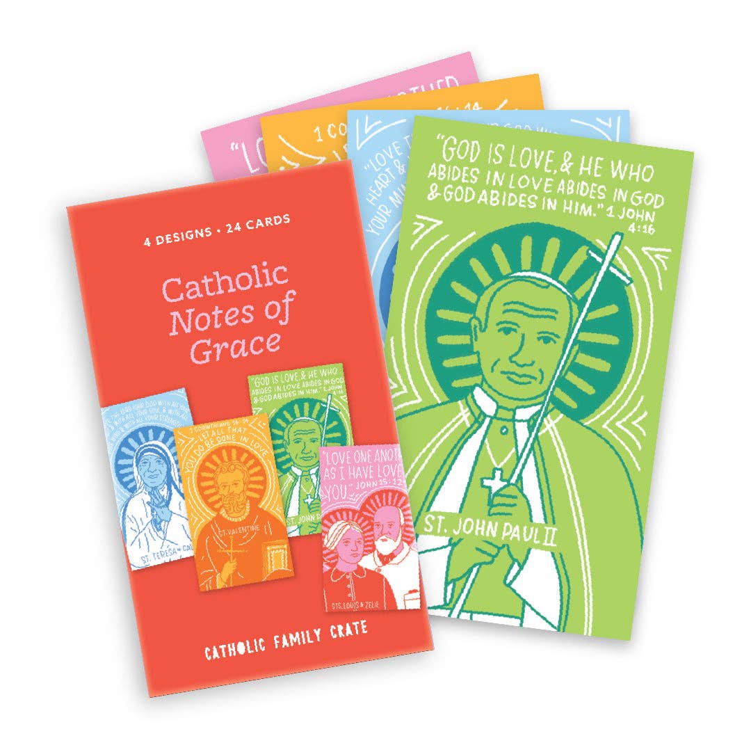 Catholic Family Crate révolutionne l'enseignement de la foi catholique aux enfants. Fondée en 2018 par une mère de 4 enfants très occupée qui essayait de trouver comment catéchiser ses enfants alors que sa propre formation de foi n'était pas très forte. Nous créons des ressources modernes, colorées et attrayantes pour enseigner la foi aux familles et inculquer l'amour de la foi catholique aux enfants. Tous nos produits sont édités théologiquement et conçus par une équipe d'experts composée de théologiens, d'écrivains, de parents, de professeurs et d'illustrateurs !