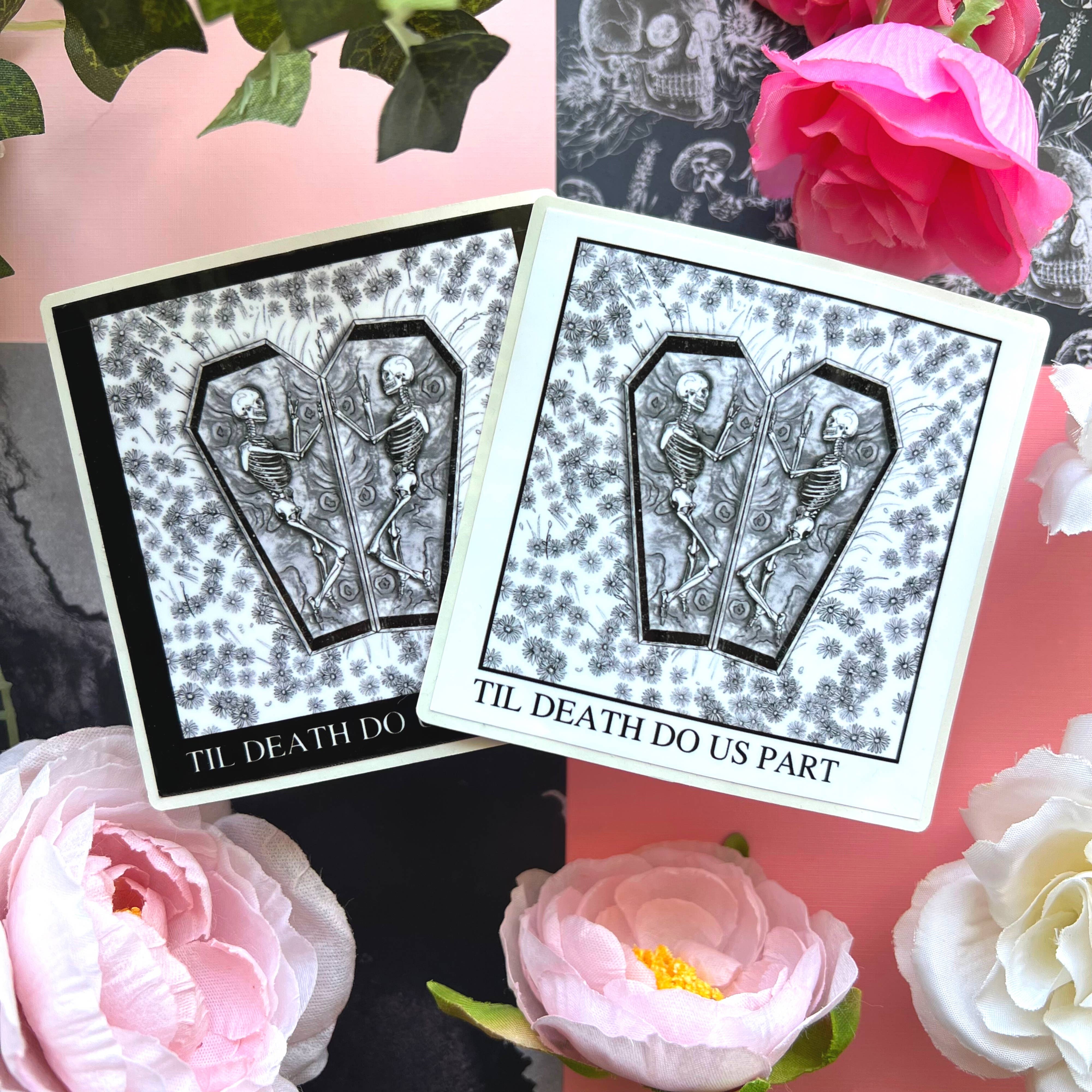 Et si je vous disais que j'ai ouvert ma boutique à cause d'un griffonnage singulier que j'avais créé au lycée sur le dinosaure ananas ? Oui, c'est exact, un dinosaure ananas. Au lycée, mon petit ami, maintenant Fiancé, a eu l'idée de créer un dinosaure, mais pas n'importe quel dinosaure. Un dinosaure qui était aussi un ananas que nous surnommons aujourd'hui Gwob. Gwob a subi quelques retouches et est maintenant un autocollant dans ma boutique. Mais c'est lui qui a lancé ma boutique. Au départ, j'allais baser toute ma boutique autour de cette idée, en ayant des dinosaures sur le thème des fruits, et en partant de là. J'ai même quelques autocollants que j'ai faits au tout début de son ancien design, mais cette idée a été mise au rebut pour ma boutique actuelle. Si vous voulez voir l'ancien Gwob, il figure actuellement sur mes cartes de remerciement. Lorsque j'ai commencé à créer des autocollants au début, je n'étais pas entièrement heureuse et je me suis retrouvée attirée par les thèmes plus sombres, ce qui a donné naissance à mon autocollant le plus vendu « Dying From Exhaustion ».
