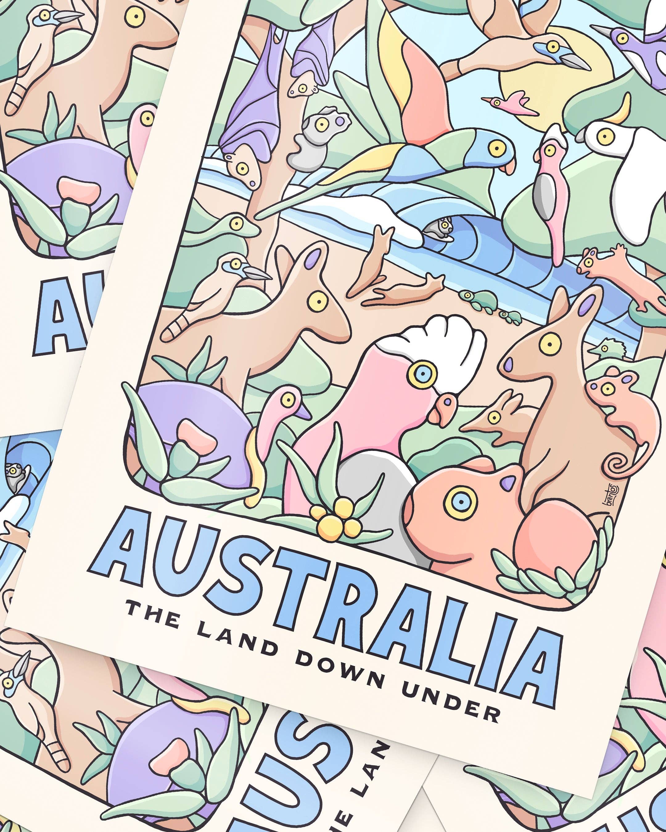 Brentos est l'artiste illustrateur australien Brent Turner et Tash Leemburg, née au Canada français. Si nous ne nous sommes pas encore rencontrés, c'est génial de vous rencontrer ! Nous peignons des fresques, illustrons des livres d'images, concevons des produits dérivés et essayons d'apporter un peu de joie au monde tout en mettant en lumière la faune australienne et le monde naturel. Les livres de Brentos se sont vendus à plus de 50 000 exemplaires en Australie et ont été présélectionnés pour plusieurs prix, notamment le CBCA New Illustrator, le CBCA Eve Pownall, le ABIA Picture Book of the Year, les Indie Book Awards et le Wilderness Society's Environment Award for Children's Literature. Son succès lui a permis de signer un contrat supplémentaire de 3 livres avec l'éditeur Affirm Press. Nous avons collaboré avec de nombreuses marques australiennes et internationales renommées pour leurs produits de qualité, leurs valeurs fortes et leur engagement à améliorer le monde. Notre liste de partenaires de collaboration inclut : Peter Alexander, Coopers Brewery, World Surf League, Surfing Australia, Greenpeace, WIRES, Hallmark, Reddit, Crocs, Sydney Wildlife Rescue, Buckettys, Envoy Foundation et plus encore.