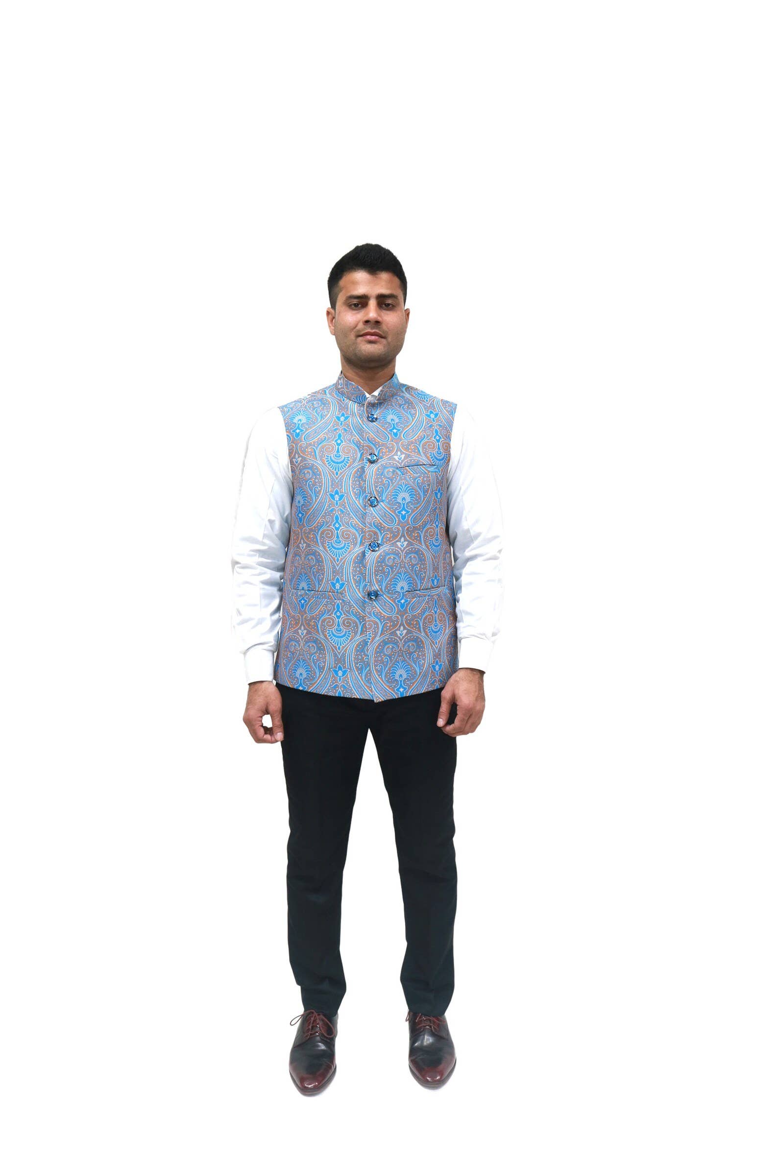 Nous sommes fabricants, grossistes, designers exportateurs ainsi que détaillants de vêtements pour hommes de haute qualité. Notre spécialisation réside dans les vêtements de créateurs personnalisés de haute qualité pour hommes. Que ce soit pour un moment très spécial comme un mariage, des fiançailles ou pour assister à une cérémonie, une fête ou toute autre occasion particulière. Ce qui nous rend uniques, c'est que nous avons tout sous un même toit, que ce soit la fabrication de tissus, la broderie, la couture, la finition et l'emballage. Nous sommes l'un des fabricants très uniques au monde à avoir ce type d'installation, mais même après cela, vous pouvez commander une seule pièce ou une grande quantité selon vos besoins chez nous. Vous pouvez demander des catalogues de tissus ou des échantillons. Nous fournissons des services pour créer des marques, approvisionnement pour les designers, magasins, institutions, etc. En somme, nous sommes une solution unique pour tous vos besoins en matière de vêtements pour hommes.