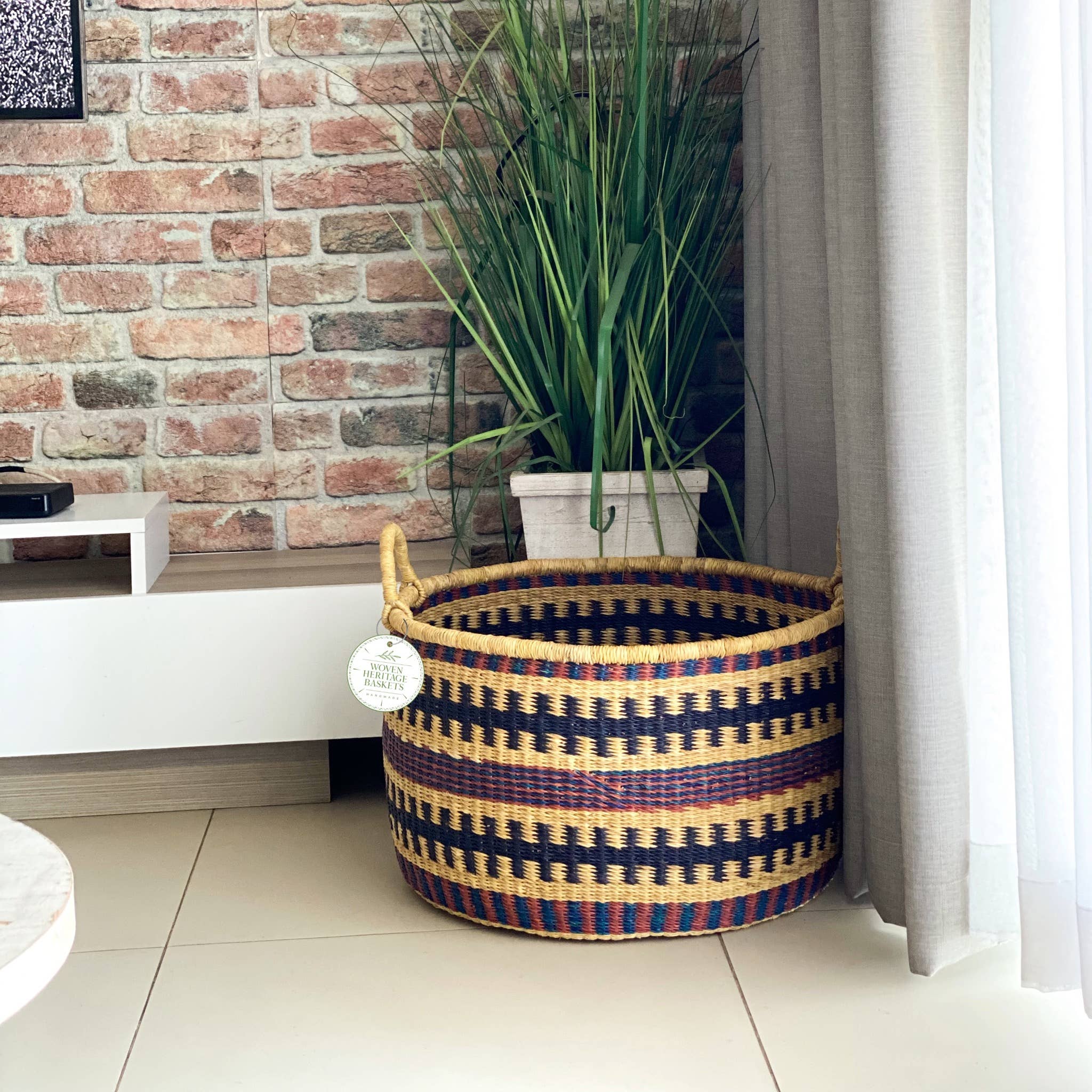 « Là où la nature rencontre l'artisanat, la beauté rencontre le but. » Woven Heritage Baskets est né d'une vision : partager la beauté des produits faits à la main tout en faisant une différence significative dans la vie des artisans qui les fabriquent. Notre voyage a commencé à Bolgatanga, au Ghana, où nous avons été inspirés par l'incroyable talent des tisserands locaux, des artisans qui fabriquent des paniers magnifiques et uniques en herbe à éléphant depuis des générations. Leur travail reflète non seulement leur talent, mais également le riche patrimoine culturel qu'ils ont préservé grâce à leur métier. Chaque panier que nous proposons est tissé à la main à partir d'herbe à éléphant biologique, naturellement durable et écologique, et teint avec des colorants traditionnels à base de plantes. Chaque pièce est unique en son genre, met en valeur la touche personnelle de l'artisan et est conçue pour durer jusqu'à trente ans, alliant parfaitement fonctionnalité et talent artistique.