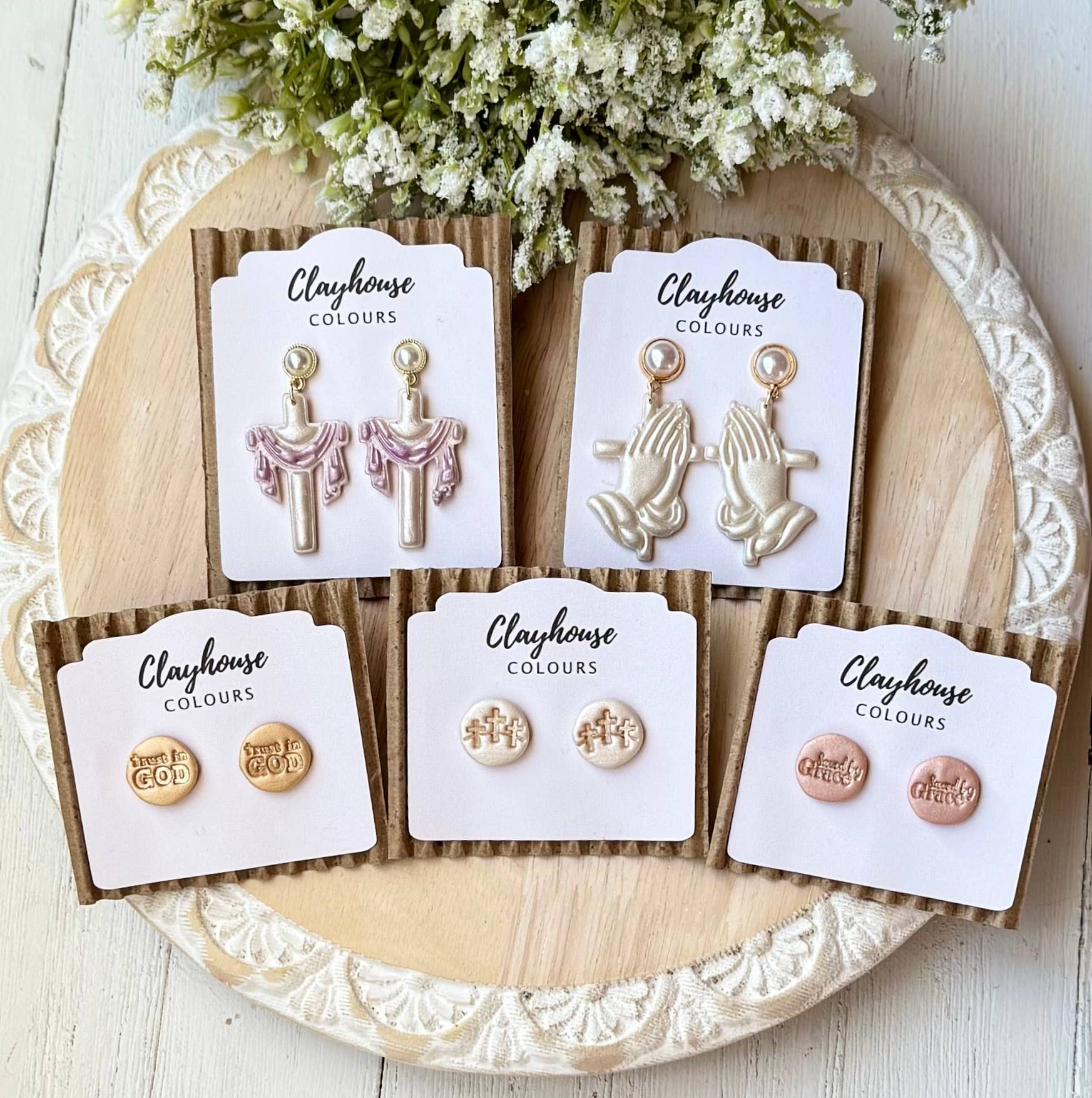 Clayhouse Colours est une entreprise éclectique de bijoux en argile faite pour les gens de tous les horizons de la vie. Clayhouse Colours crée des boucles d'oreilles uniques en argile en petits lots. Chaque pièce est conçue et lente par Kellie Woodard, avec la valeur fondamentale de l'artisanat accessible et de haute qualité dans chaque design. L'inspiration de Kellie provient des formes architecturales modernes et des textures ainsi que des palettes de couleurs naturelles. Chaque pièce est conçue, mélangée, sculptée, cuite, poncée et emballée à la main avec le plus grand amour et la pensée. Tous les bijoux sont créés par Kellie à Lumberton, Texas. Clayhouse Colours crée des boucles d'oreilles uniques en argile en petits lots. Toutes les boucles d'oreilles sont fabriquées à la main avec de l'argile polymère de haute qualité.