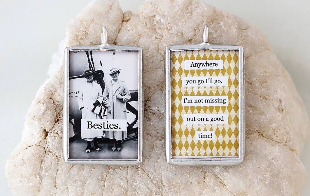 Bienvenue ! Je crée et fabrique à la main des breloques porteuses de messages positifs et édifiants. Ils sont vendus individuellement et destinés à être mélangés et assortis dans différentes combinaisons. Il existe plusieurs styles différents, et comme Faire ne propose pas de catégories spécifiques pour les breloques, vous les trouverez organisées un peu différemment. Toutes nos breloques sont destinées à être portées comme des colliers, mais vous les trouverez classées par style dans des rubriques qui ne vous vont pas tout à fait, comme les boucles d'oreilles et les bracelets. Si vous avez des questions, n'hésitez pas à m'envoyer un message ! Chaque bijou est conçu et fabriqué à la main dans mon studio du Minnesota, en utilisant du verre recyclé et recyclé et du papier vintage. J'en fais beaucoup moi-même, mais j'ai aussi une petite équipe de mères au foyer de ma petite communauté qui m'aident. Ils sont géniaux et je ne pourrais pas le faire sans eux. Nos charmes reposent sur la créativité, la connexion et la célébration de ce qui est unique en vous.