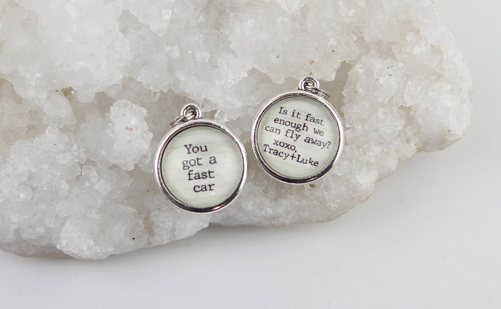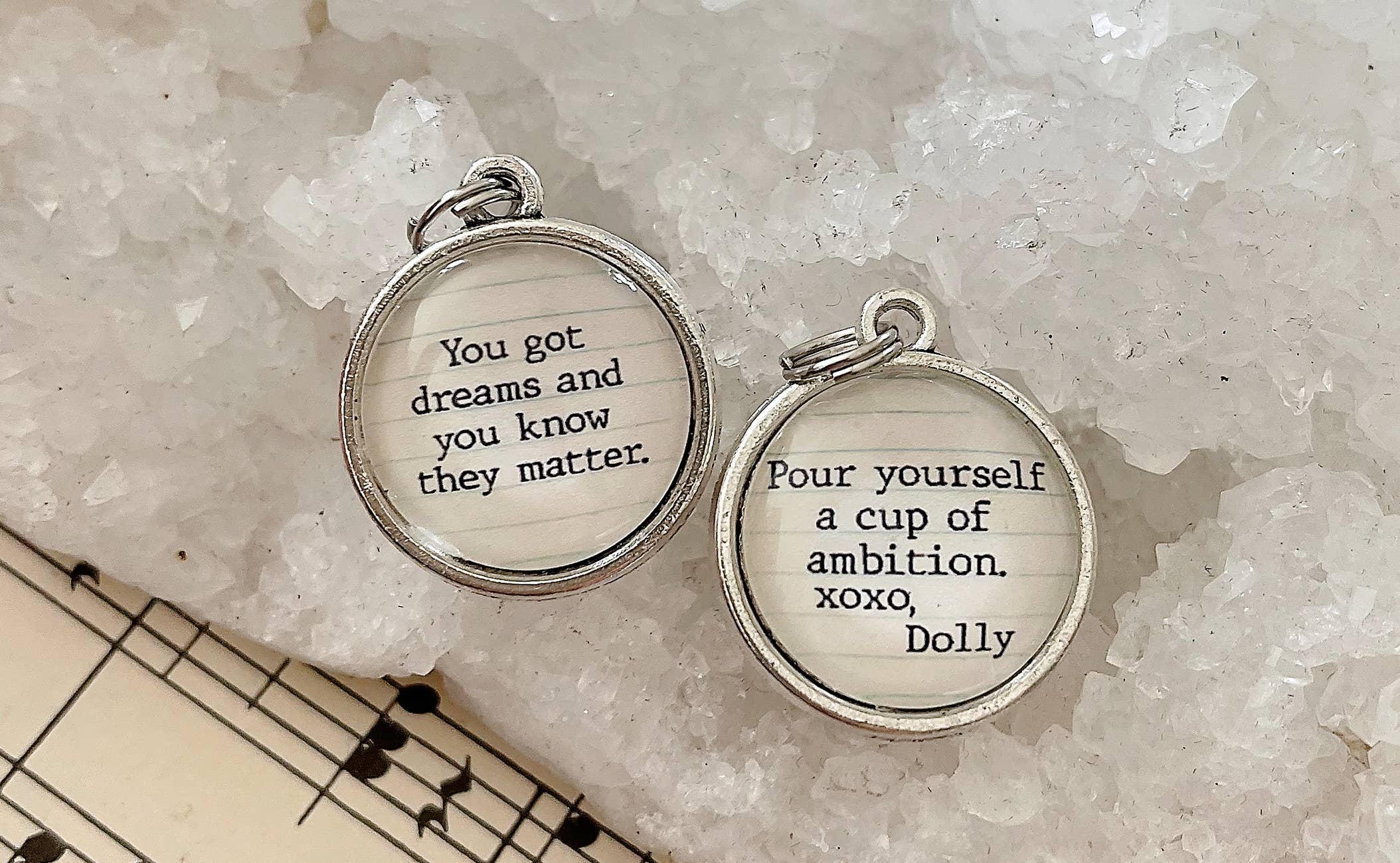 Bienvenue ! Je crée et fabrique à la main des breloques porteuses de messages positifs et édifiants. Ils sont vendus individuellement et destinés à être mélangés et assortis dans différentes combinaisons. Il existe plusieurs styles différents, et comme Faire ne propose pas de catégories spécifiques pour les breloques, vous les trouverez organisées un peu différemment. Toutes nos breloques sont destinées à être portées comme des colliers, mais vous les trouverez classées par style dans des rubriques qui ne vous vont pas tout à fait, comme les boucles d'oreilles et les bracelets. Si vous avez des questions, n'hésitez pas à m'envoyer un message ! Chaque bijou est conçu et fabriqué à la main dans mon studio du Minnesota, en utilisant du verre recyclé et recyclé et du papier vintage. J'en fais beaucoup moi-même, mais j'ai aussi une petite équipe de mères au foyer de ma petite communauté qui m'aident. Ils sont géniaux et je ne pourrais pas le faire sans eux. Nos charmes reposent sur la créativité, la connexion et la célébration de ce qui est unique en vous.