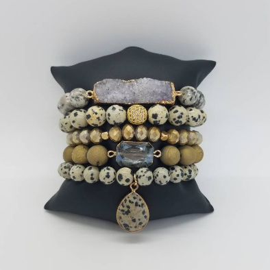 Bonjour, je m'appelle Alexis Rose et je suis propriétaire et fondateur de Elle Brands. J'ai fondé Elle Brands pour explorer mon côté créatif. Tout a commencé par un voyage à mon magasin d'artisanat local AC Moore. J'ai passé quelques heures à parcourir les allées pour décider quelles perles je voulais travailler et quels matériaux j'avais besoin. J'adore travailler avec la pierre parce que la nature est si captivante et belle. Cela nous rappelle que nous sommes beaux dans notre état naturel. Je me souviens de la vidéo qui appelait ma mère parce que j'étais tellement excitée et j'adore tout partager avec elle. Une majorité des designs que vous verrez sont inspirés par ma mère et les autres femmes incroyables de ma vie. Si vous me connaissez, vous savez que j'ai un grand cœur, donc un pourcentage de toutes les commandes est donné à une organisation caritative à la fin de chaque mois.