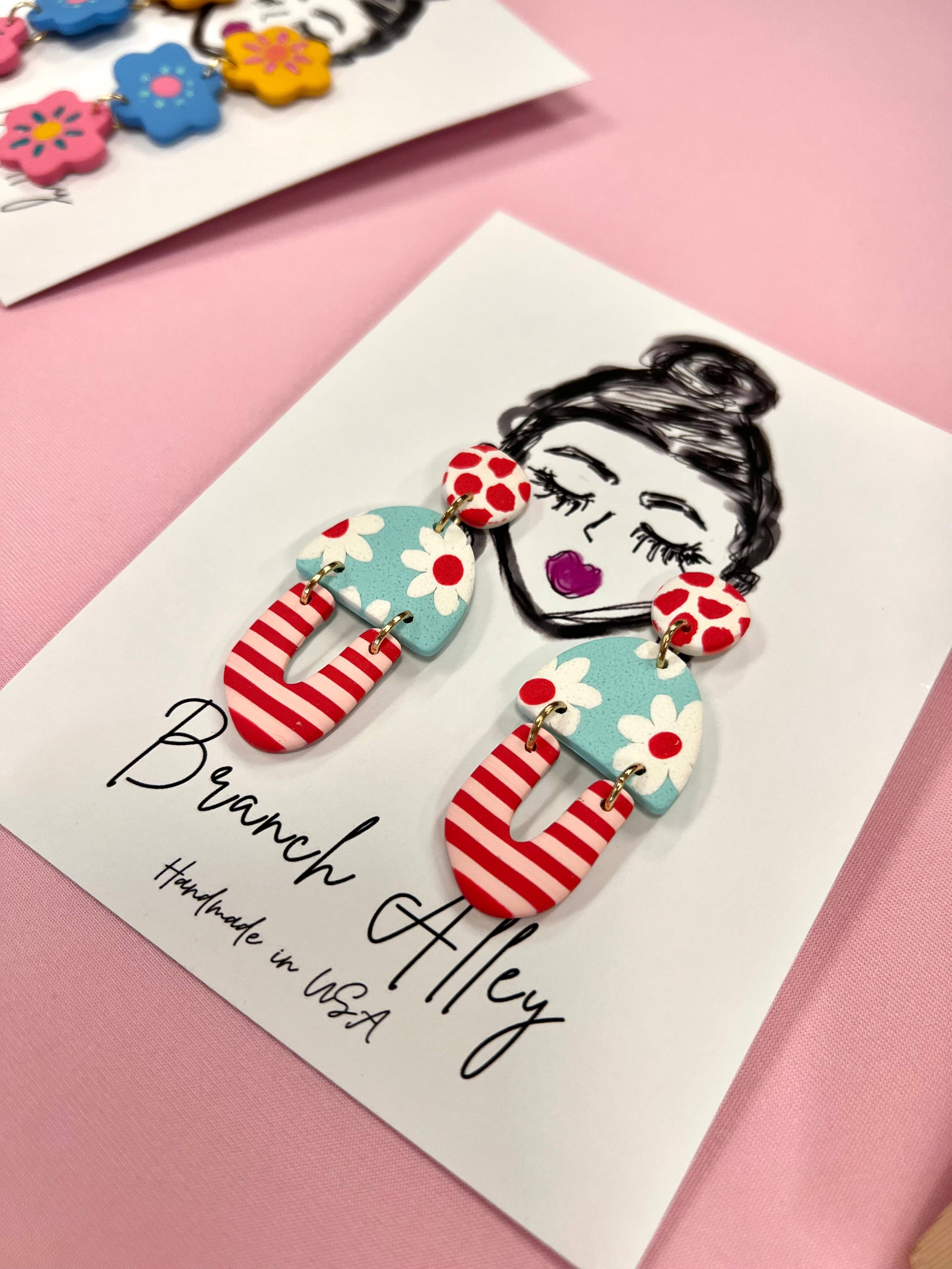 « Des tenues pour tes oreilles. » Est. 2018. Branch Alley est mon nom et faire des boucles d'oreilles, c'est mon jeu. Si vous souhaitez ajouter à votre look magnifique ou pimenter votre tenue unie, vous pouvez trouver une boucle d'oreille pour cela ici. Entièrement fabriquées à la main à partir d'argile et d'autres matières premières, mes boucles d'oreilles sont de petites œuvres d'art créées par un processus de fabrication lent et en petits lots. Tous les poteaux sont en acier inoxydable chirurgical et les autres accessoires tels que les crochets sont plaqués or et toujours exempts de nickel. Branch Alley est un one-woman show de la mère célibataire de 4, Cherish Wright, qui a créé son entreprise à partir d"un coin de sa petite maison de ville en fabriquant des boucles d"oreilles amusantes pour égayer ses yeux fatigués et son chignon maman. (Toujours considéré comme un joyau caché car il n'a pas encore assisté à un salon professionnel)