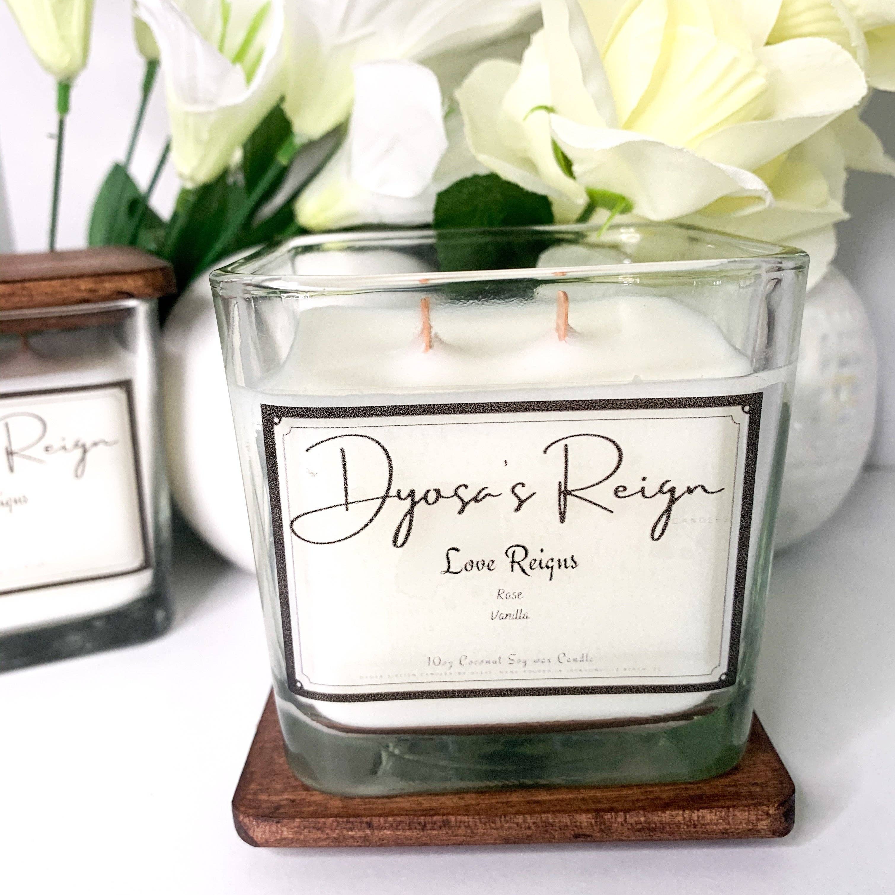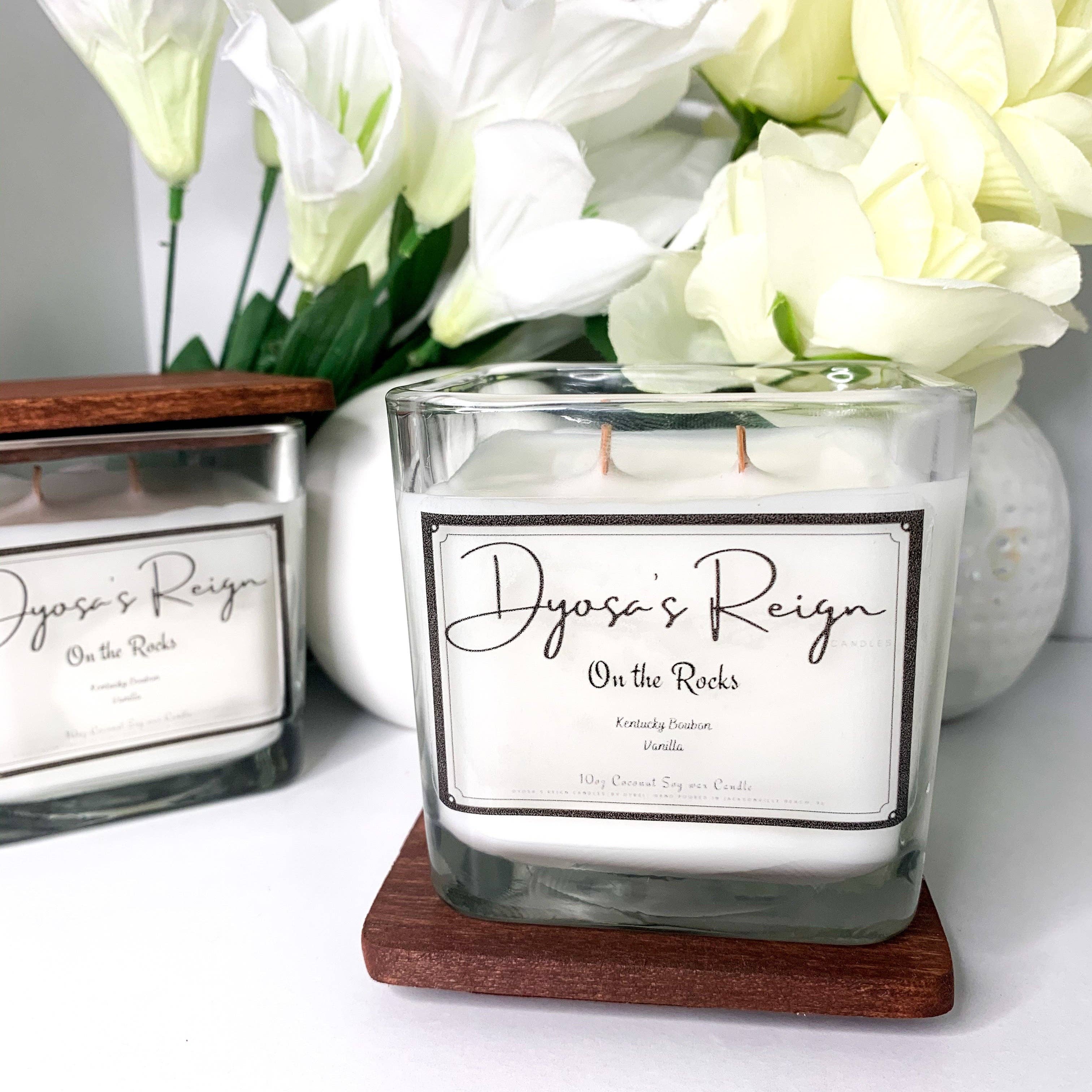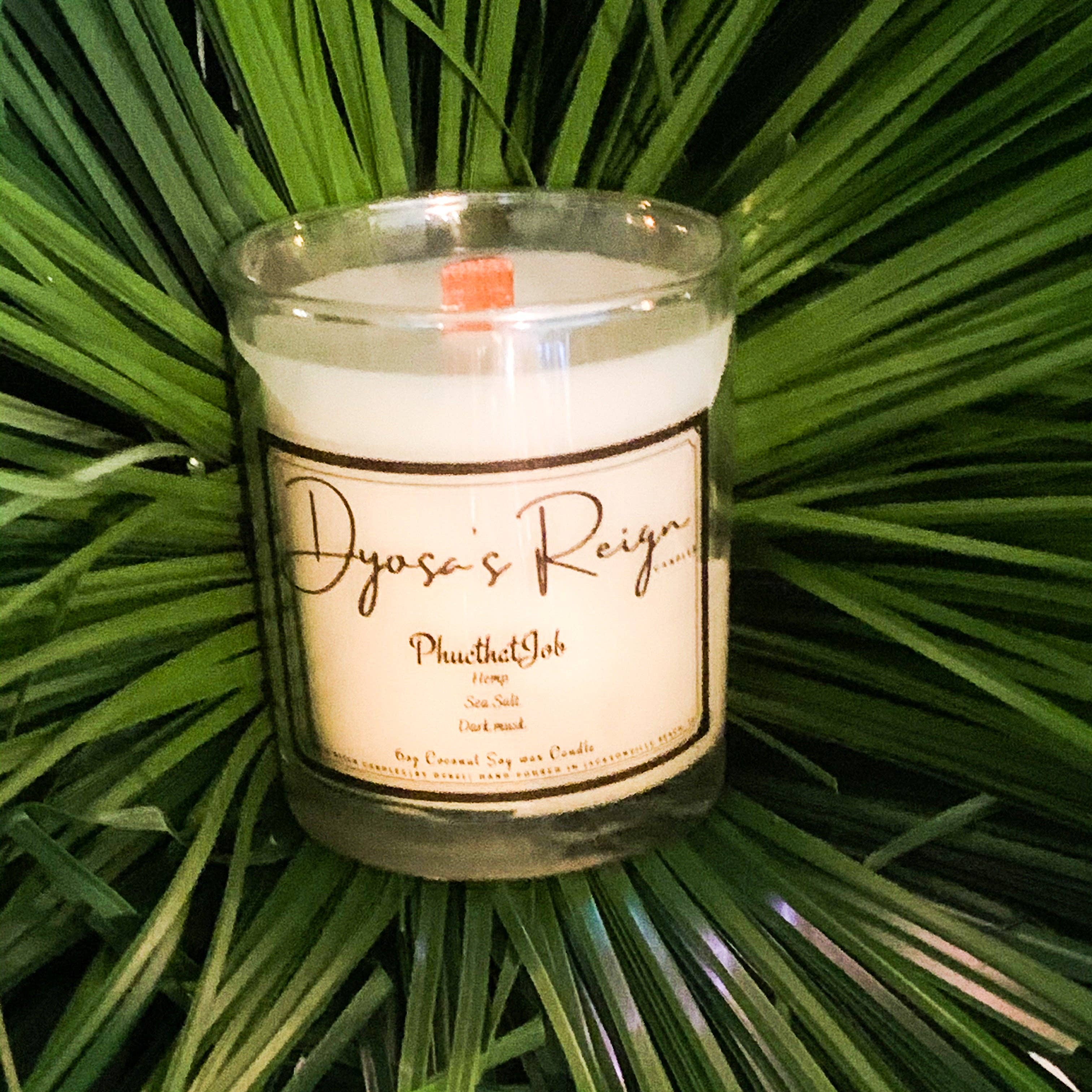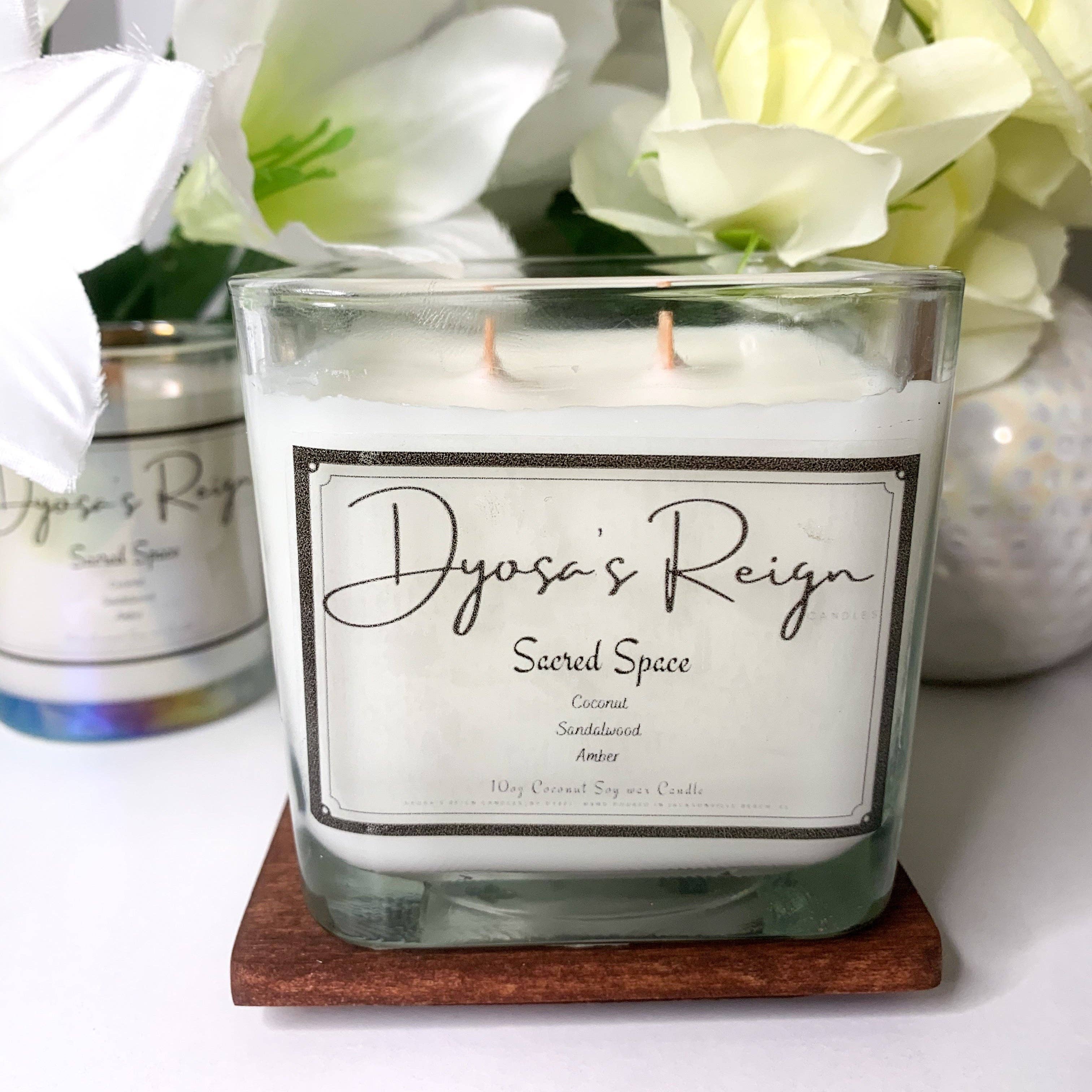 Bienvenue chez Dyosa's Reign Candles Nos bougies sont fabriquées avec un luxueux mélange exclusif de cires naturelles de noix de coco, de soja et de noix de coco de première qualité. Chaque bougie est végétalienne, sans toxine ni parabène et spécialement formulée avec des mélanges d'huiles parfumées sans phtalates qui rempliront votre espace de parfums aromatiques propres et brûlants. Un moyen écologique de contrôler l'énergie autour de vous à tout moment. Nos mélanges aromatiques sans toxines associés à une ambiance de cheminée de mèches de bois crépitantes font succomber l'énergie de vos espaces sacrés à votre volonté. C'est une ambiance. C'est ton ambiance. Contrôle-le.