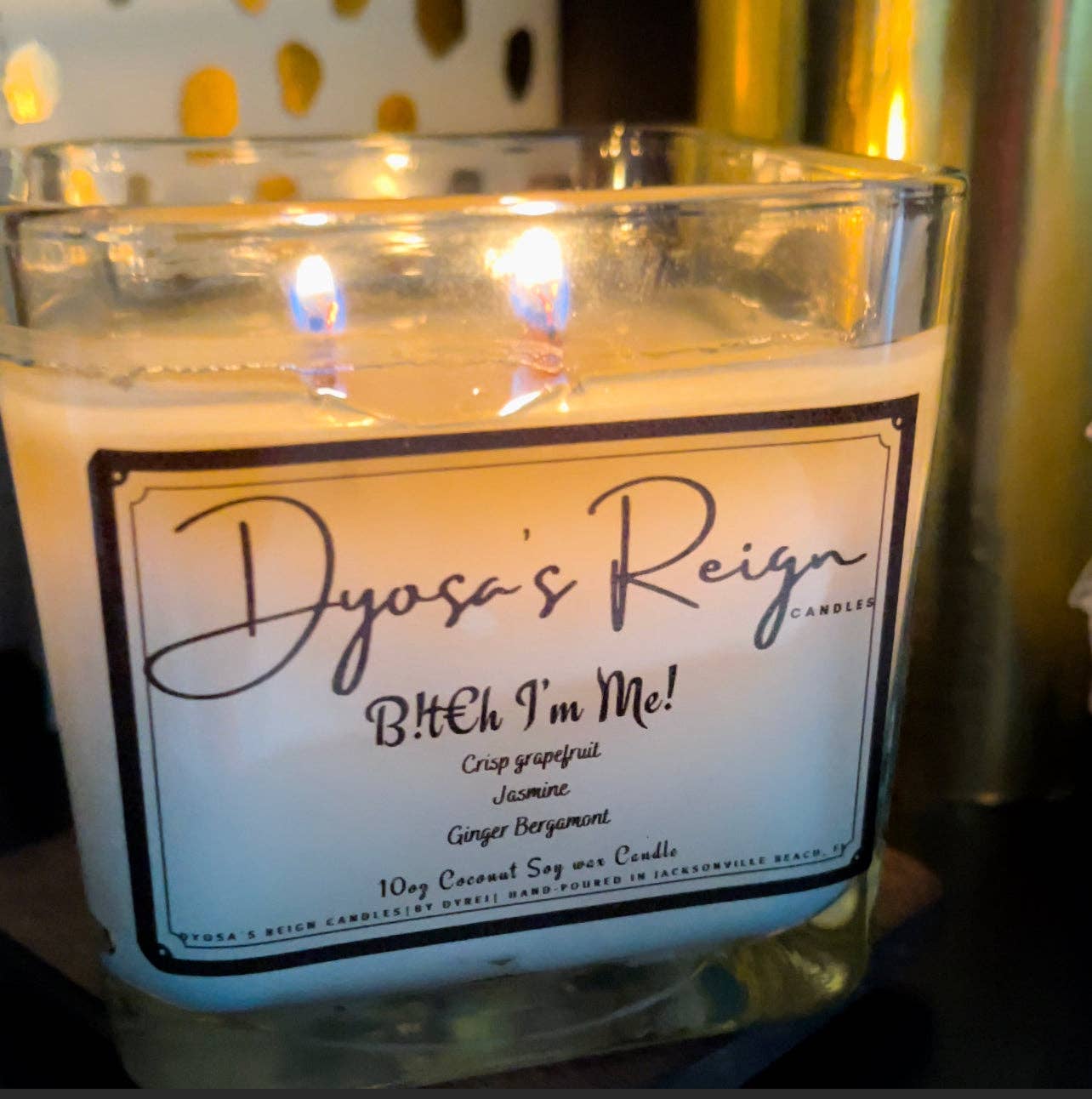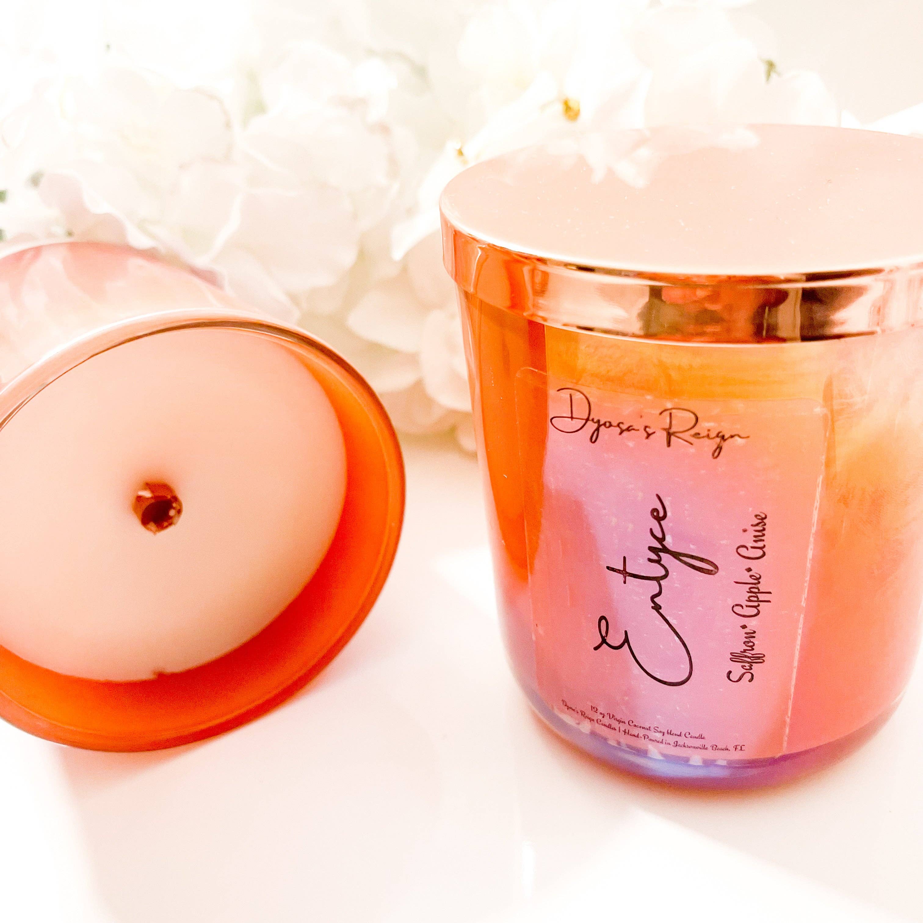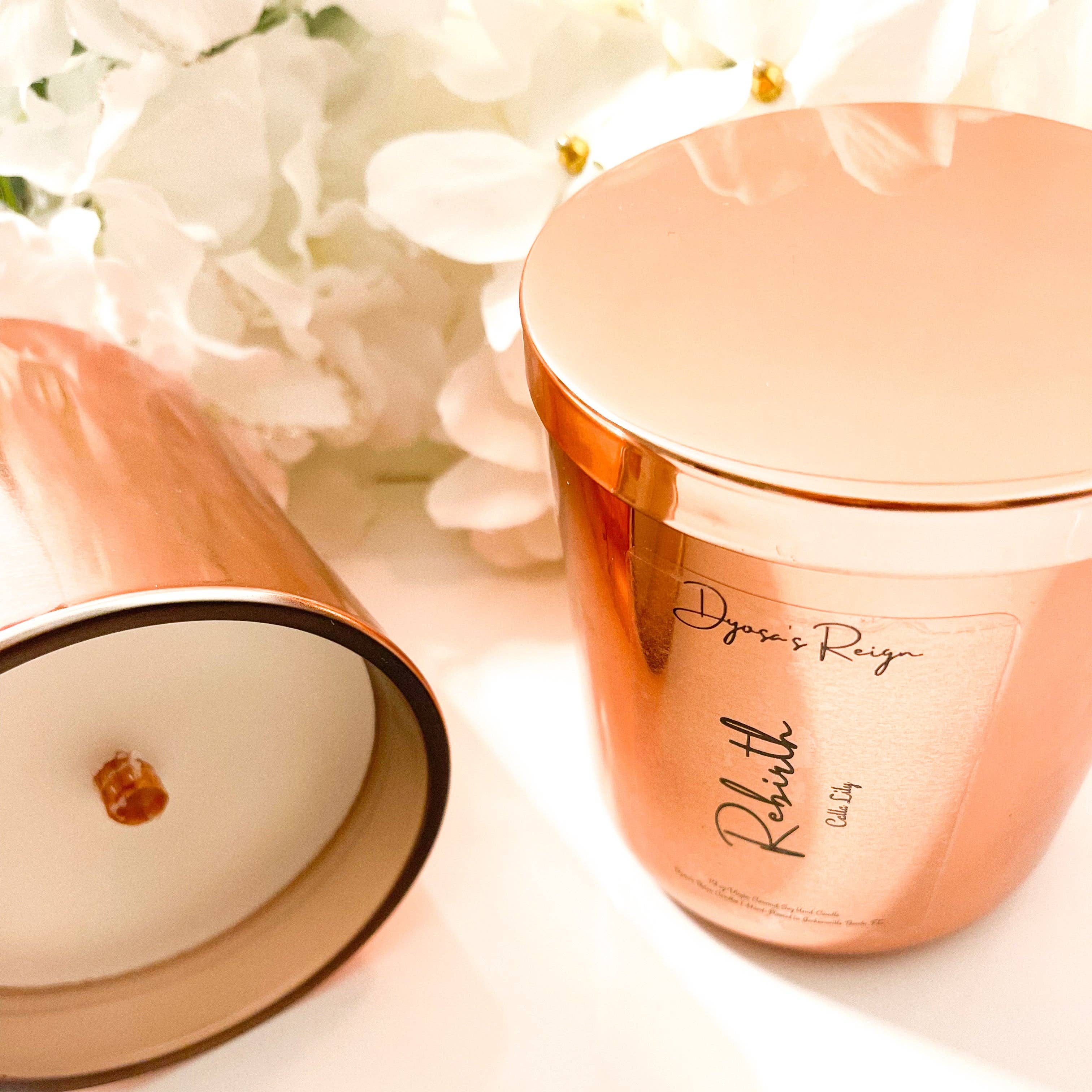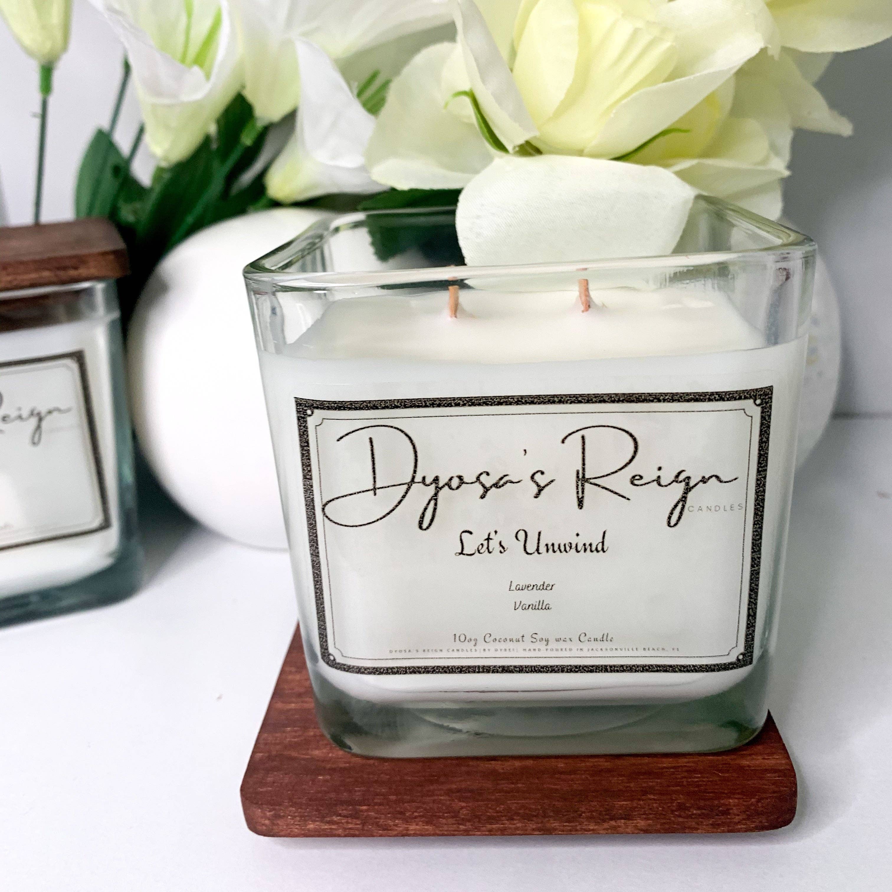 Bienvenue chez Dyosa's Reign Candles Nos bougies sont fabriquées avec un luxueux mélange exclusif de cires naturelles de noix de coco, de soja et de noix de coco de première qualité. Chaque bougie est végétalienne, sans toxine ni parabène et spécialement formulée avec des mélanges d'huiles parfumées sans phtalates qui rempliront votre espace de parfums aromatiques propres et brûlants. Un moyen écologique de contrôler l'énergie autour de vous à tout moment. Nos mélanges aromatiques sans toxines associés à une ambiance de cheminée de mèches de bois crépitantes font succomber l'énergie de vos espaces sacrés à votre volonté. C'est une ambiance. C'est ton ambiance. Contrôle-le.