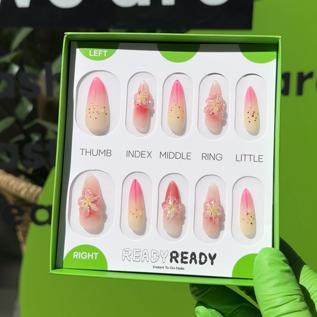 We are READY READY, le premier et le seul magasin Press on Nail situé au cœur du quartier de SoHo, au 223 Mott St, à New York. READY READY offre les ongles les plus pratiques, les plus simples et les plus sains à tous les acteurs du marché. Au cours de l'hiver 2024 à New York, READY READY a collaboré avec Bibhu Mohapatra et a montré comment READY READY associe mode, rapidité et qualité de premier ordre pour des ongles instantanés. Au cours du S/S NYFW 2024, READY READY a collaboré avec Momcozy, une marque mondiale de confiance pour les mères et les bébés, et a montré comment le fait d'appuyer sur les ongles pouvait être le moyen le plus simple et le plus sain pour les mères de se faire les ongles. Nous sommes reconnus mondialement par Vogue, NYFW et Red. Nous sommes spécialisés non seulement dans notre propre marque, mais également dans la production privée et en marque blanche. Nos produits sont les meilleurs de l'industrie, chaque ongle étant fabriqué à la main pour donner l'aspect le plus naturel qui soit. Nous offrons un service complet allant de l'emballage à la conception, en passant par la sélection des produits et l'expédition directe chez vous !