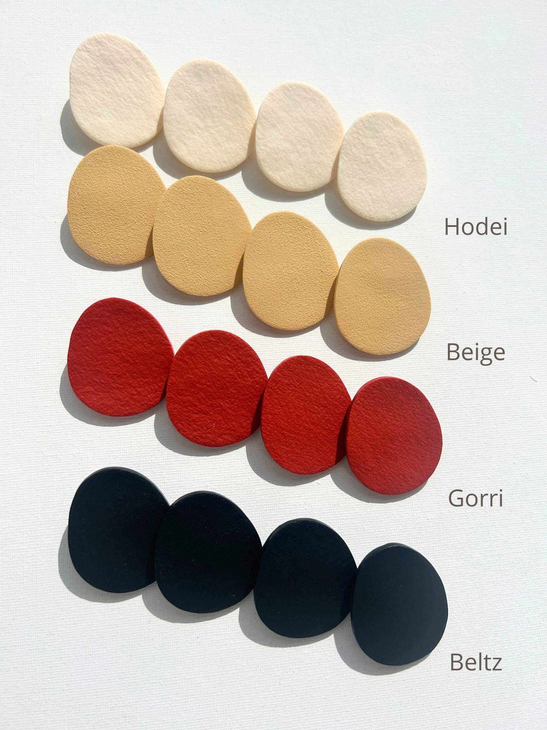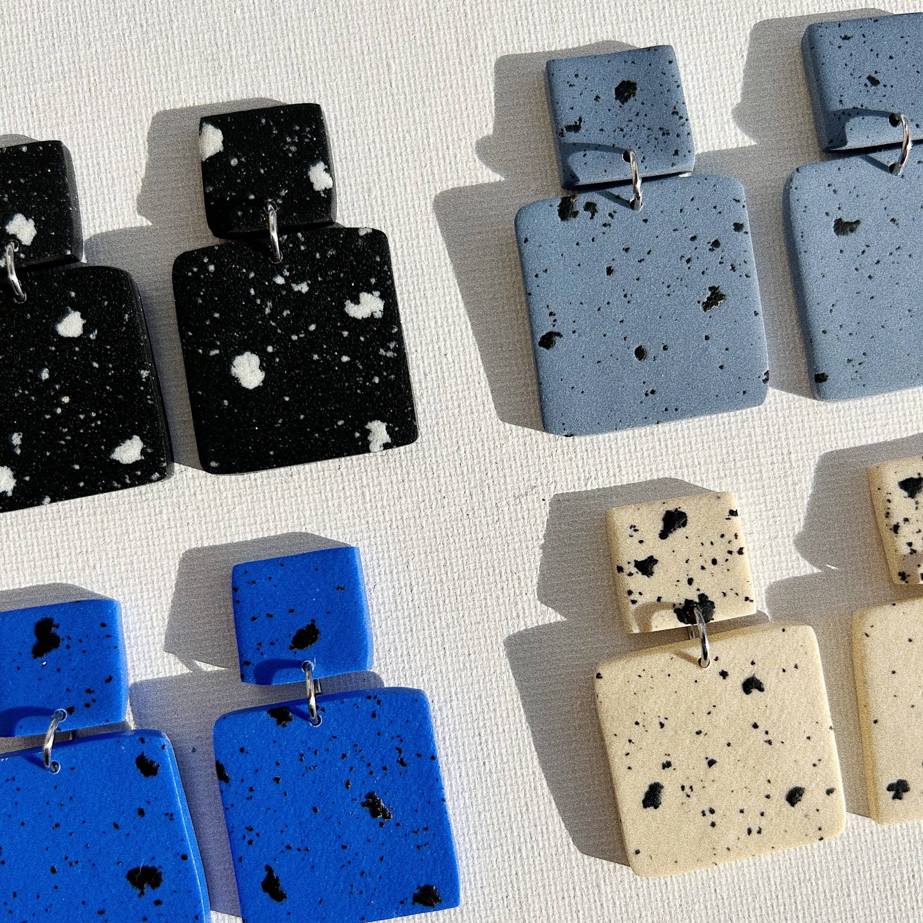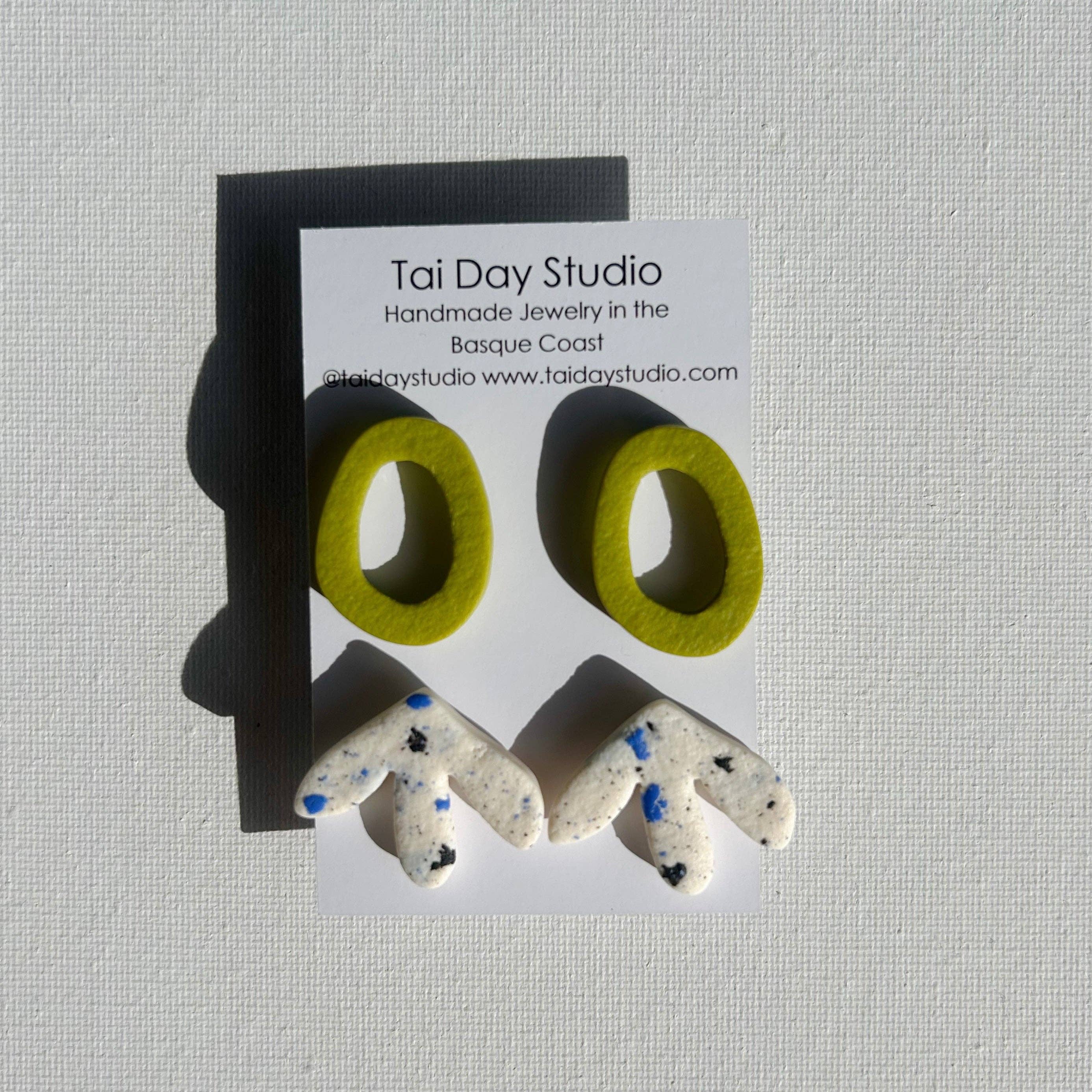 Il n'y a pas deux pièces TaiDay identiques et ces variations font de chaque pièce une pièce originale. Ces bijoux sont fabriqués dans un petit atelier de Saint-Sébastien avec des matériaux hypoallergéniques. Les pièces d'argile polymère nécessitent un long processus pour obtenir le résultat. Chaque couleur est mélangée et pigmentée individuellement en studio avant que les formes ne soient découpées et sculptées. À partir de là, il est cuit en petites quantités jusqu'à ce que les pièces soient complètement durcies pour obtenir un état permanent durable et légèrement flexible. Une fois refroidie, chaque pièce passe par un processus de finition qui peut inclure plusieurs cycles de ponçage, de polissage, de scellage et de perçage. Enfin, les composants finis sont assemblés pour créer des pièces originales fabriquées à la main de manière unique.