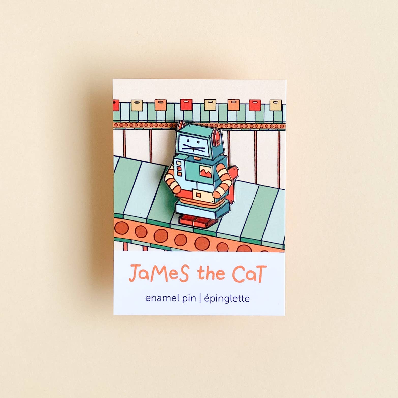 James est un chat de dessin animé adorablement effronté qui a été créé dans le but de faire sourire les autres et d'apporter un peu plus de joie au monde. L'idée de James est née un matin après que notre chat adoré, Midnight, ait retiré notre réveil de notre table de chevet. Profondément inspirés par notre compagnon à quatre pattes, nous avons décidé de créer une gamme complète de produits James the Cat, pour faire rire les amoureux des animaux du monde entier. Vous pouvez le trouver sous forme d'épingles en émail, d'autocollants et même sur des marque-pages, prêt à éblouir tout le monde avec son charme et son esprit.