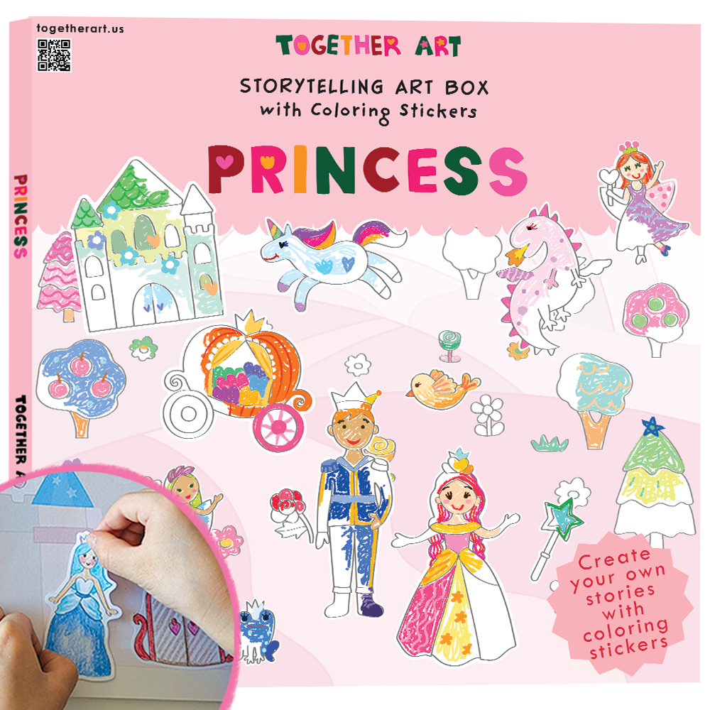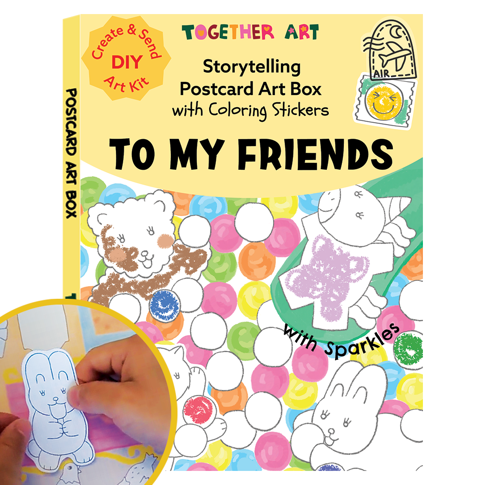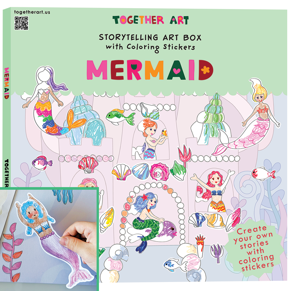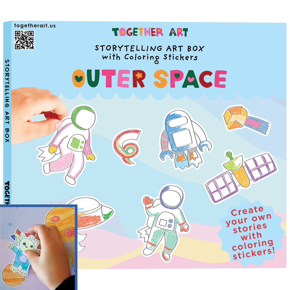 Together Art a été créé par l'artiste et maman Yeon, qui conçoit et illustre chaque kit avec soin et cœur. L'idée est née lorsqu'elle a vu ses deux filles colorier des autocollants sans beaucoup de sens—juste en remplissant des formes. C'est alors qu'elle a réalisé : et s'il existait un moyen pour les enfants non seulement de colorier, mais aussi de créer leurs propres histoires ? Avec cette inspiration—et beaucoup d'amour—Yeon a mis tout son cœur à créer quelque chose de spécial. Chaque kit Together Art comprend des autocollants à colorier et un fond assorti conçu pour stimuler l'imagination. Les enfants colorient les autocollants, puis les placent sur la scène thématique pour construire un monde qui leur est entièrement propre. À travers la simple joie de colorier et de raconter des histoires, les enfants sont invités à exprimer leur créativité et leur imagination. En donnant vie à leurs propres idées, ils ressentent la fierté de raconter une histoire qui leur est unique. Et pour nous ? Il n'y a rien de plus significatif que d'entendre les histoires magiques et uniques qui viennent directement du cœur d'un enfant.