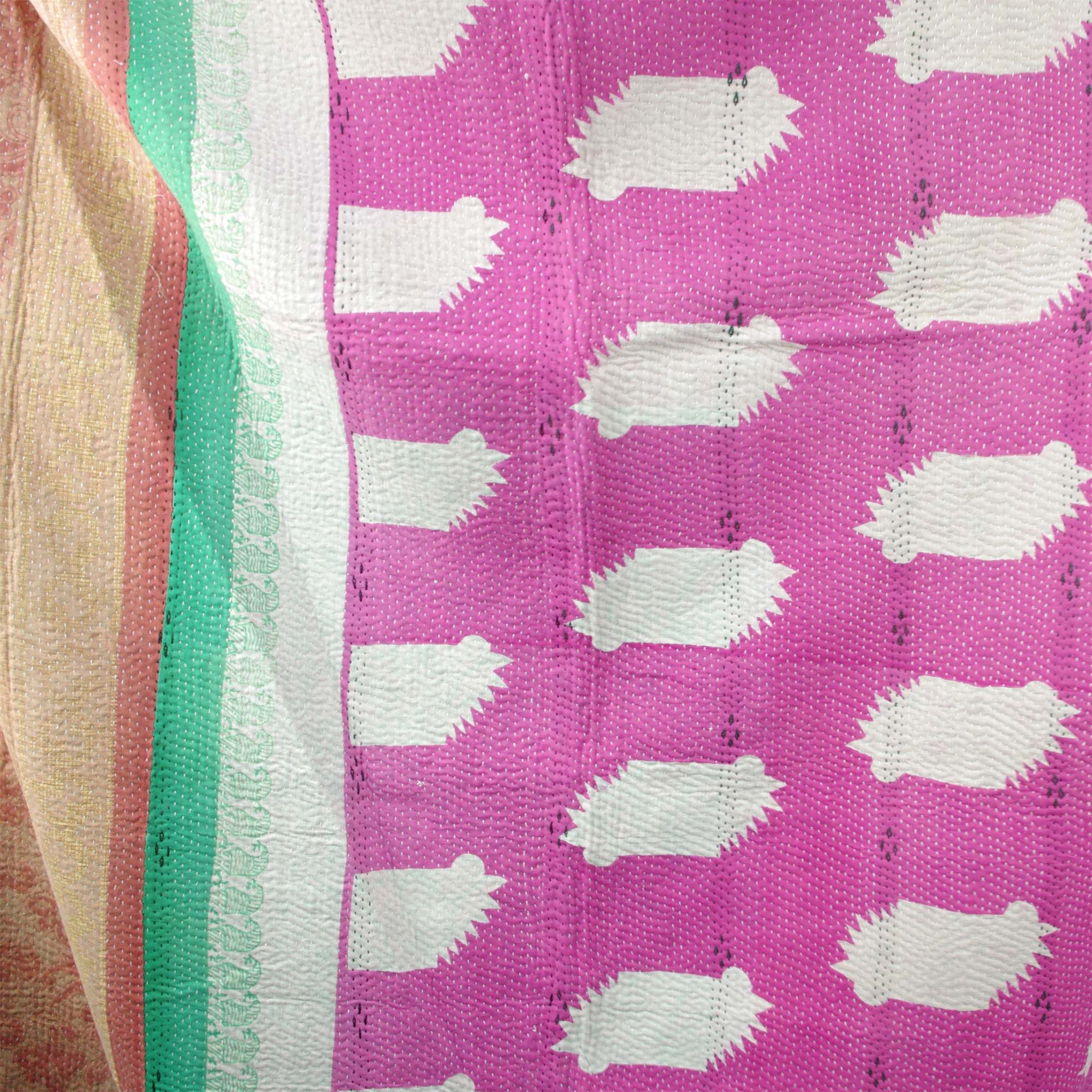 Nous sommes la maison de magnifiques couettes et jetés en coton authentiques, de tissus imprimés à la main, provenant de manière éthique d'artisans indiens passionnés. Nous apportons la beauté des textiles asiatiques d'est en ouest, vous permettant de participer à l'expérience du luxe simple dont nos ancêtres jouissent depuis des siècles. Notre gamme comprend des pièces qui ont été fabriquées à la main conformément à la coutume de la courtepointe Kantha, en utilisant des méthodes traditionnelles de broderie à la main, d'impression en bloc et de recyclage de matériaux préaimés. Le résultat est une superbe collection de couvre-lits Kantha faits à la main, de couvre-lits indiens et de couvertures en patchwork en soie ou en 100% coton.