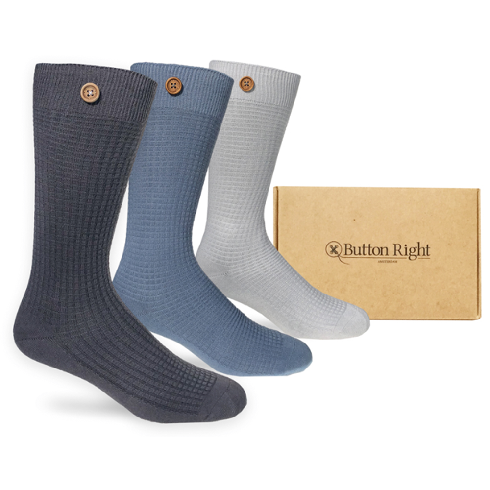 Des chaussettes tendance qui restent ensemble pour toujours, car elles sont bien boutonnées. Toutes les chaussettes sont livrées dans des coffrets cadeaux en kraft biologique non blanchi. Un cadeau parfait à ajouter à votre collection. Un besoin fondamental pour chaque homme. Ces chaussettes sont fabriquées en coton de la plus haute qualité, pas trop courtes et très douces... Boutonnez vos chaussettes ensemble avant de les mettre à la lessive et elles resteront ensemble pour toujours ! Les chaussettes assorties, c'est du passé;) Orteils liés, donc pas de coutures gênantes. Orteil et talon renforcés pour éviter l'usure. Ces chaussettes sont « Just Right ! »