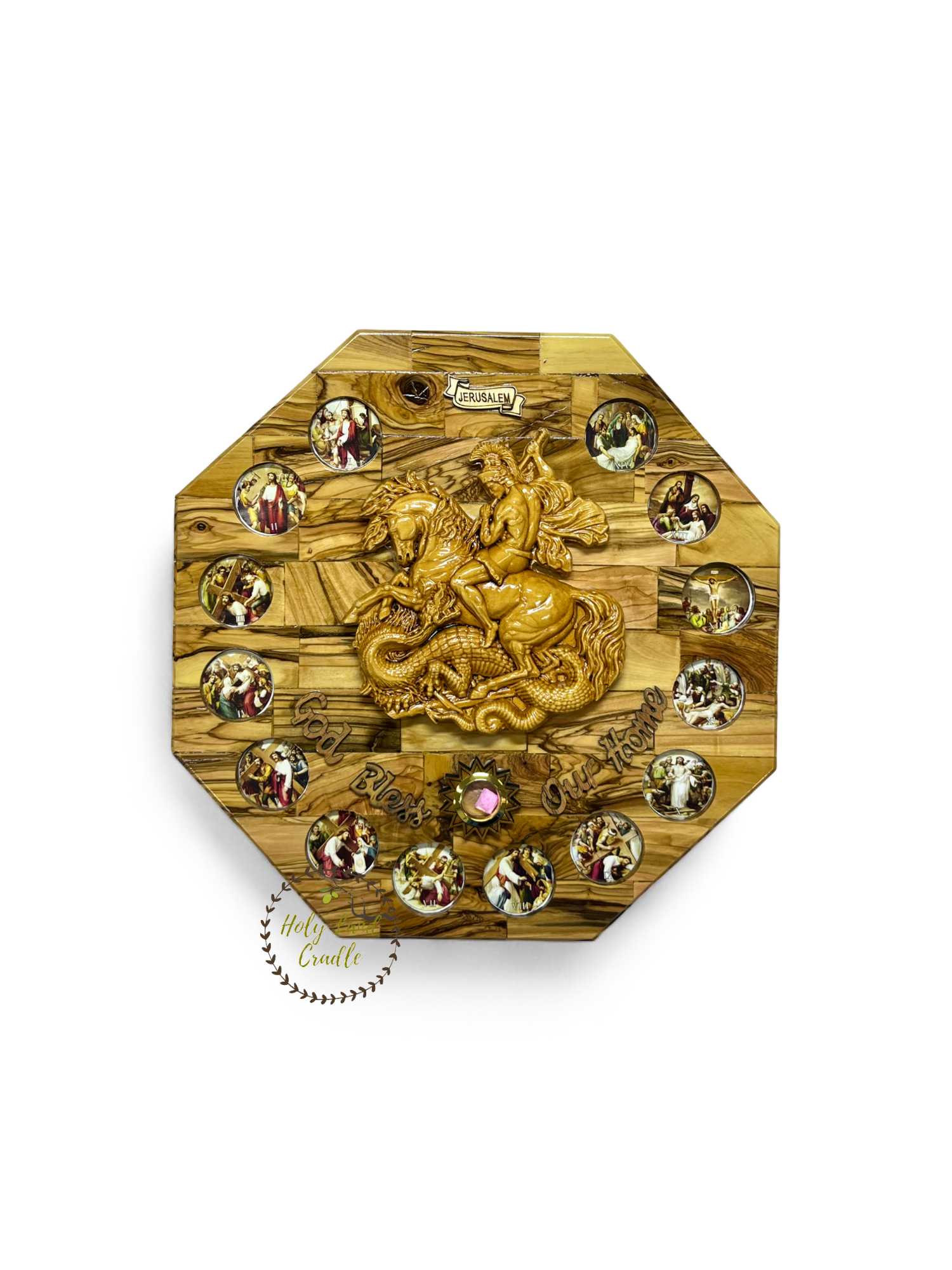 Chez Holy Land Cradle, nous sommes fiers et enthousiastes de l'opportunité de proposer nos produits artisanaux fabriqués à partir des oliviers sacrés de Bethléem, en Terre Sainte. Nos produits artisanaux sont fabriqués selon un processus respectueux de l'environnement dans lequel aucun arbre n'est endommagé. L'artisanat est l'expression de notre histoire, de notre culture et de notre héritage chrétiens transmis de génération en génération. J'ai acquis des compétences artisanales en travaillant dans l'atelier familial depuis mon enfance, en appréciant la façon dont un tronc en bois d'olivier commence à se transformer en une figure précieuse entre nos mains. Ces objets artisanaux ne sont pas dominés par les hommes mais sont fabriqués par des artisans de tous les sexes et de tous les âges. J'ai récemment émigré aux États-Unis et j'ai découvert qu'il y avait un grand amour pour ces objets artisanaux qui peuvent vous être livrés depuis les États-Unis ou la Terre Sainte,