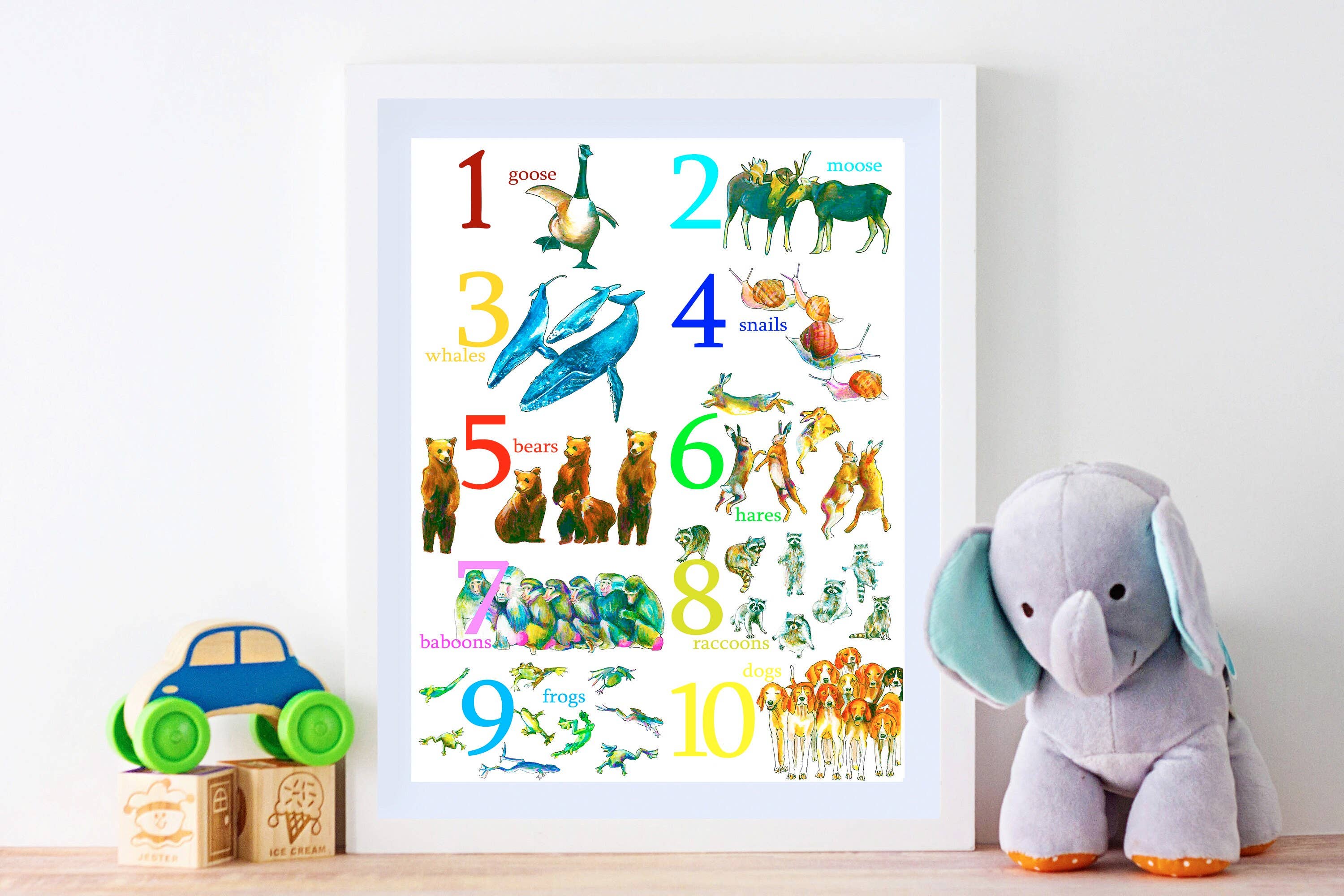 Nous sommes là pour vous aider à faire un excellent cadeau. Que ce soit pour les nouveaux parents, les enfants ou tous ceux qui aiment les animaux et la langue anglaise, de 0 à 99 ans. Parce qu'en remplissant leurs murs de véritables œuvres d'art, de vrais animaux, de mots, de chiffres, les supports pédagogiques stimulent la soif de connaissances en rendant l'apprentissage magnifique. Ce n'est pas simplement un cadeau... qui encourage un style de vie axé sur l'apprentissage... et cela n'a pas de prix. Chaque fois qu'ils le regarderont, ils penseront à vous et à l'amour que vous avez manifesté en achetant ce magnifique cadeau. Ce sera sur leurs murs pendant des années, pas à la fin d'un match nul. Bravo à vous !