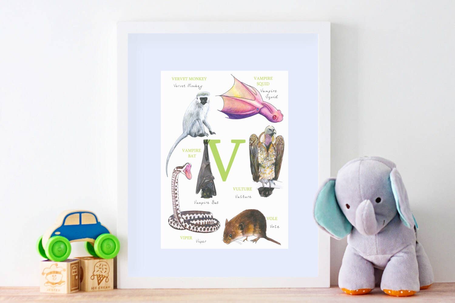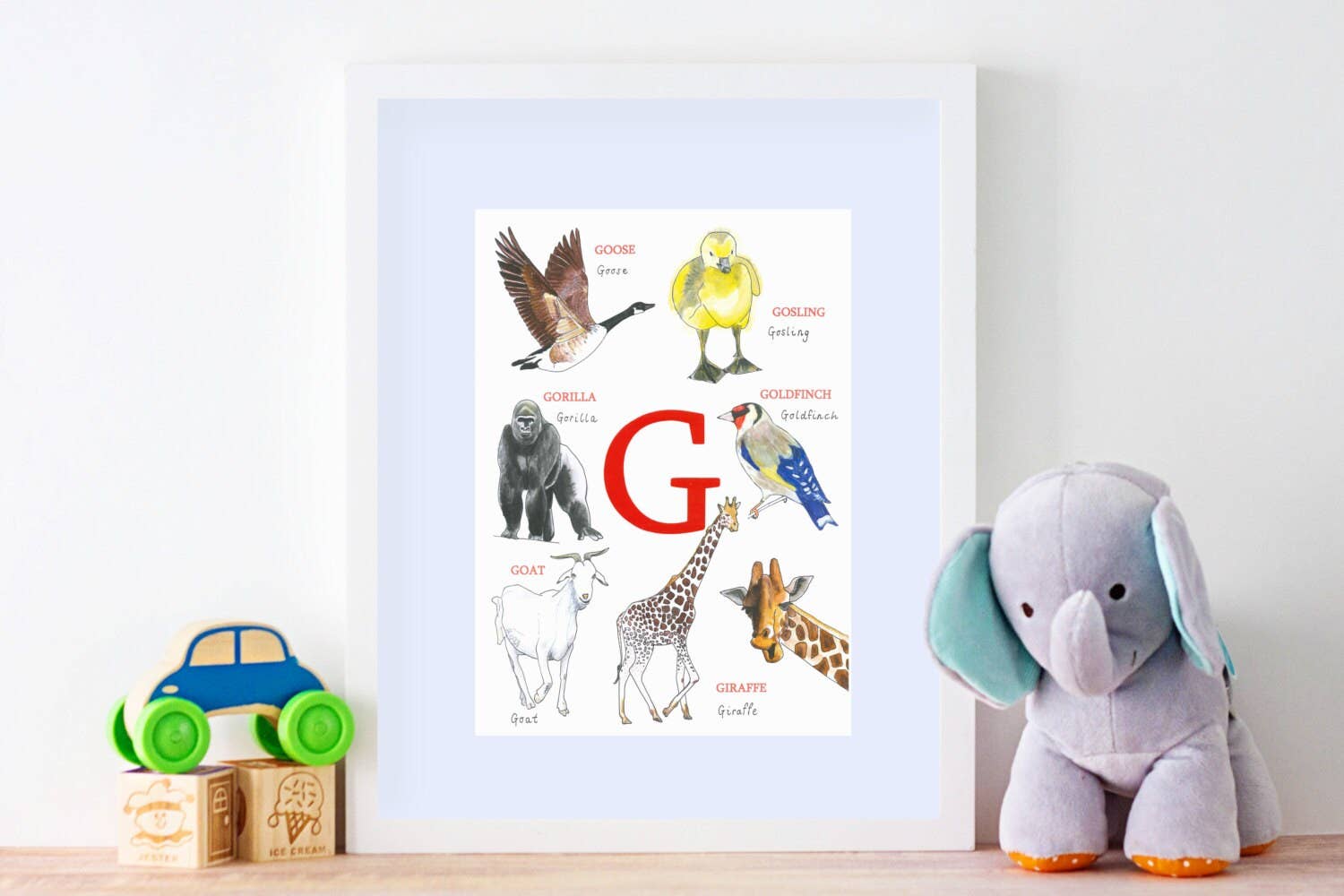 Nous sommes là pour vous aider à faire un excellent cadeau. Que ce soit pour les nouveaux parents, les enfants ou tous ceux qui aiment les animaux et la langue anglaise, de 0 à 99 ans. Parce qu'en remplissant leurs murs de véritables œuvres d'art, de vrais animaux, de mots, de chiffres, les supports pédagogiques stimulent la soif de connaissances en rendant l'apprentissage magnifique. Ce n'est pas simplement un cadeau... qui encourage un style de vie axé sur l'apprentissage... et cela n'a pas de prix. Chaque fois qu'ils le regarderont, ils penseront à vous et à l'amour que vous avez manifesté en achetant ce magnifique cadeau. Ce sera sur leurs murs pendant des années, pas à la fin d'un match nul. Bravo à vous !