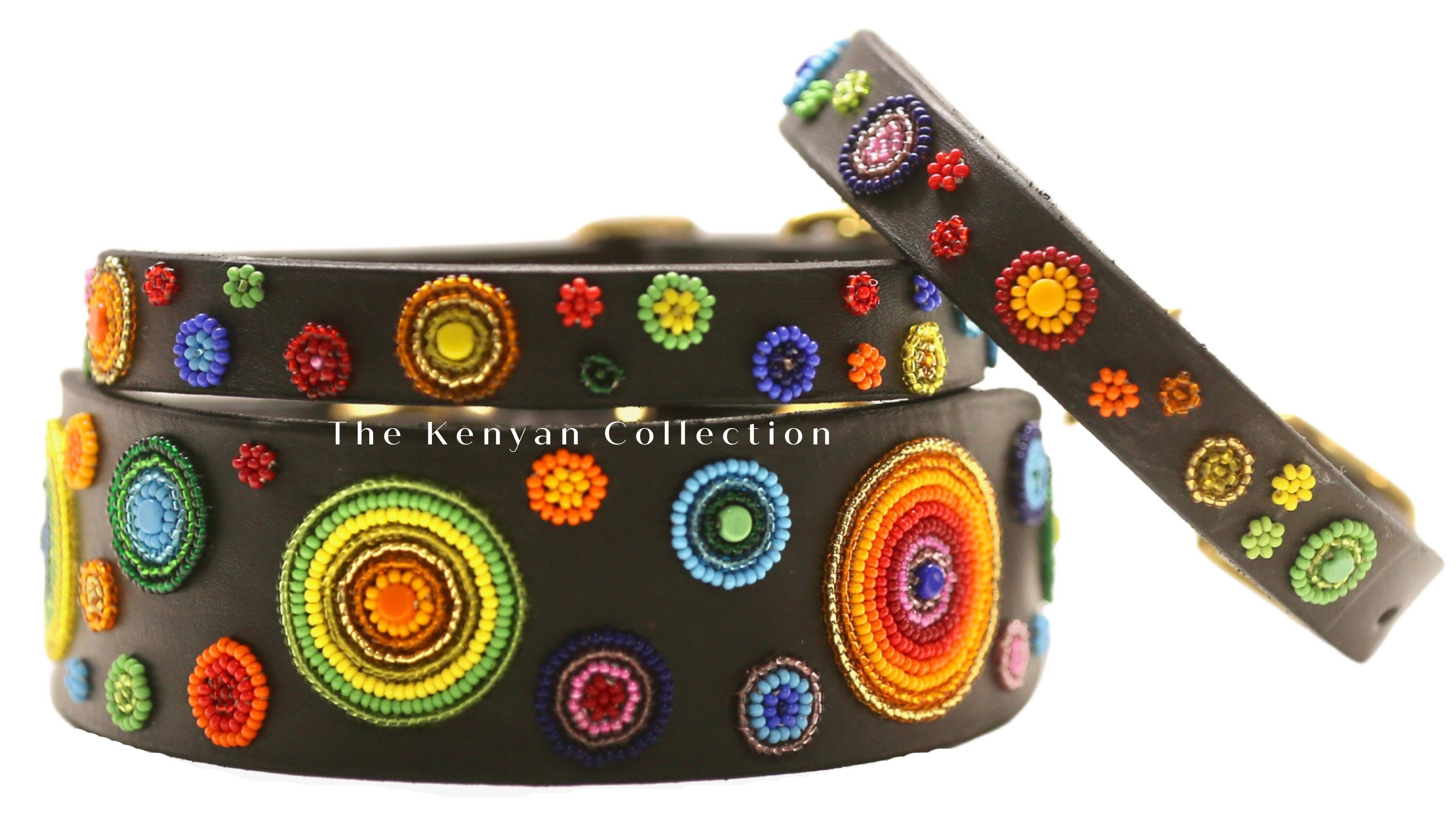 Tous les produits sont faits à la main par les mamas de la tribu Maasaï du Kenya. Nous avons actuellement 37 mamas qui travaillent exclusivement pour le CTK. Ils ont été triés sur le volet pour leur art, leur cohérence et leur qualité. Les produits comprennent des colliers et des laisses pour chiens, des ceintures et des bandeaux.