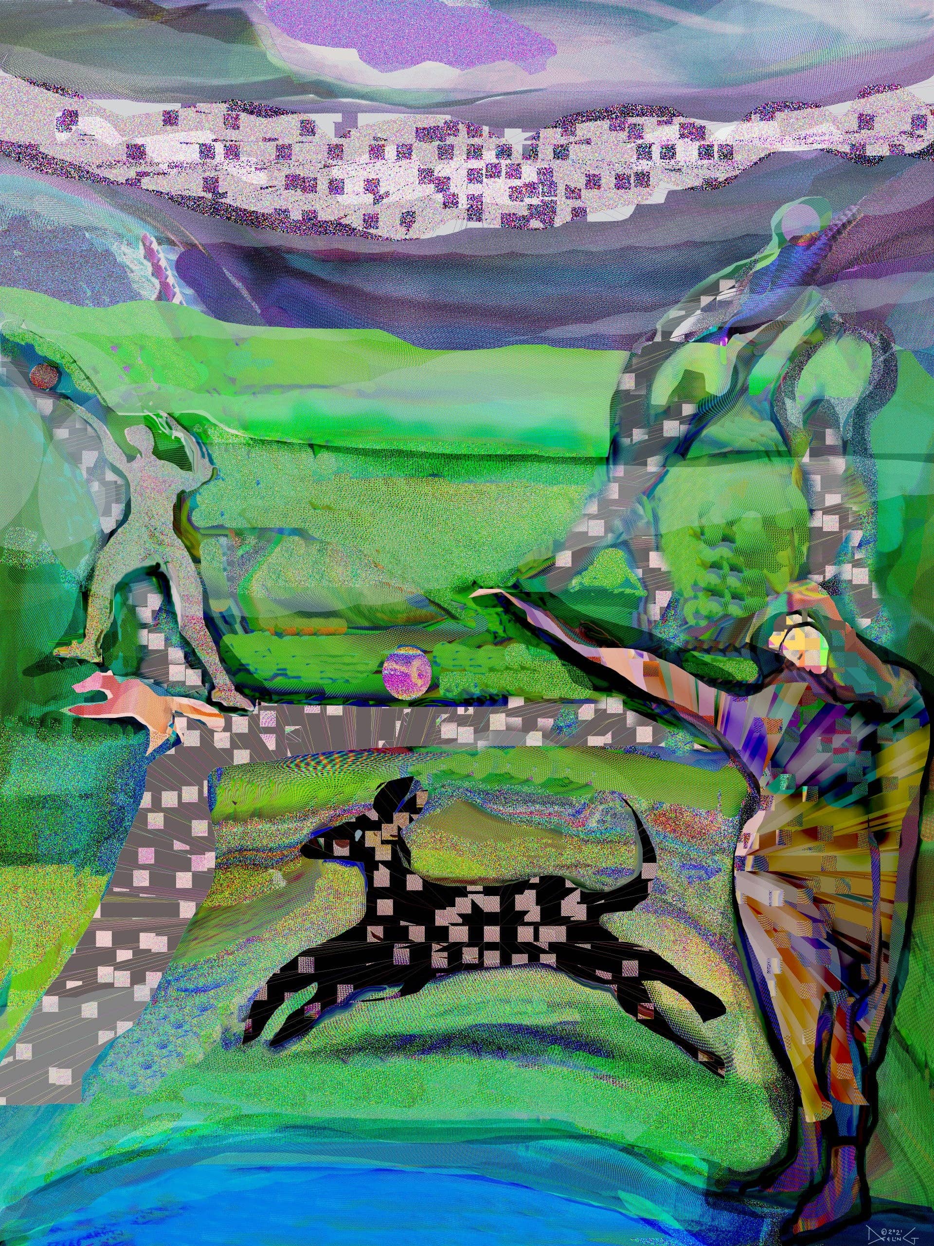 L'art de Deeling C. Gregory, née à Hawaï, est aussi éclectique qu'elle le fait depuis de nombreuses décennies. Qu'il s'agisse de peintures murales publiques à grande échelle représentant ses buffles « bubble-o » ou de mixages abstraits numériques presque quotidiens (lancés en 2015), une grande partie de son travail s'oriente vers le surréaliste. Après avoir étudié les mathématiques à Stanford, elle est devenue accro à l'art depuis que sa sœur l'a encouragée à suivre un cours de dessin figuratif. Elle a voyagé en Europe, a terminé ses études à Stanford et a fréquenté le San Francisco Art Institute. Deeling crée dans son studio du Montana, près d'un avant-poste nucléaire au cœur d'un ranch et d'une zone agricole essentiellement ruraux. Elle s'inspire d'une enfance enchantée en tant que cinquième enfant de parents chinois et grecs, d'un séjour de trente ans dans la région de la baie de San Francisco et de l'environnement austère mais magnifique de sa maison actuelle.
