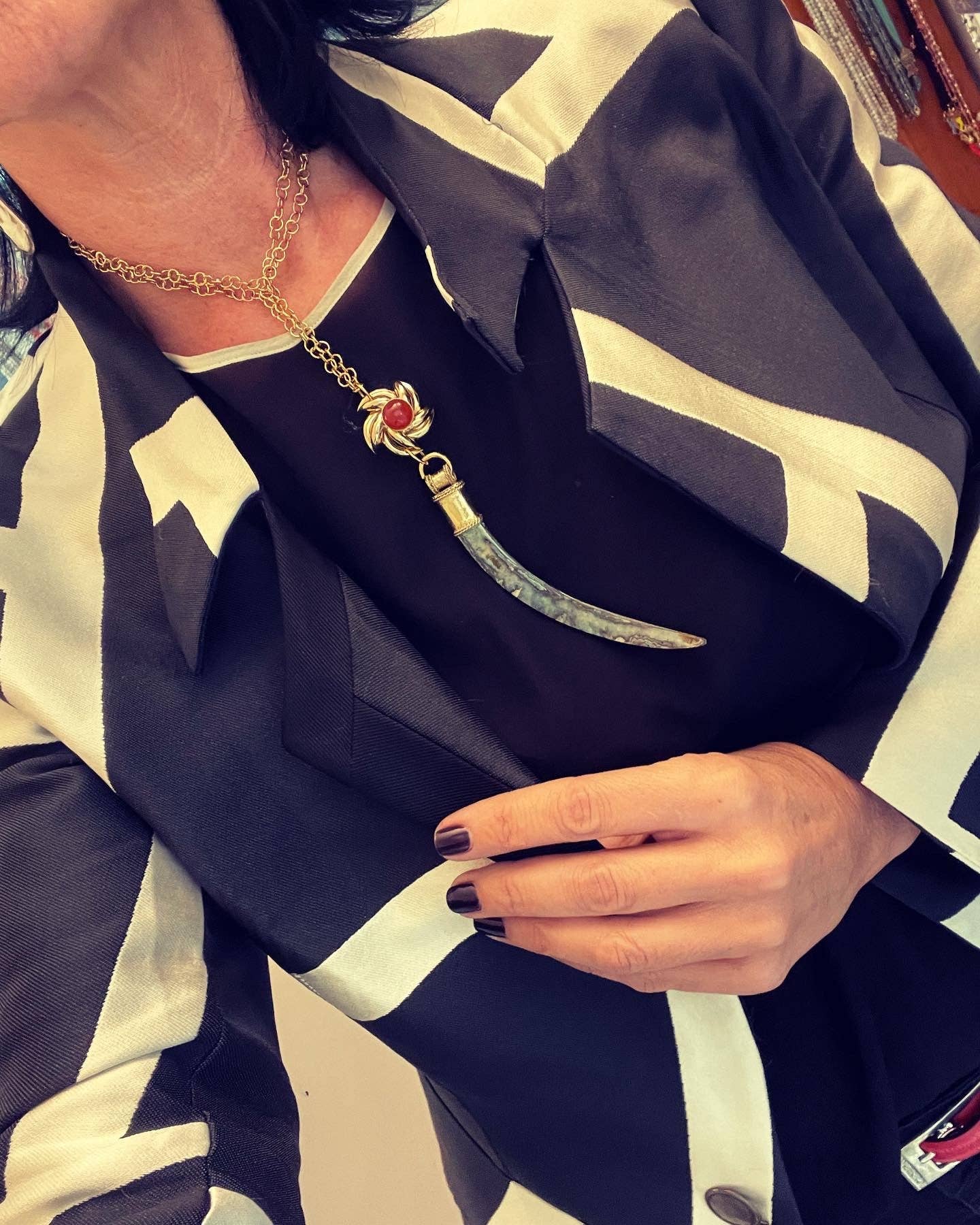 Je m'appelle Lara Garagnani, je suis née à Bologne en 1970. Après avoir travaillé pendant environ 15 ans pour un établissement de santé, la vie m'a amenée à déménager à Rome, où je suis devenue mère. Après avoir surmonté diverses vicissitudes, j'ai découvert mes compétences manuelles et une grande passion pour la fabrication d'accessoires tels que des boucles d'oreilles, des colliers et des bracelets. Je suis parti de zéro, avec des pinces, des chaînes, des pierres. Je ne pouvais pas me permettre grand-chose à l'époque. Je suis donc autodidacte par nécessité et bien que je n'aie pas fait d'études de design particulières, j'ai toujours aimé combiner les couleurs et respecter les proportions qui génèrent cette harmonie qui me fait du bien et qui, je l'espère, fera que chacun d'entre vous se sentira bien également lorsque vous porterez ma création. J'ai cru en un rêve qui semblait très lointain mais qui aujourd'hui est un peu plus proche mais, pas encore assez proche, et me connaissant moi-même, je crains qu'il ne le soit jamais assez.