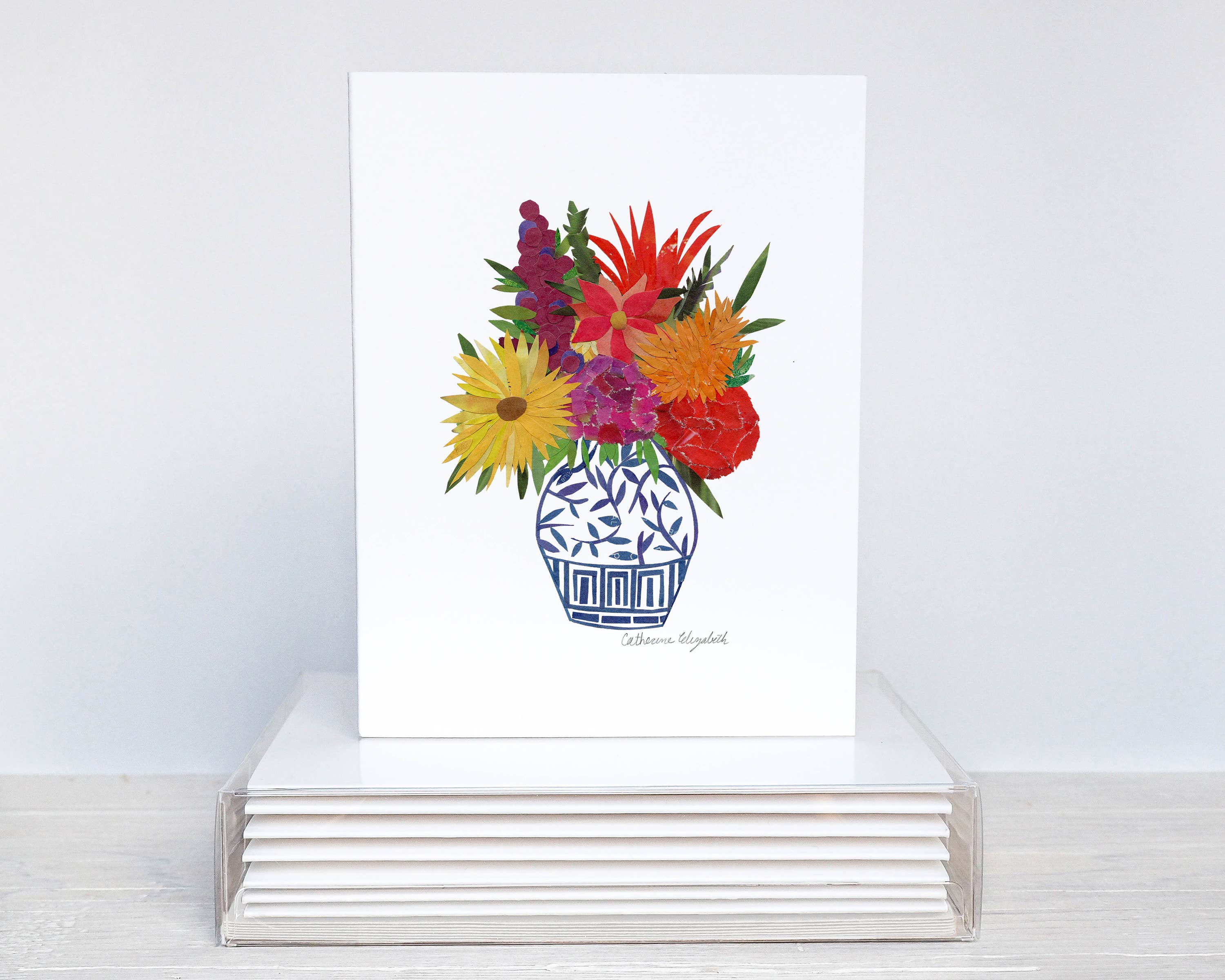 Catherine Elizabeth est une artiste de collage de journaux basée à Chicago qui a une formation dans le domaine des événements corporatifs, mais préfère maintenant la nature exploratoire et tactile de la création en studio. Pendant la pandémie de COVID-19, elle a redécouvert un médium apprécié de longue date : le collage avec le journal. D'abord inspirée par les étés passés dans le nord du Michigan, son travail célèbre son environnement passé et présent d'une manière lumineuse et honnête. Ses collages sont méticuleux : des centaines de morceaux de papier journal sont soigneusement découpés à la main et déchirés petit à petit jusqu'à ce que les formes soient parfaites. La quête des couleurs dans les vastes pages des journaux à la retraite la tient curieuse. Peu importe le sujet, la composition de son œuvre crée de nombreuses couches et des textures riches sans utiliser de peinture. À travers le travail de Catherine, elle vous invite à regarder de plus près : on ne sait jamais ce que l'on peut découvrir.