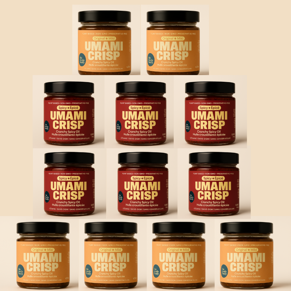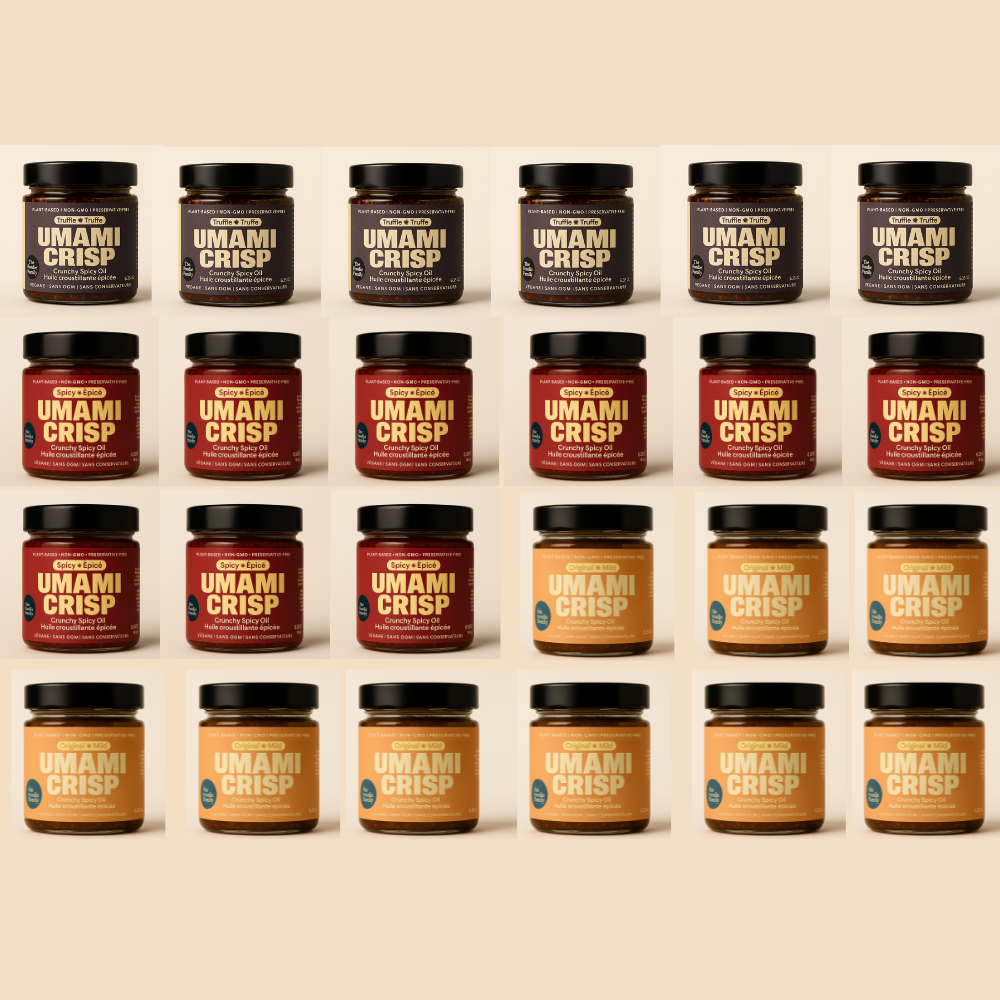 Chez Umami Crisp, nous croyons que les saveurs audacieuses doivent être joyeuses, addictives et faciles à saupoudrer sur n'importe quoi. Né d'un amour pour la curiosité culinaire et l'inspiration mondiale, Umami Crisp est une huile de piment croquante et savoureuse faite avec des épices de qualité supérieure, des champignons sauvages et une touche de magie. Notre recette signature offre une saveur umami profonde avec un croustillant satisfaisant à chaque cuillerée—sans conservateurs artificiels ni agents de remplissage. Fabriqué en petites quantités au Canada, Umami Crisp transforme les repas quotidiens en expériences irrésistibles. Que vous l'ajoutiez sur du riz, des nouilles, des œufs ou même du toast à l'avocat, une seule cuillerée libère un goût de niveau supérieur. Nous avons créé Umami Crisp pour les amateurs de cuisine qui recherchent la commodité sans compromis. Étiquette propre, inspiré par des chefs, et irrésistiblement croquant—c'est votre nouvelle obsession de garde-manger.