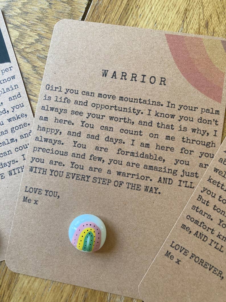 Le plus grand merci. Bienvenue dans notre boutique d'amis uniques et petits ! Ainsi que de souvenirs matures. Tous créés avec amour par un trio composé d'une maman et de sa fille. Pals in Your Pocket a aidé tant d'enfants et d'adultes. L'idée d'avoir quelque chose que l'on peut porter sur soi est réconfortante pour beaucoup. Nous prenons conscience de l'importance que ces compagnons ont dans les moments les plus solitaires ou difficiles de la vie, apportant avec eux du réconfort quand il est le plus nécessaire. Qu'il s'agisse d'un bonjour, d'une célébration ou d'un petit remontant, ces compagnons sont confectionnés avec amour. Avec notre slogan « Triste, ou heureux aujourd’hui ? Je suis avec vous à chaque pas » ou un message inspirant sur une carte kraft... nous espérons apporter promesse, joie, réconfort et tout ce qu'il y a entre les deux à chaque pas, et le fait que nos compagnons soient faits à la main signifie que nous offrons une touche personnelle. Pals in Your Pocket a été créé en mai 2020, lors du premier confinement, avec l'idée qu'avec un galet pour votre poche (un compagnon) personne ne serait jamais seul.