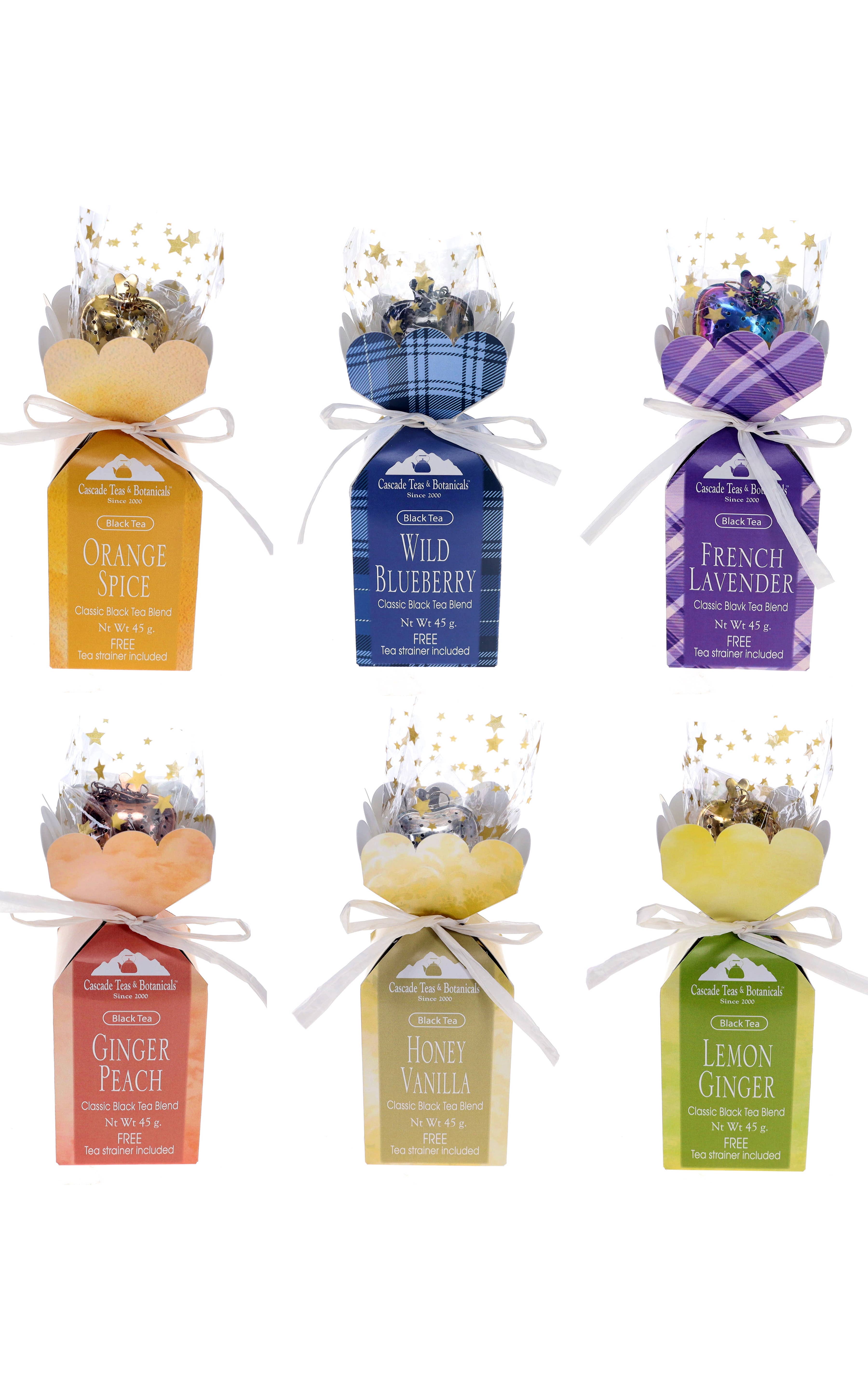 Cascade Botanicals™ est situé au pied des magnifiques montagnes Cascadiennes, dans la ville d'Everson, dans le coin le plus nord-ouest du nord-ouest du Pacifique. L'accent est mis sur les produits botaniques, et nous fabriquons du thé ainsi que des décorations décoratives pour la maison. Nous concevons notre gamme de thés avec pour mission de fabriquer des produits qui raviront vos clients avec un contenu de haute qualité et un emballage attrayant, et qui vous raviront par une vente fiable et un balisage satisfaisant. Au cours du premier semestre 2022, nous proposons une gamme d'arômes de thé populaires, dans un emballage en feuilles mobiles, mis en valeur par des breloques uniques accrochées à du raphia coloré à l'extérieur des emballages. Les breloques sont agrémentées de sentiments réconfortants et inspirants. Nous proposons des saveurs classiques de thé noir comme les épices à l'orange et le gingembre citron, ainsi que des mélanges de thé vert sencha et des tisanes à base de plantes. Vous pouvez commander les saveurs individuellement ou dans nos collections de boîtes mixtes pratiques, comme la collection de thé noir, la collection de thé vert et les collections saisonnières. Satisfaction et plaisir pour vos clients. Des bénéfices pour vous. Ce sont nos objectifs.